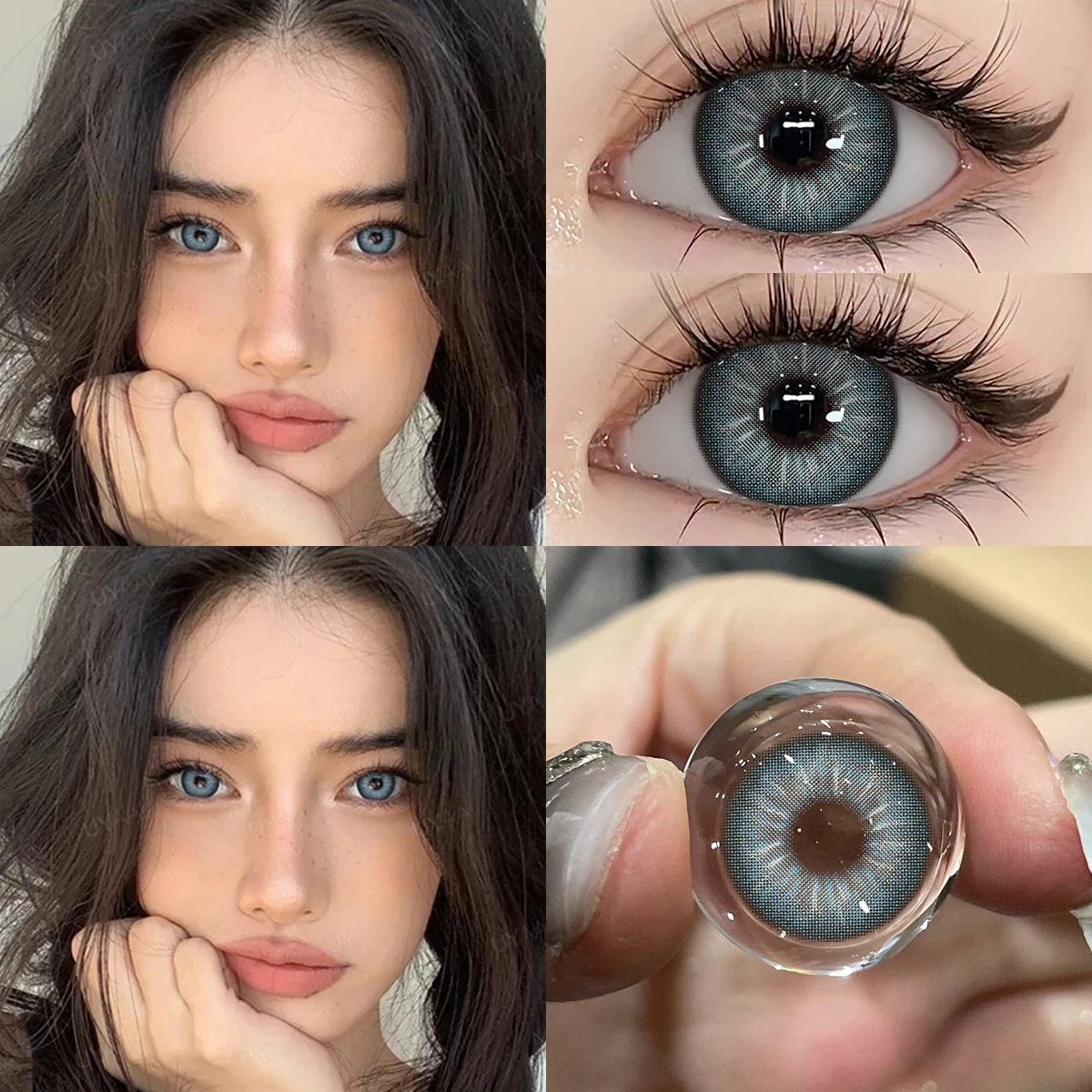 1 Pair Colored Contact Lenses with Prescription Natural Look Myopia Lenses 0~-6.00 Green Lenses Brown Contact Lenses