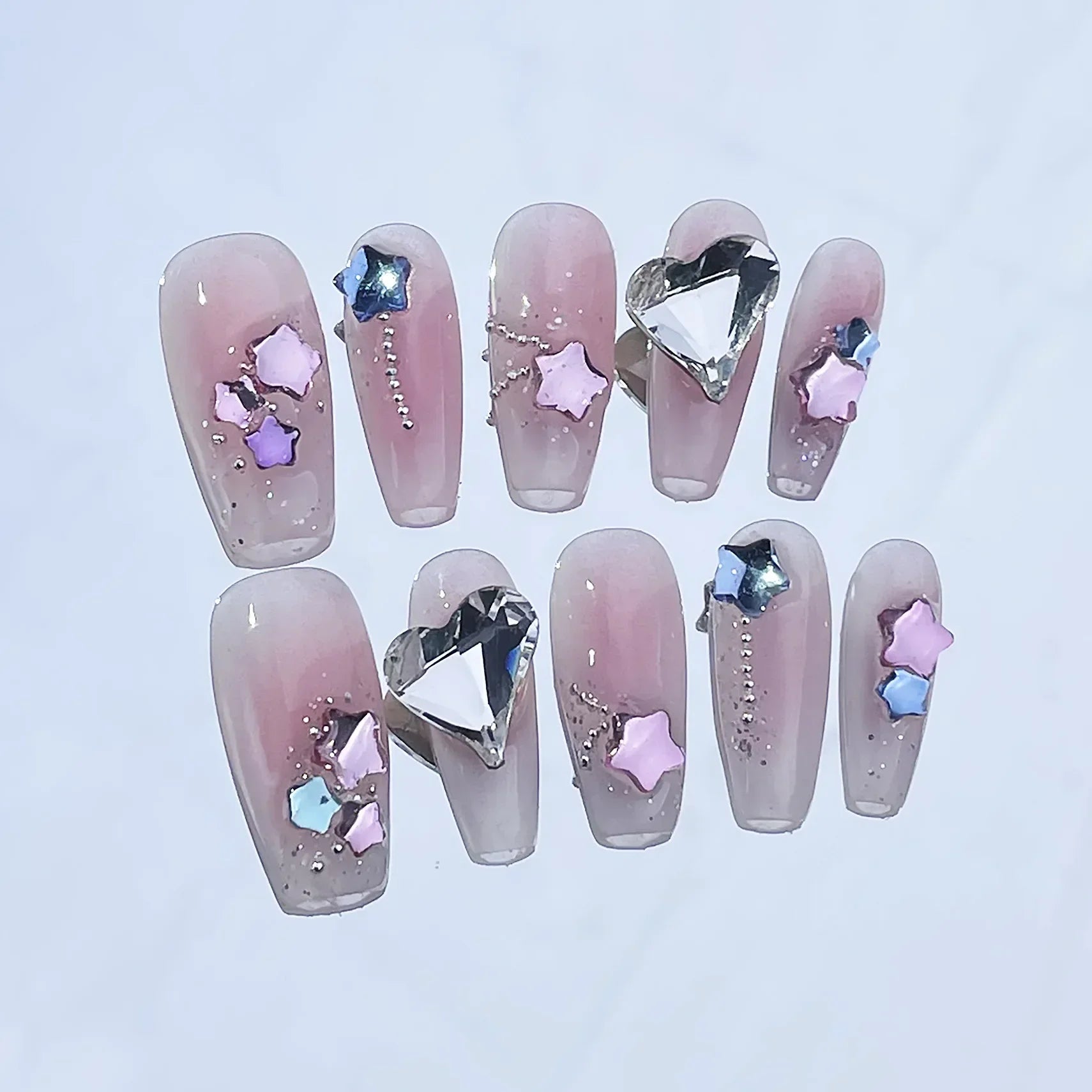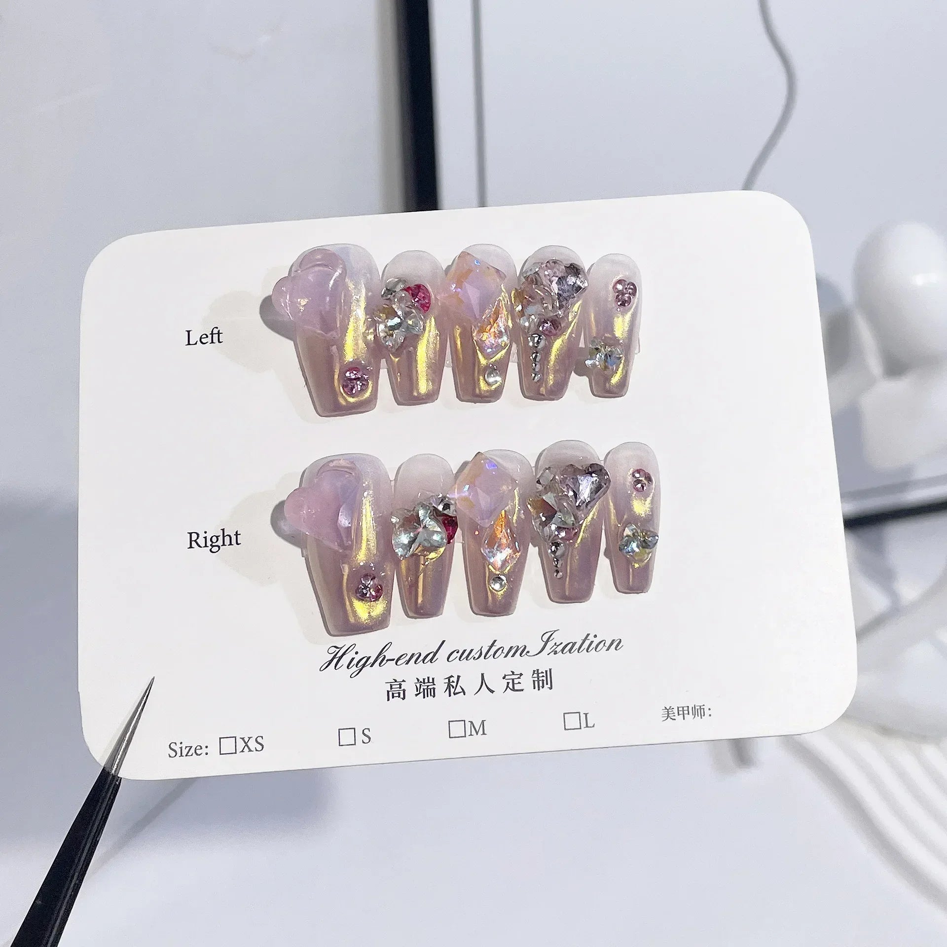 ・10pcs * handmade fake Press on nails(Nail size selection: Generally select XS size for small nails,S size and M size for normal fingers, and L size for large nails. If you want a standard point, please measure it according to the method we provide. Size should not be small,for example: the measurement is 11.5mm then choose 12mm)