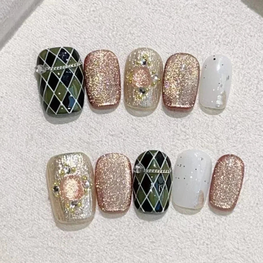 Pure handmade fake Press on nails can be repeated use, easy to use and save time.