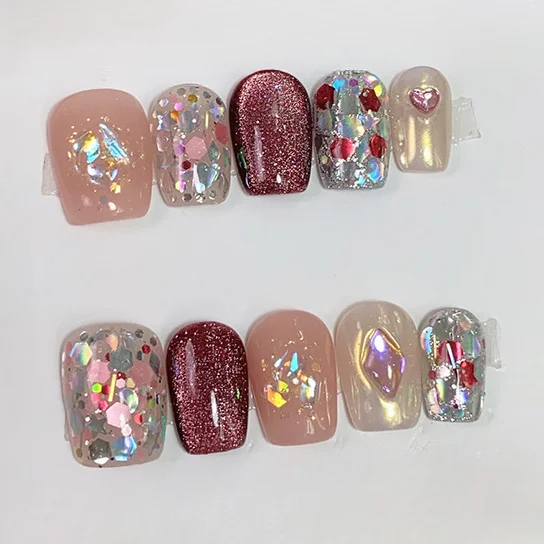・10pcs * handmade fake Press on nails(Nail size selection: Generally select XS size for small nails,S size and M size for normal fingers, and L size for large nails. If you want a standard point, please measure it according to the method we provide. Size should not be small,for example: the measurement is 11.5mm then choose 12mm)
