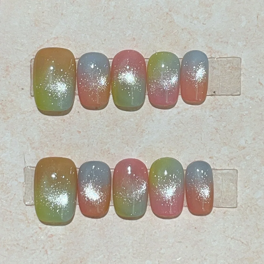 10Pcs Cute Short Square Handmade Press On Nails Full Cover Gradient Design False Cat Eye Nails Wearable Manicure Nail Tips Art