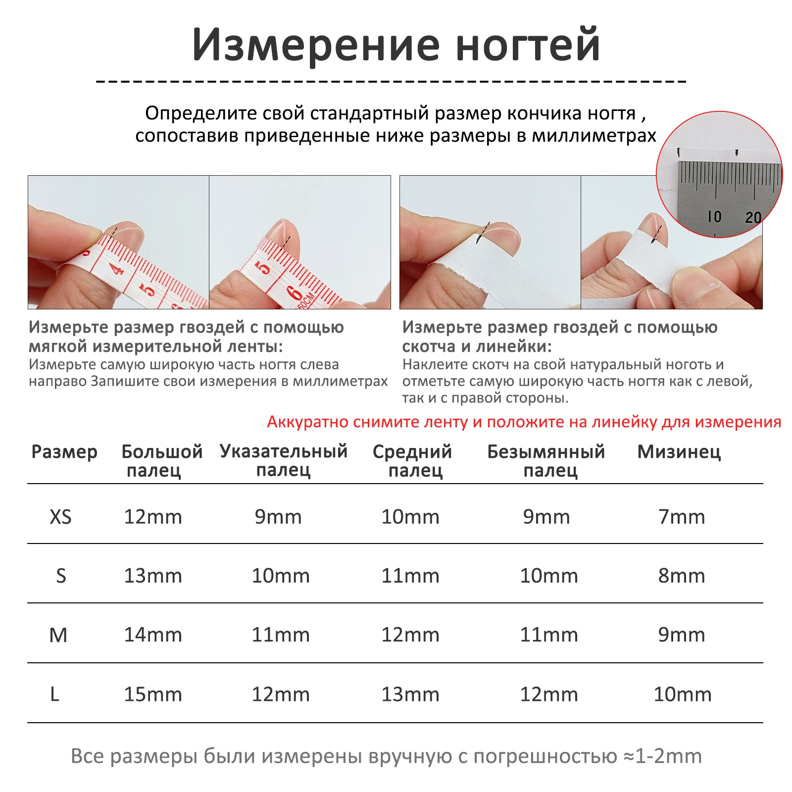 ・10pcs * handmade fake Press on nails(Nail size selection: Generally select XS size for small nails,S size and M size for normal fingers, and L size for large nails. If you want a standard point, please measure it according to the method we provide. Size should not be small,for example: the measurement is 11.5mm then choose 12mm)