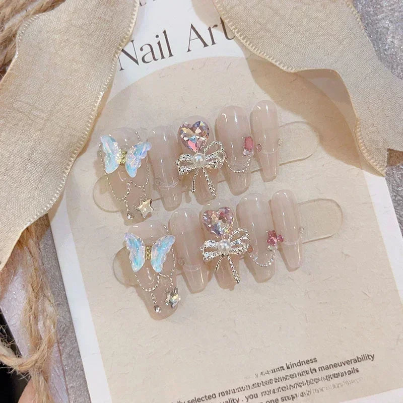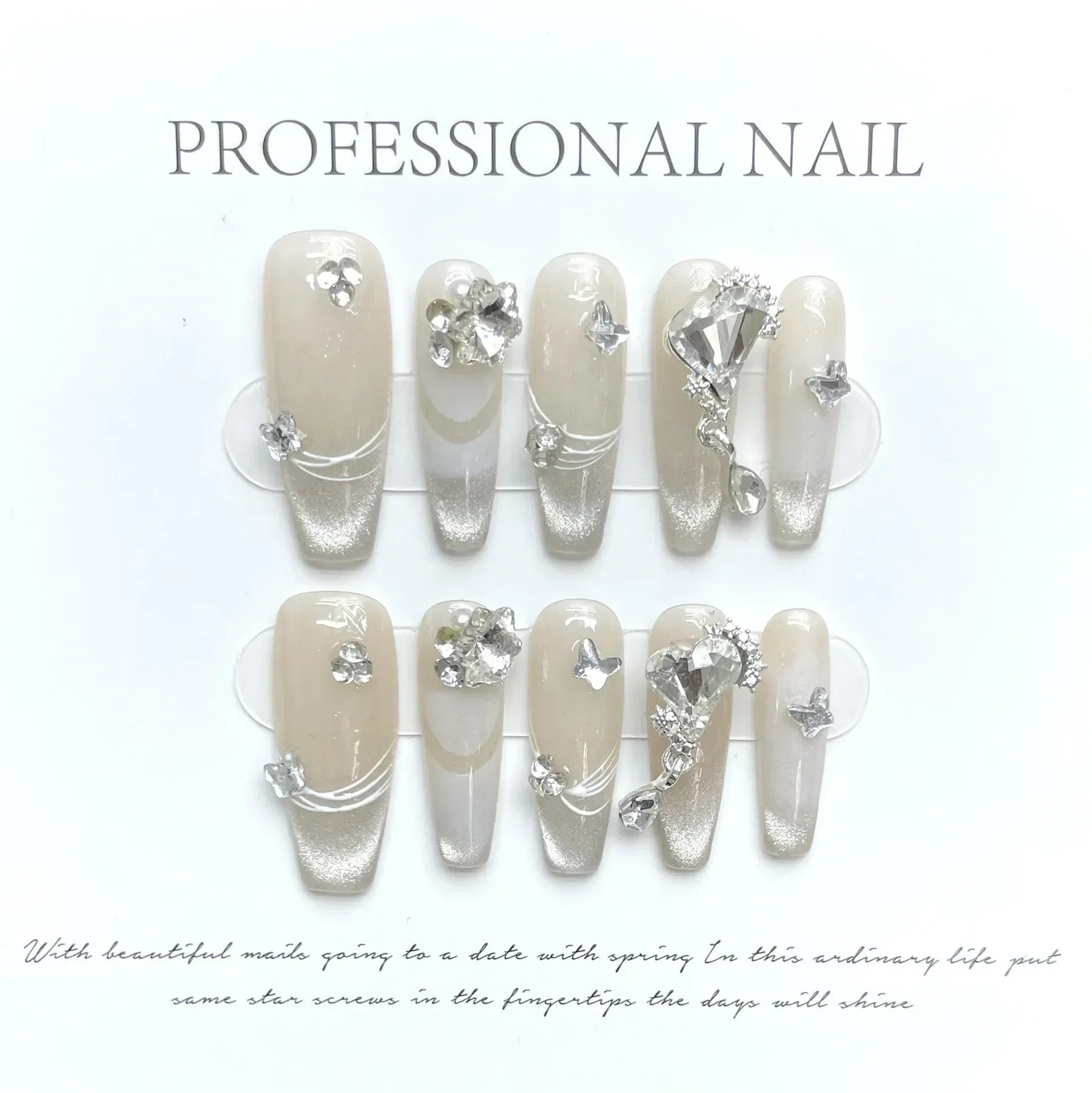 ・10pcs * handmade fake Press on nails(Nail size selection: Generally select XS size for small nails,S size and M size for normal fingers, and L size for large nails. If you want a standard point, please measure it according to the method we provide. Size should not be small,for example: the measurement is 11.5mm then choose 12mm)