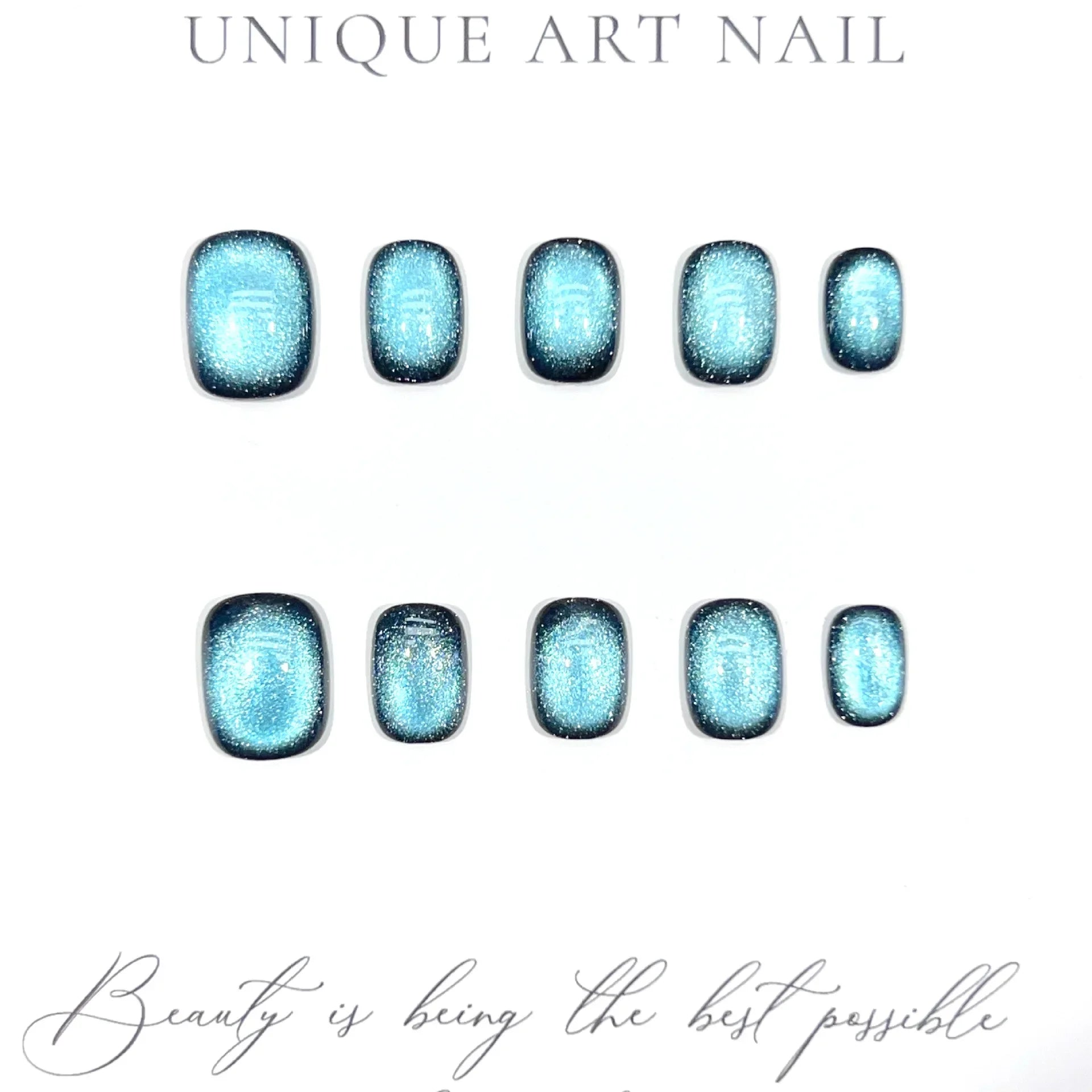 10Pcs Handmade Press on Nails Full Cover Glitter Cat Eye Design Simple Solid Color False Nails Short Ballerina Wearable Manicure
