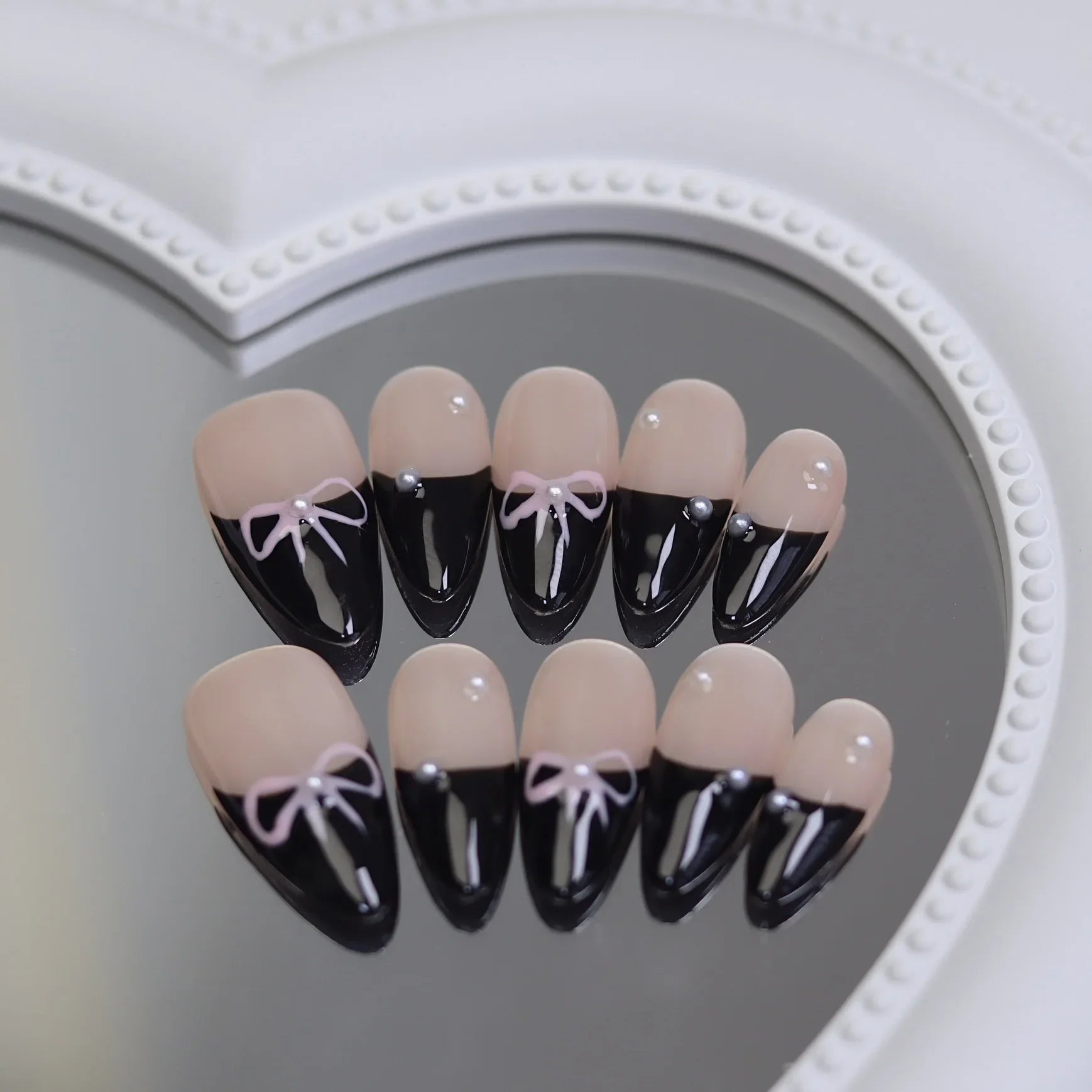 10Pcs Handmade Press on Nails Full Cover Simply Bow Tie Stars French Almond False Nails Artificial Manicure Wearable Nail Tips