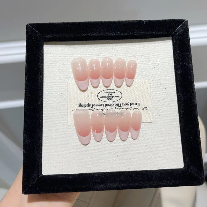 10Pcs Handmade Press on Nails Simple Nude Color Short Almond Full Cover Plating Gradient French False Nails Wearable Manicure