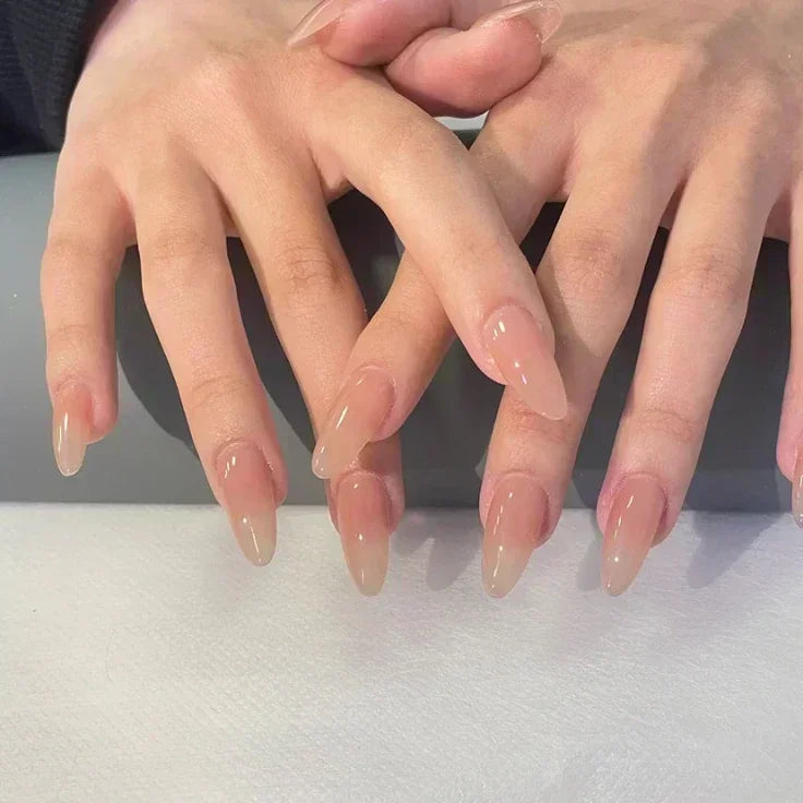10Pcs Nude Almond Oval Handmade Press On Nails Full Cover Bowknot Design French Diamond False Nails Wearable Manicure Nail Tips