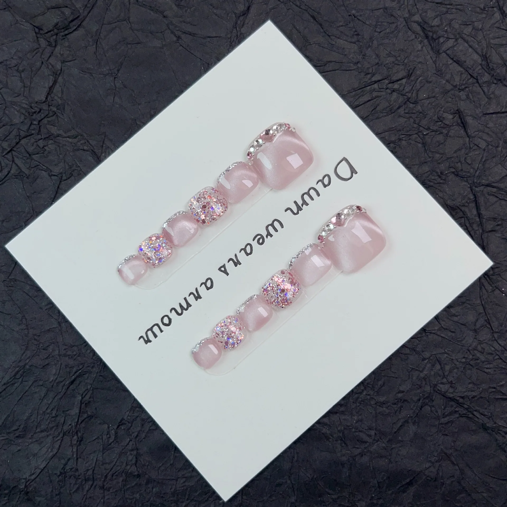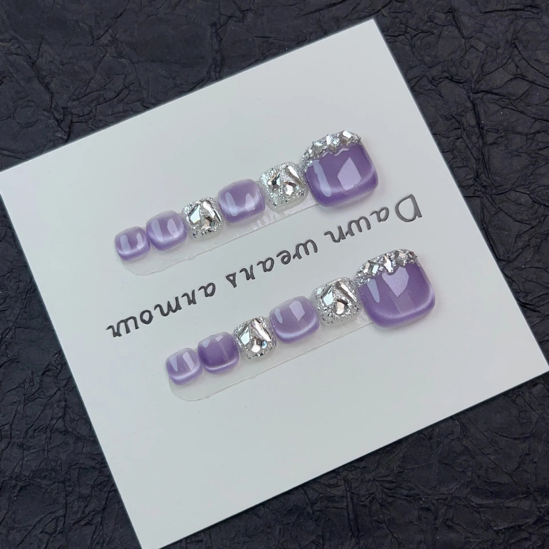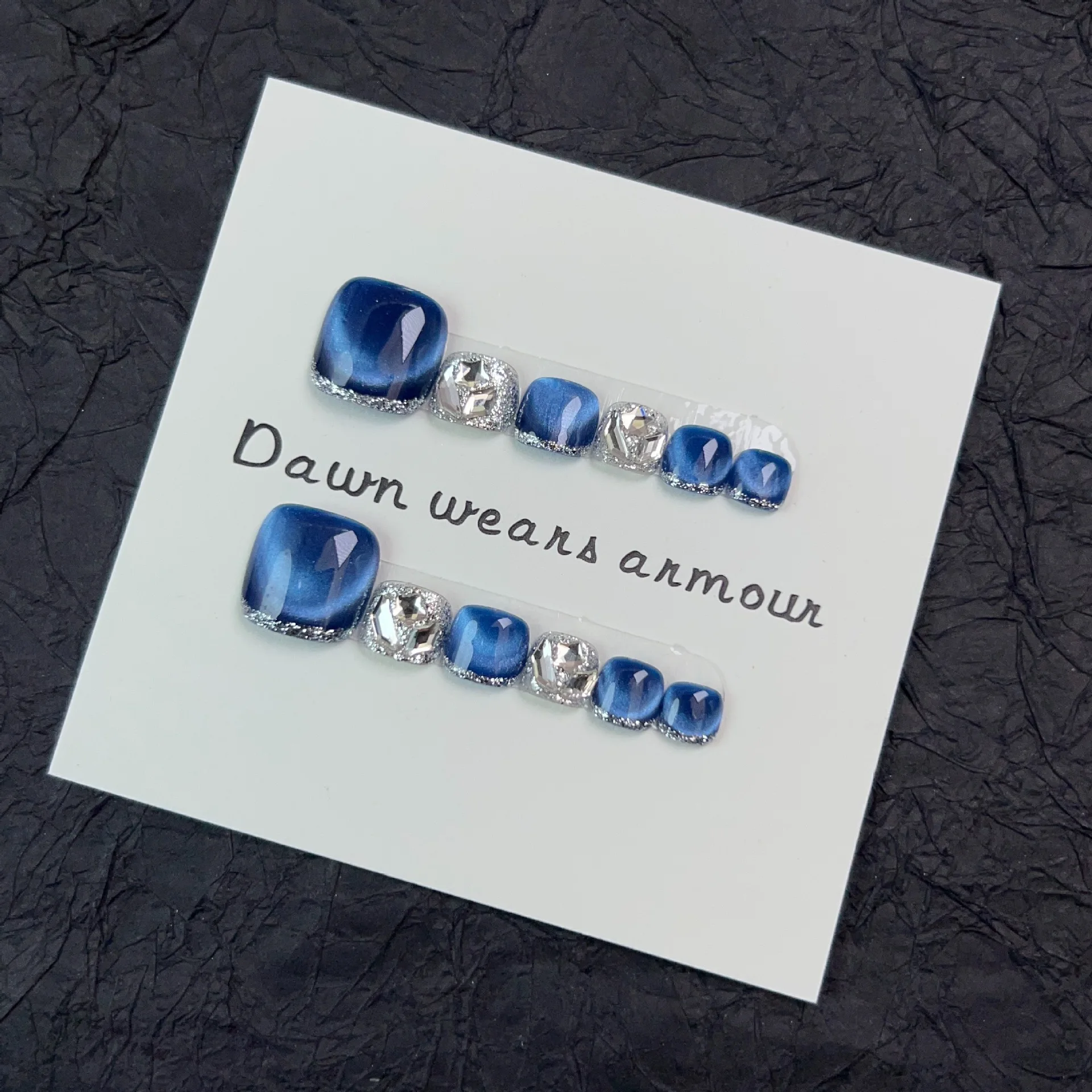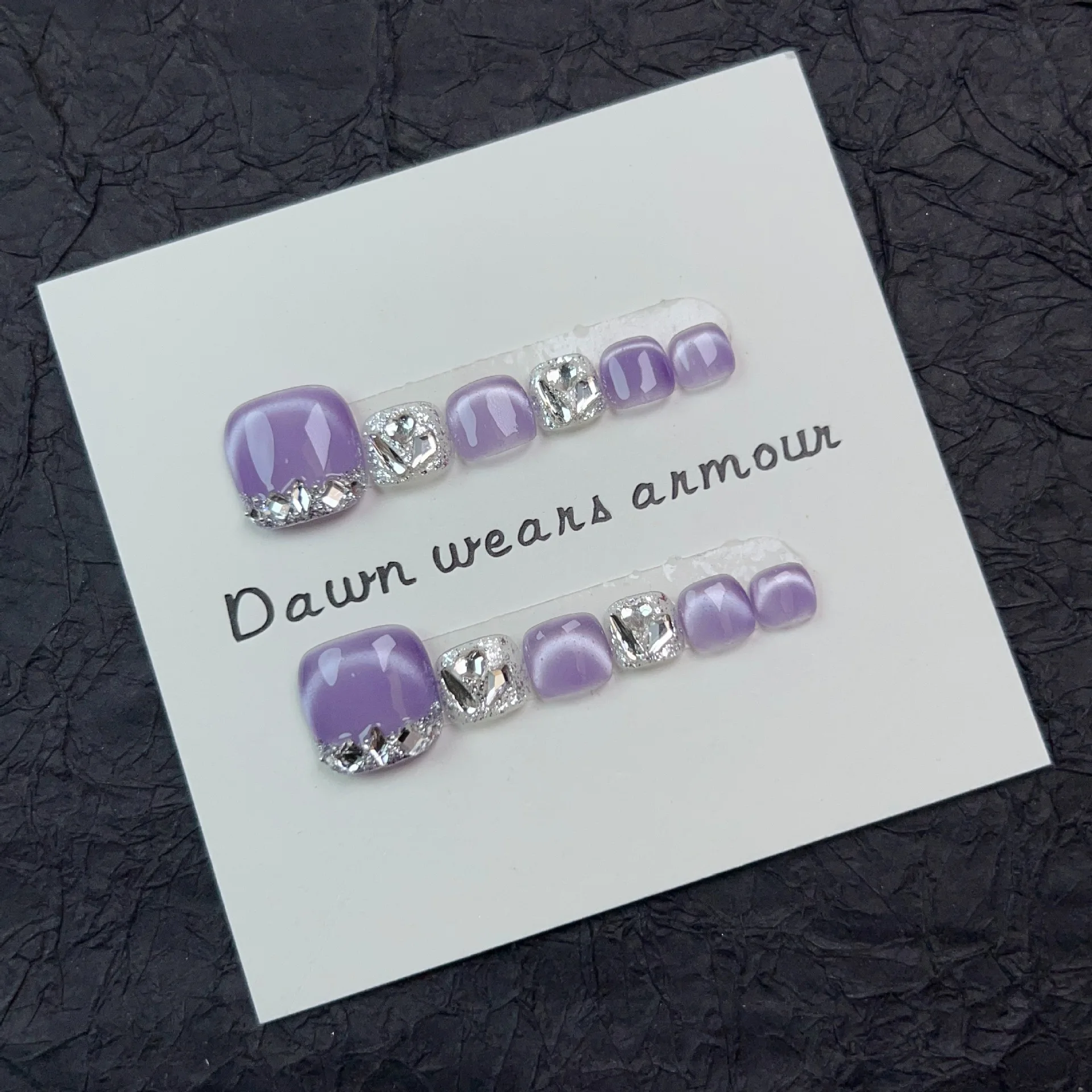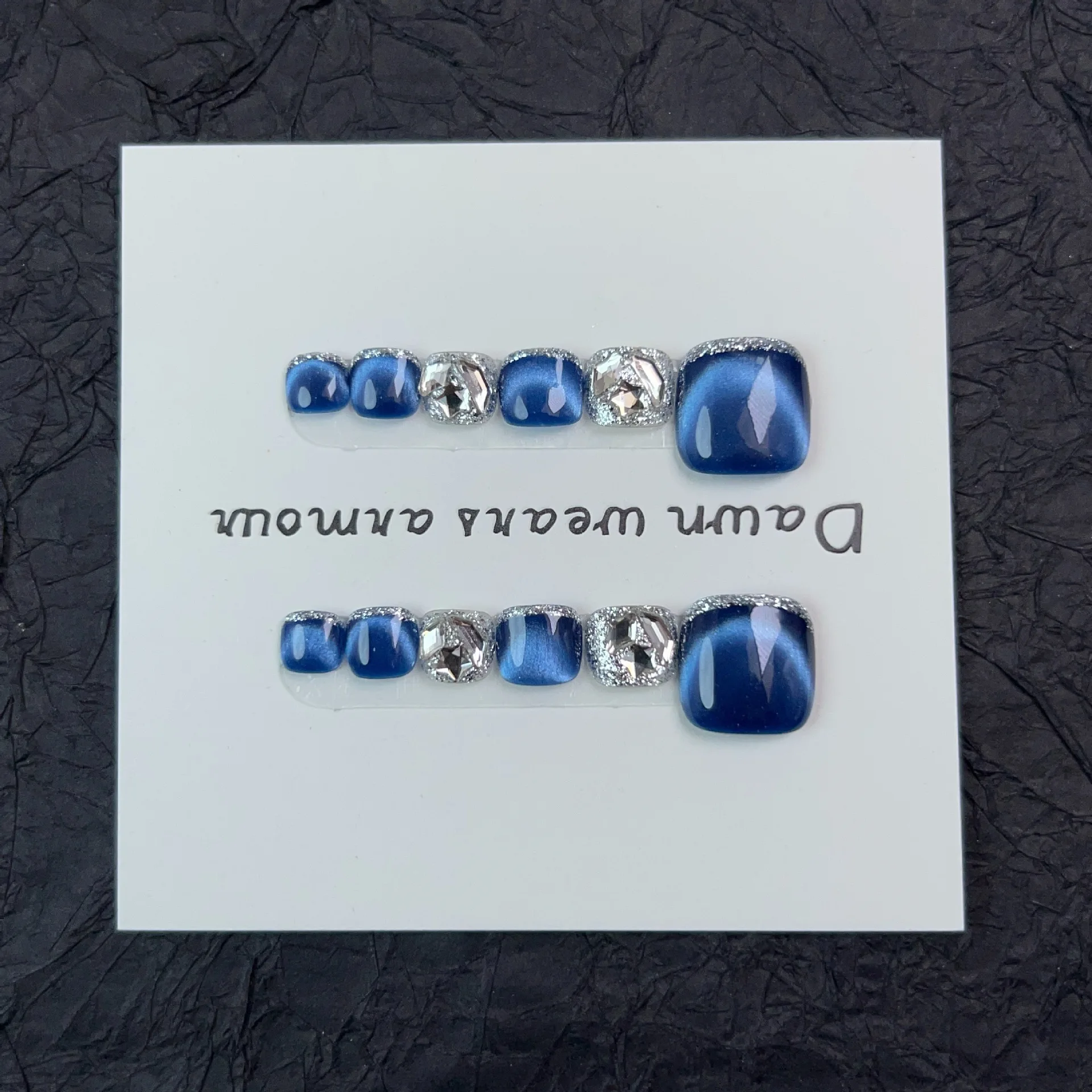 12pcs Handmade Fake Toe Nails Press onToe Nails Cat-eye False Nails Bling Rhinestone Decorated Toe Nails Fake Toe Nail in Box