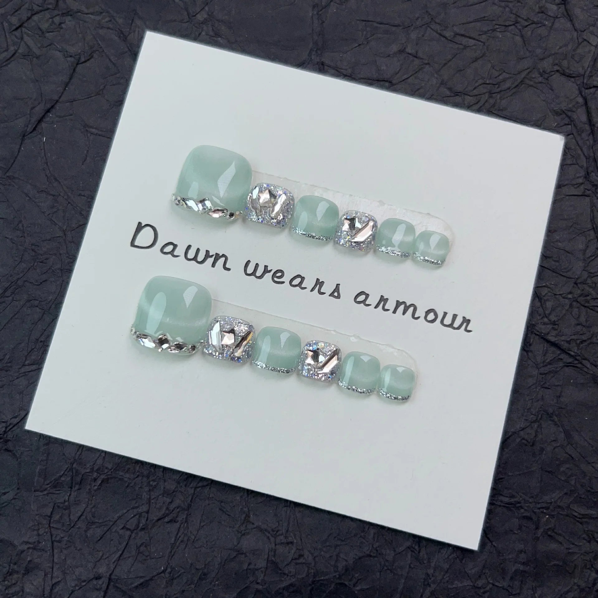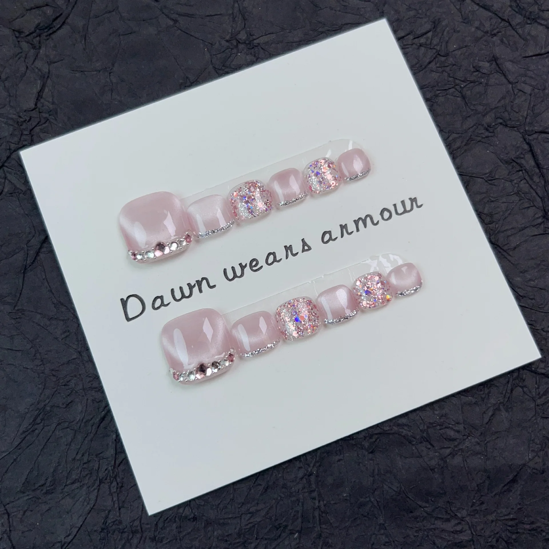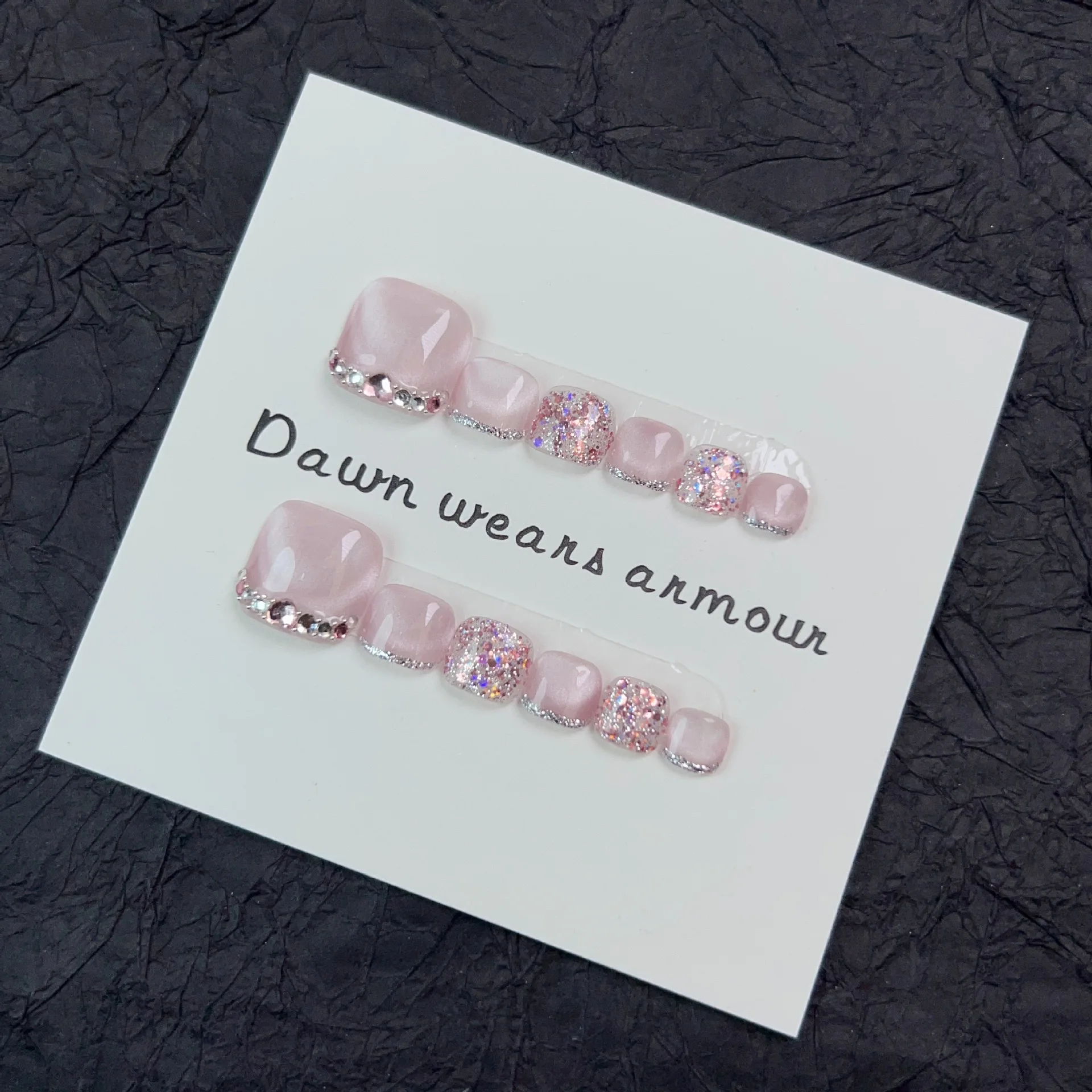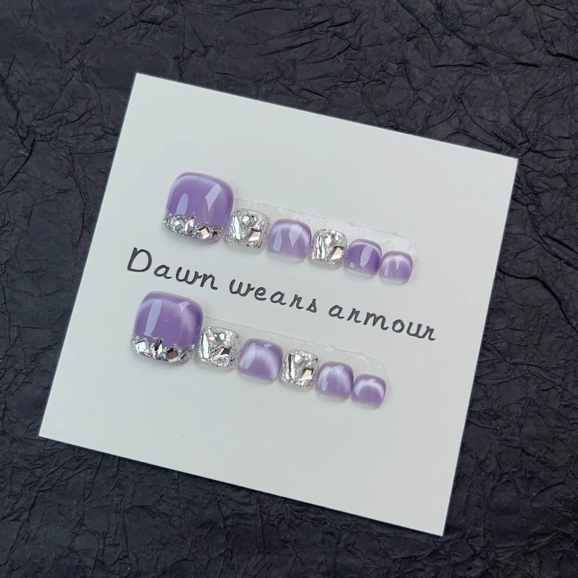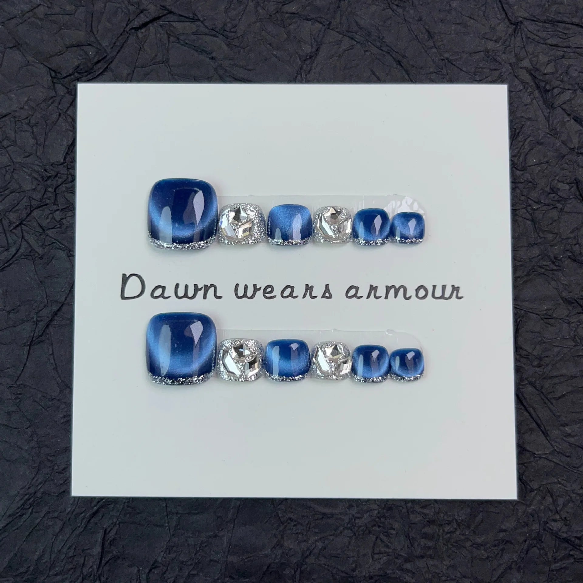 12pcs Handmade Fake Toe Nails Press onToe Nails Cat-eye False Nails Bling Rhinestone Decorated Toe Nails Fake Toe Nail in Box