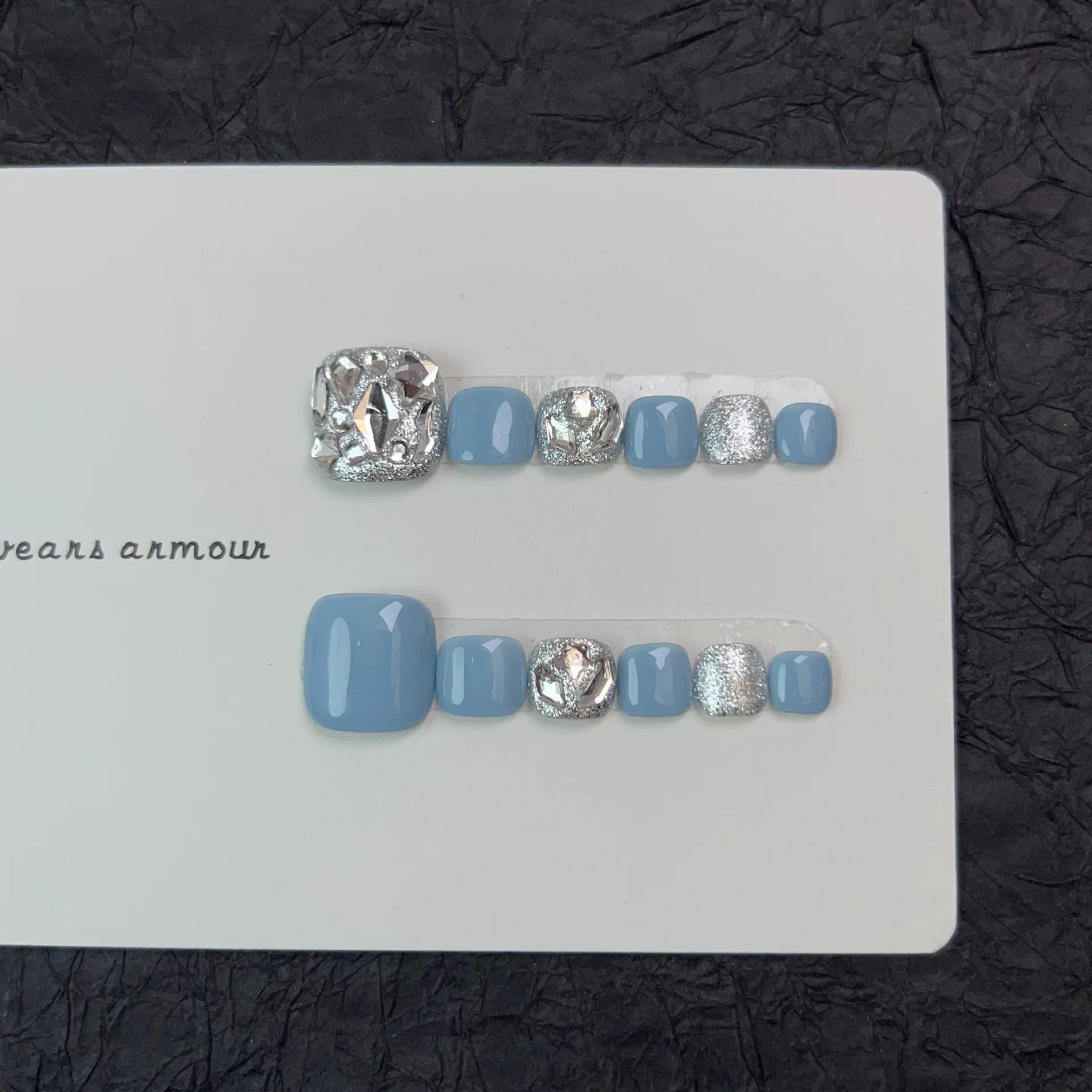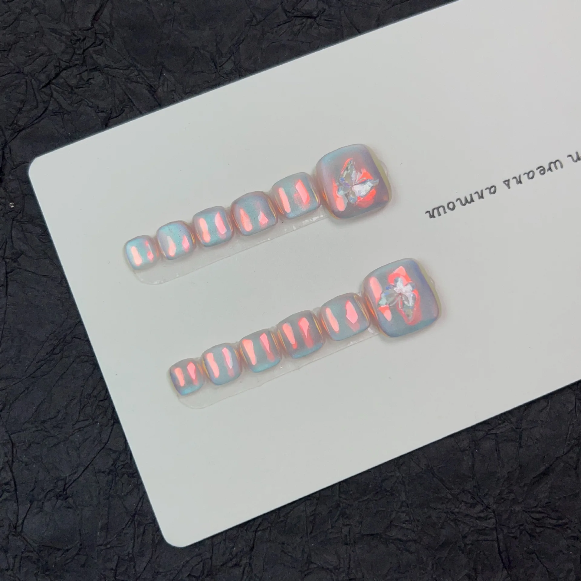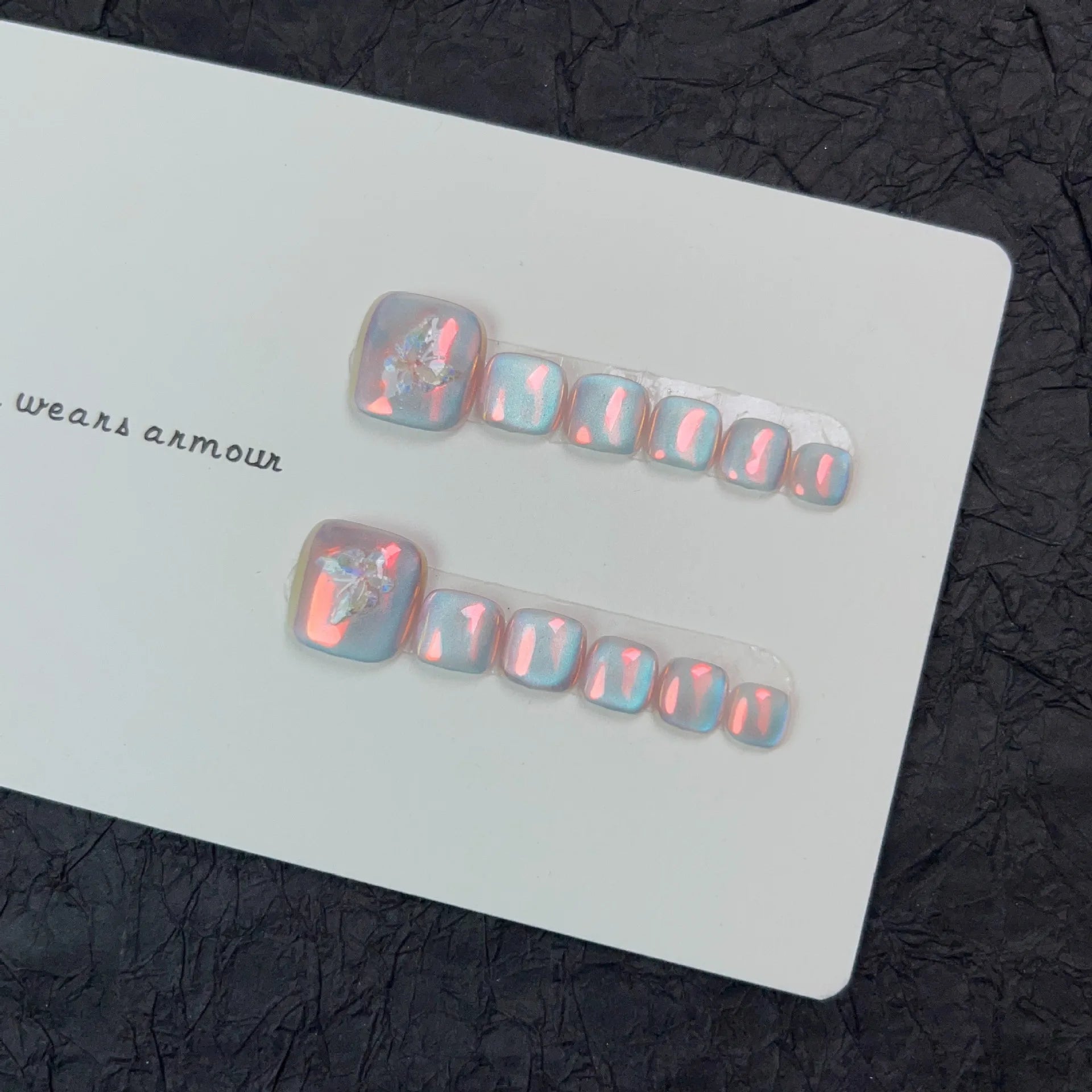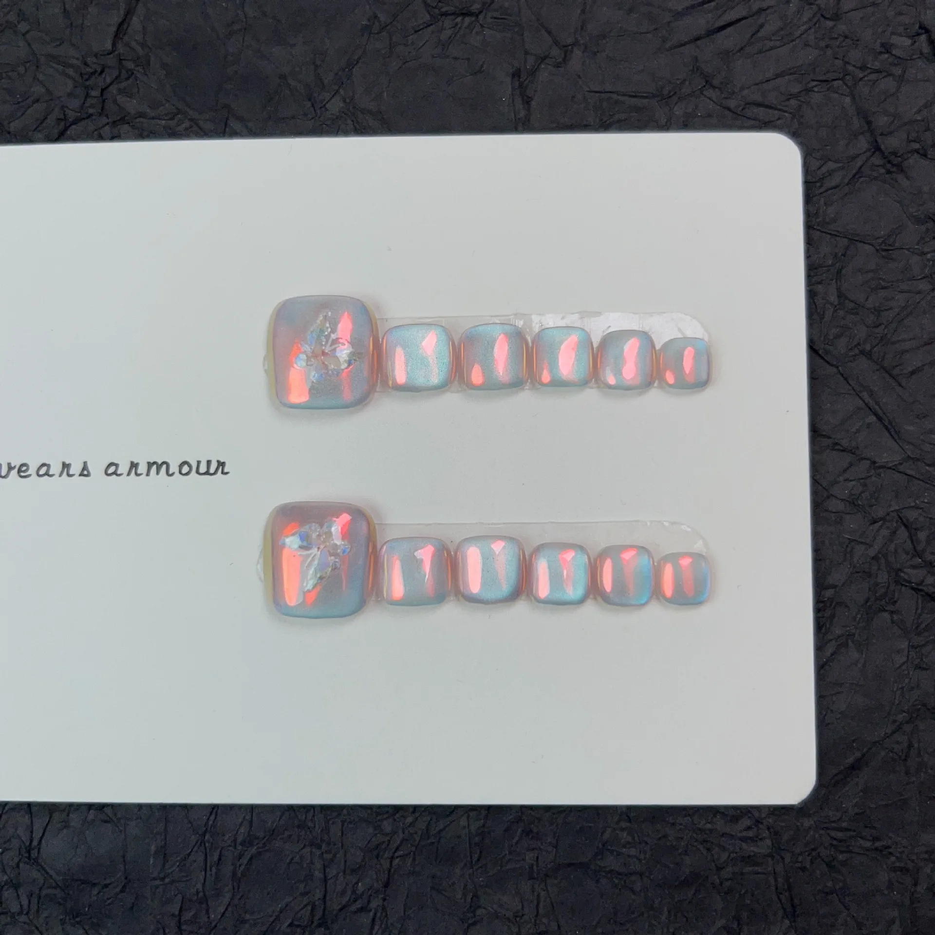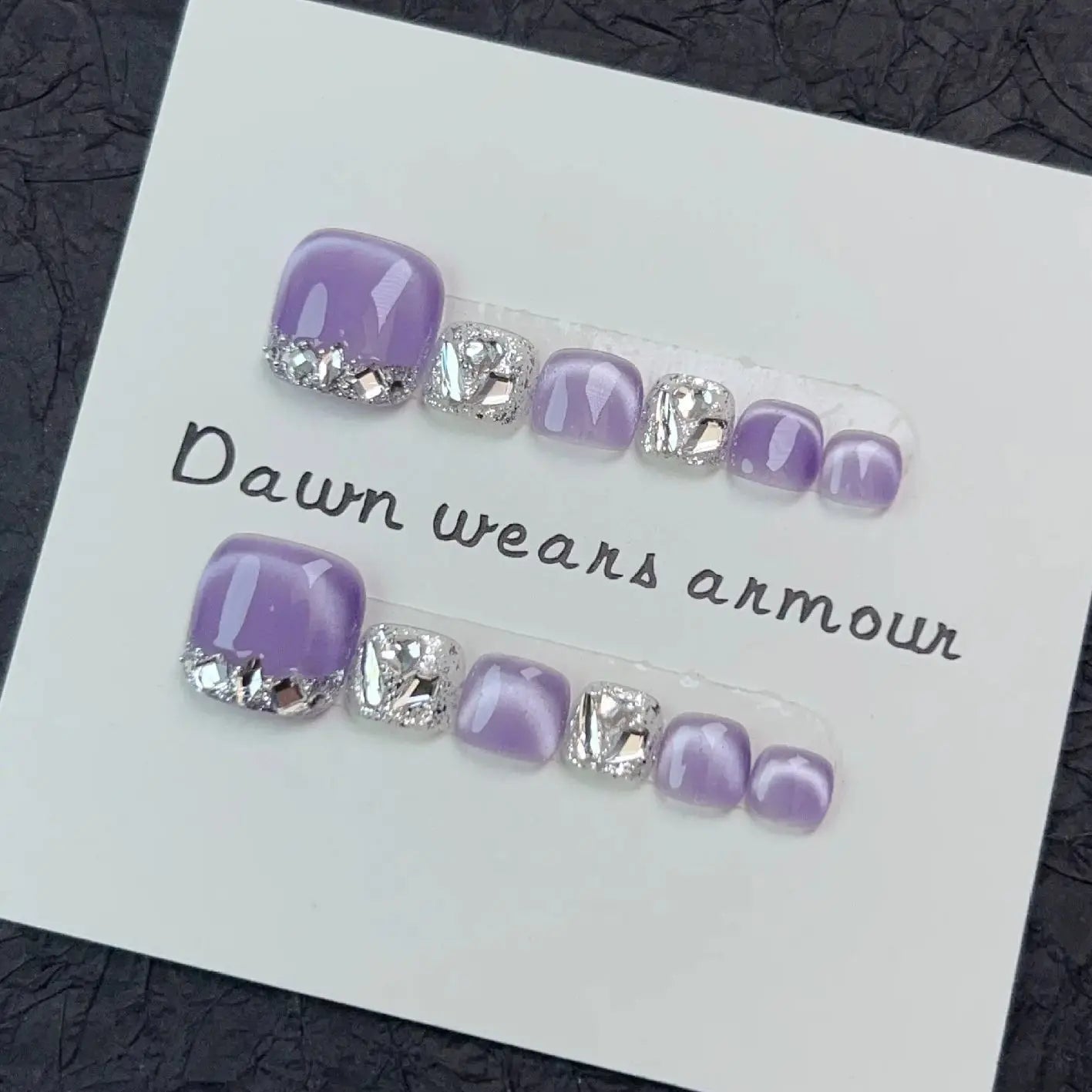 12pcs Handmade Fake Toe Nails Press onToe Nails Cat-eye False Nails Bling Rhinestone Decorated Toe Nails Fake Toe Nail in Box