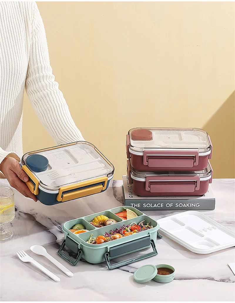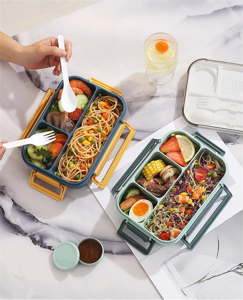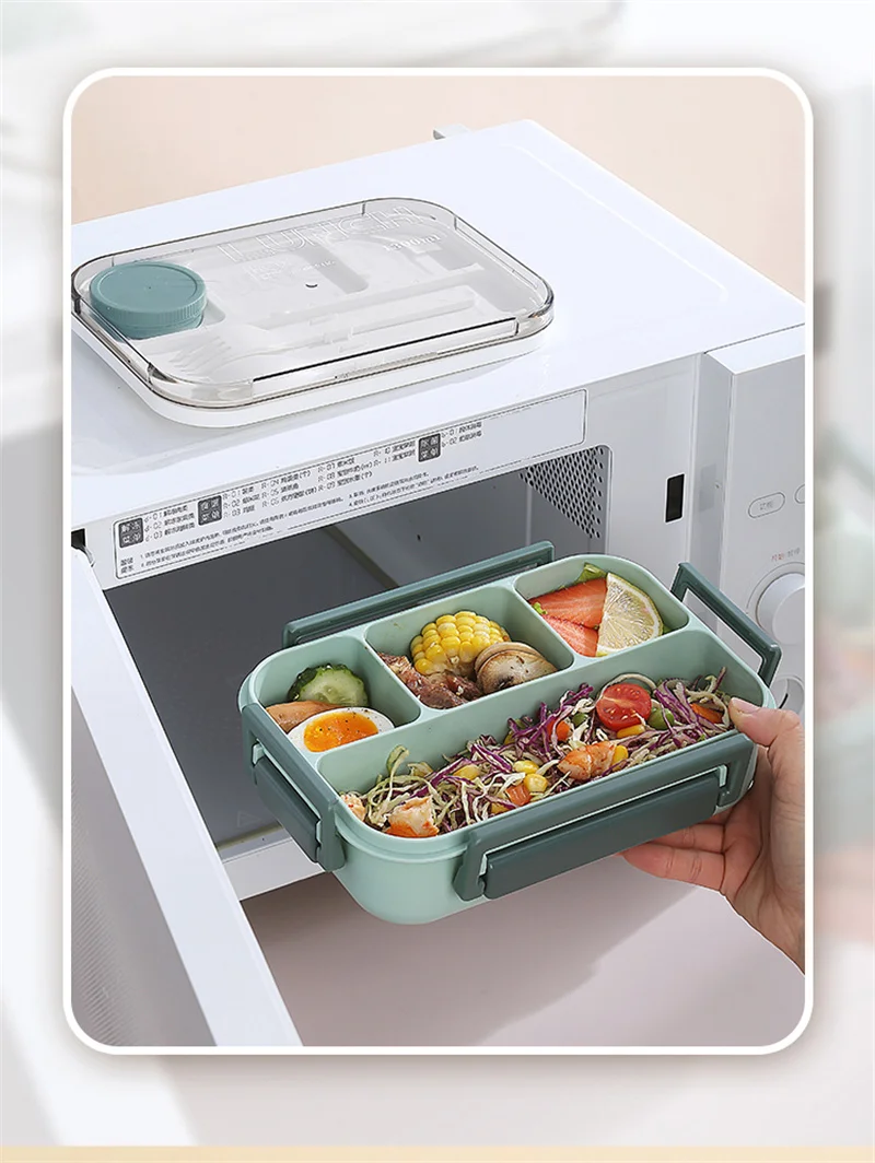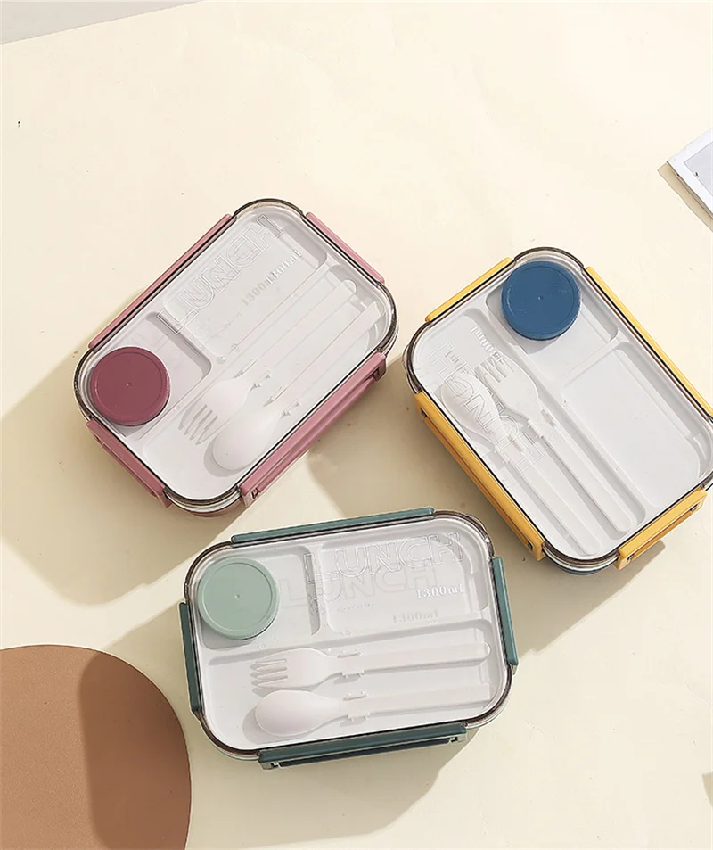 1300ml Plastic microwave oven Lunch box with Tableware for Office Workers Students Divided Bento Box Leakproof Food Container