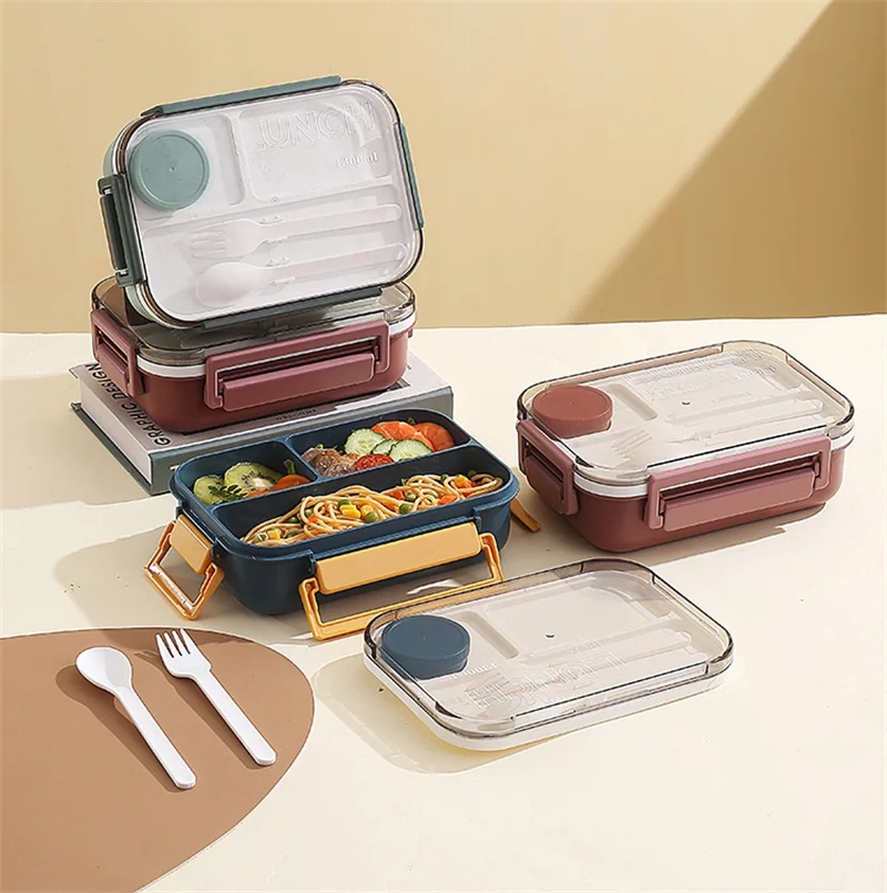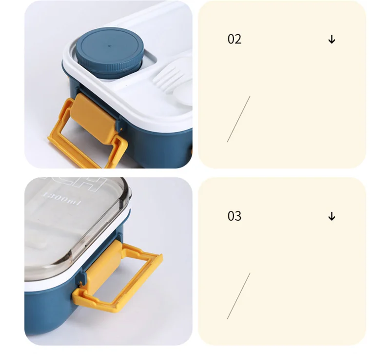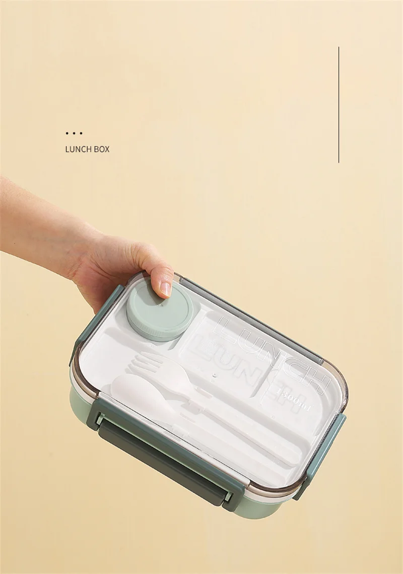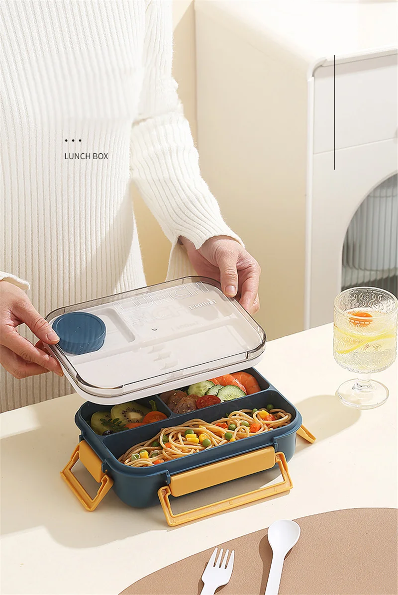 1300ml Plastic microwave oven Lunch box with Tableware for Office Workers Students Divided Bento Box Leakproof Food Container