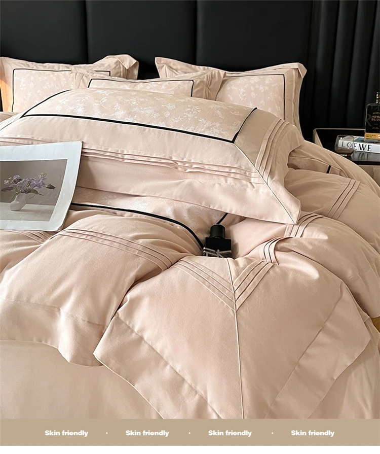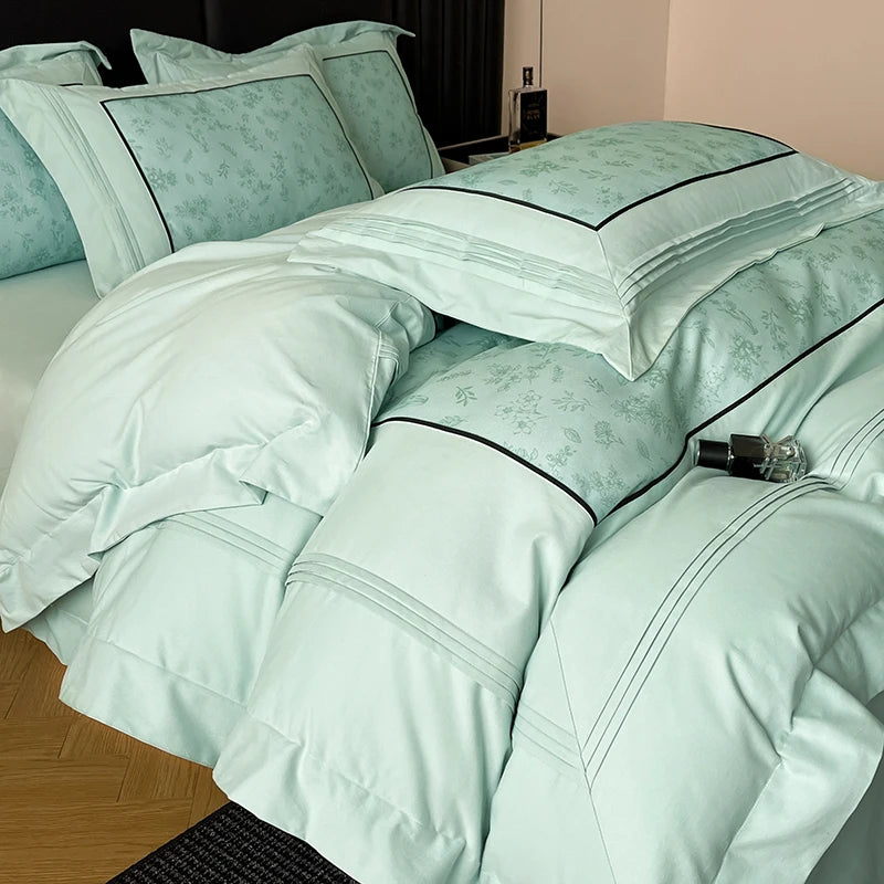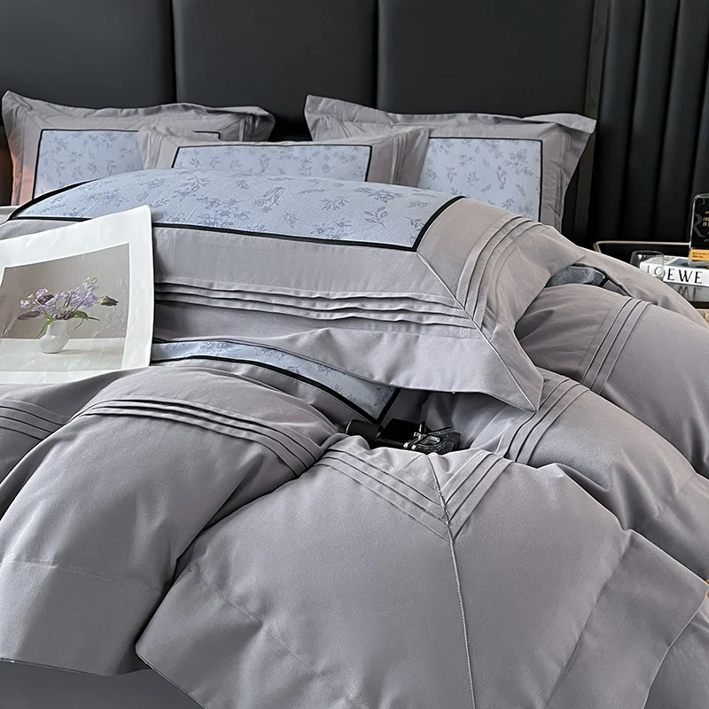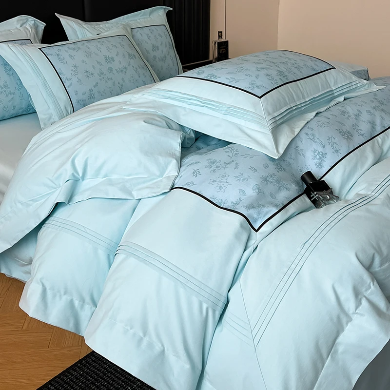 160S Pure Cotton European Luxury Solid Color Hotel Style Bedding Set Queen King Duvet Cover Set Flat/Fitted Bed Sheet Pillowcase