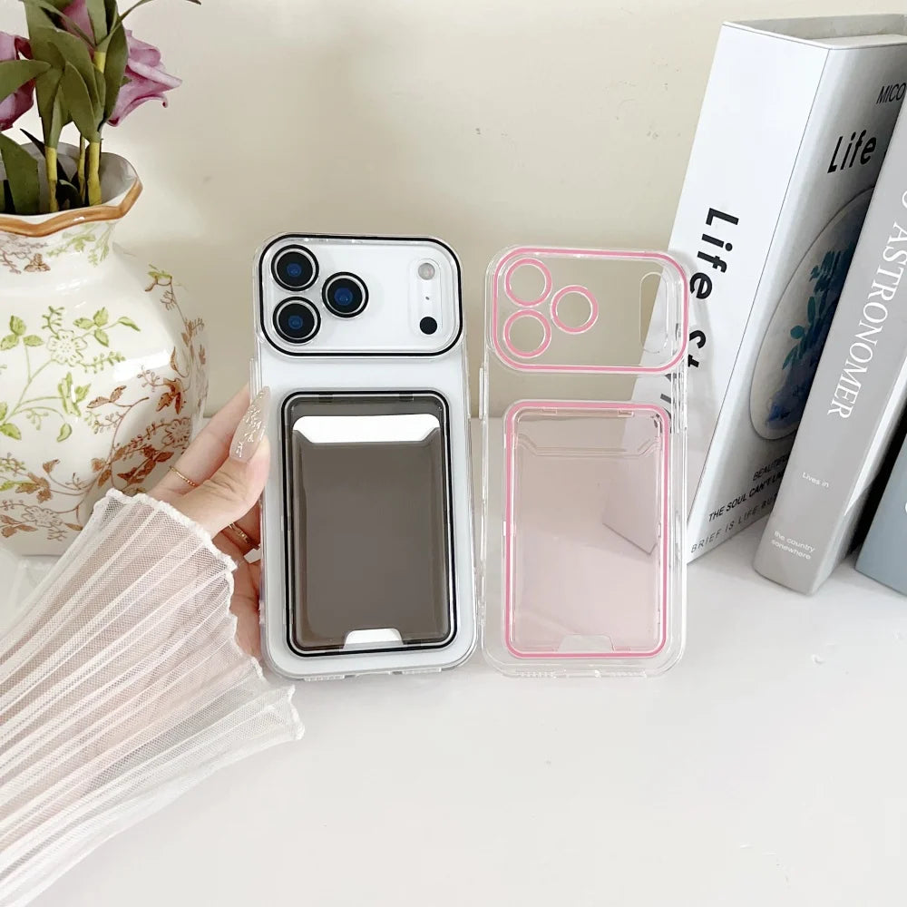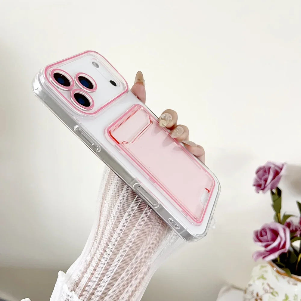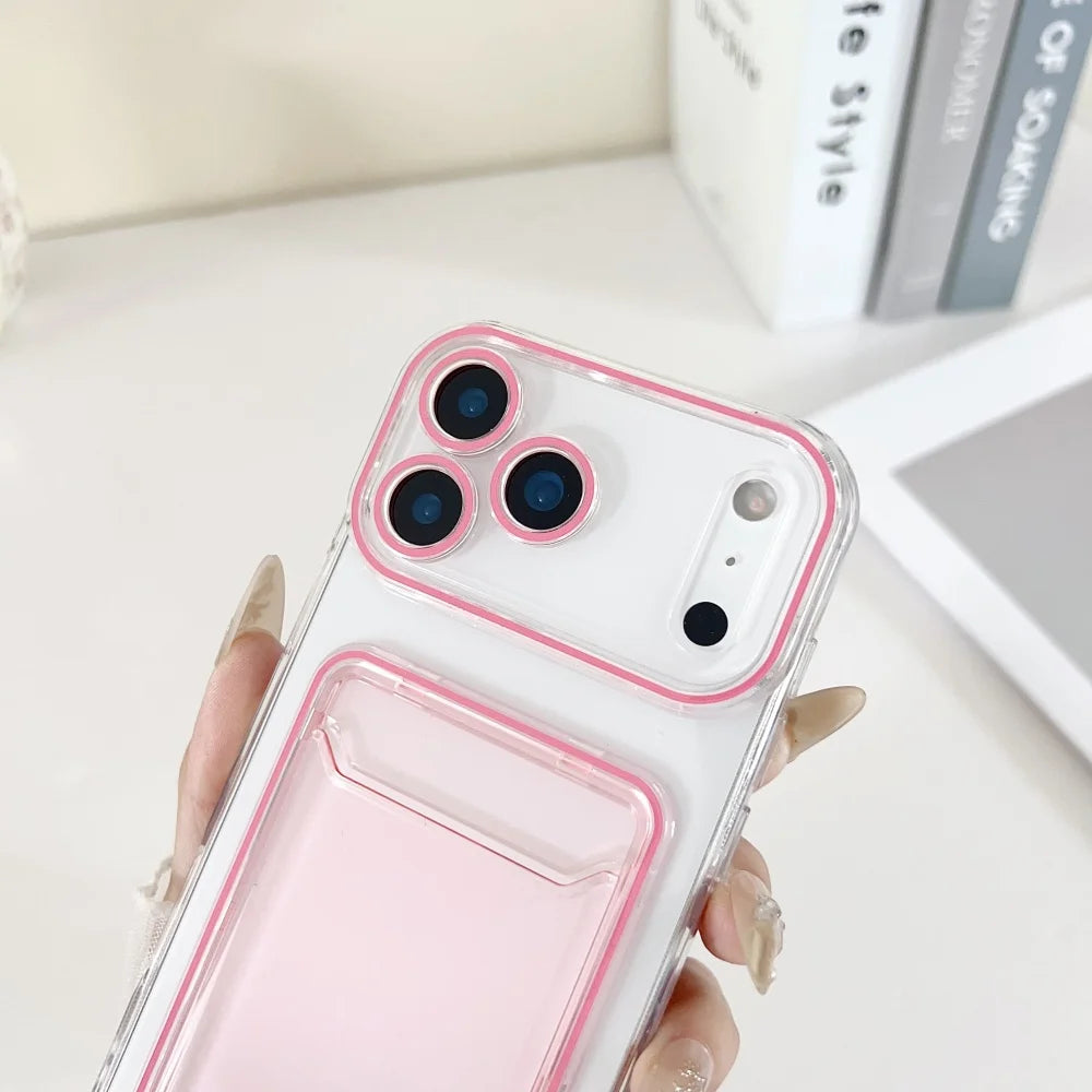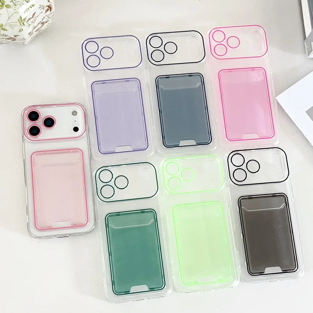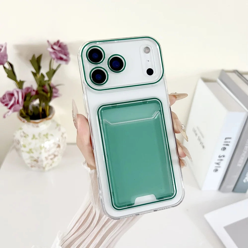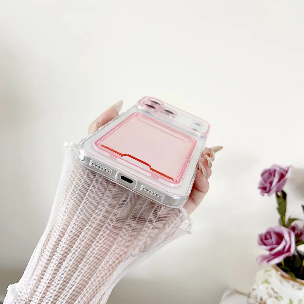 2 In 1 Clear PC Jelly Card Pack Phone Case For iPhone 17 Air 16 15 14 13 12 11 Plus Pro Max Insert Soft Full Frame Bumper Cover