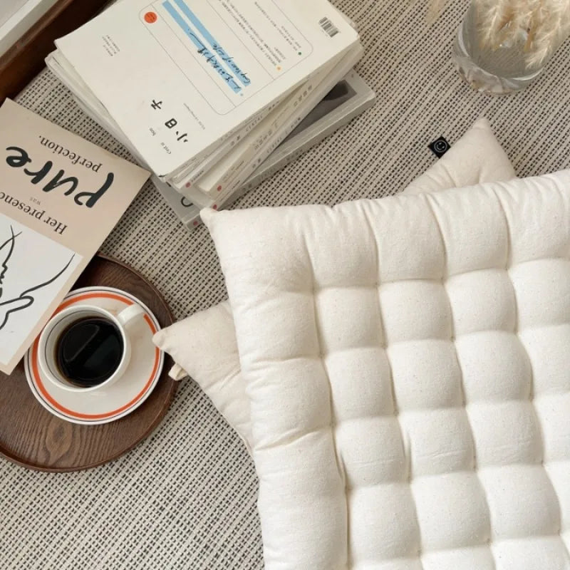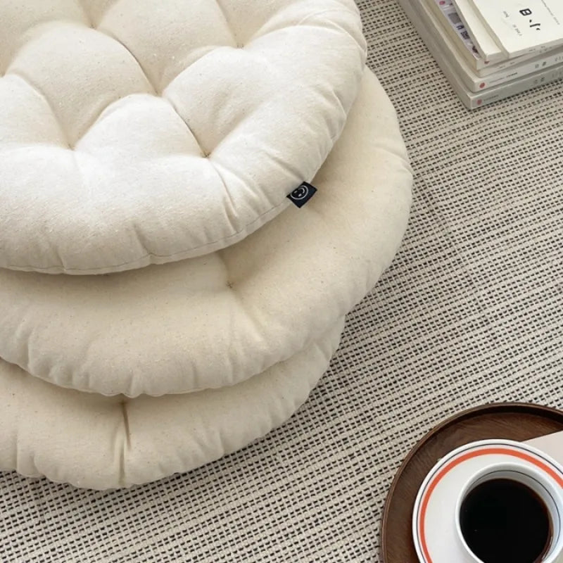 2025 high-end tatami round dining chair strap chair cushion Japanese simple white square seat cushion sedentary