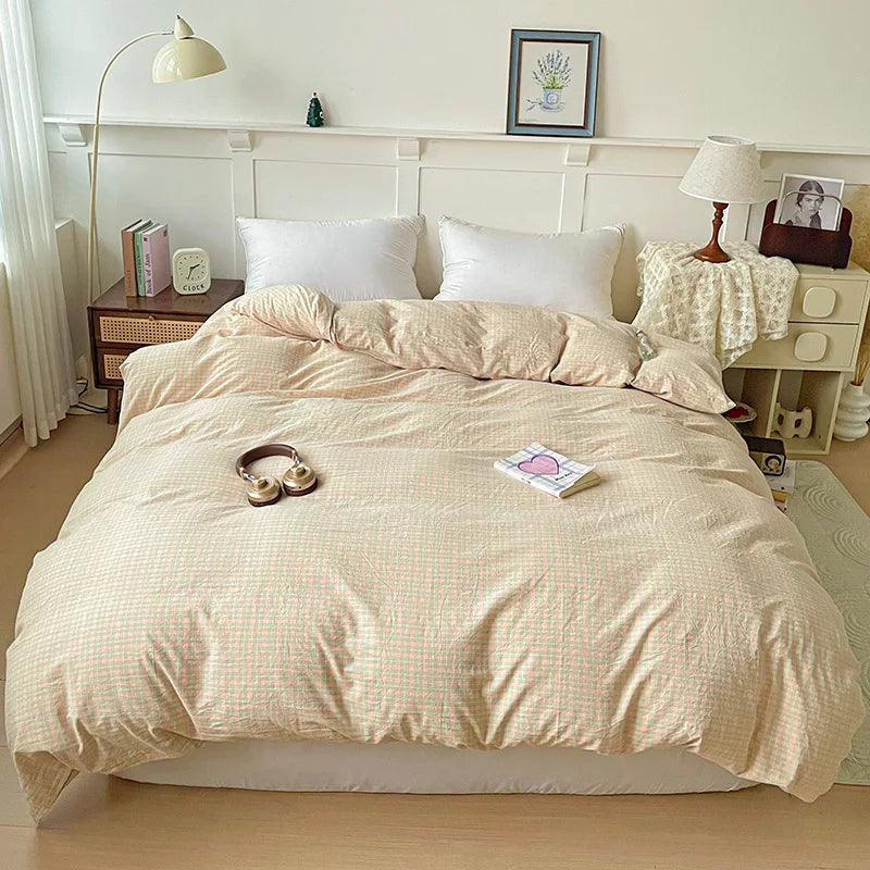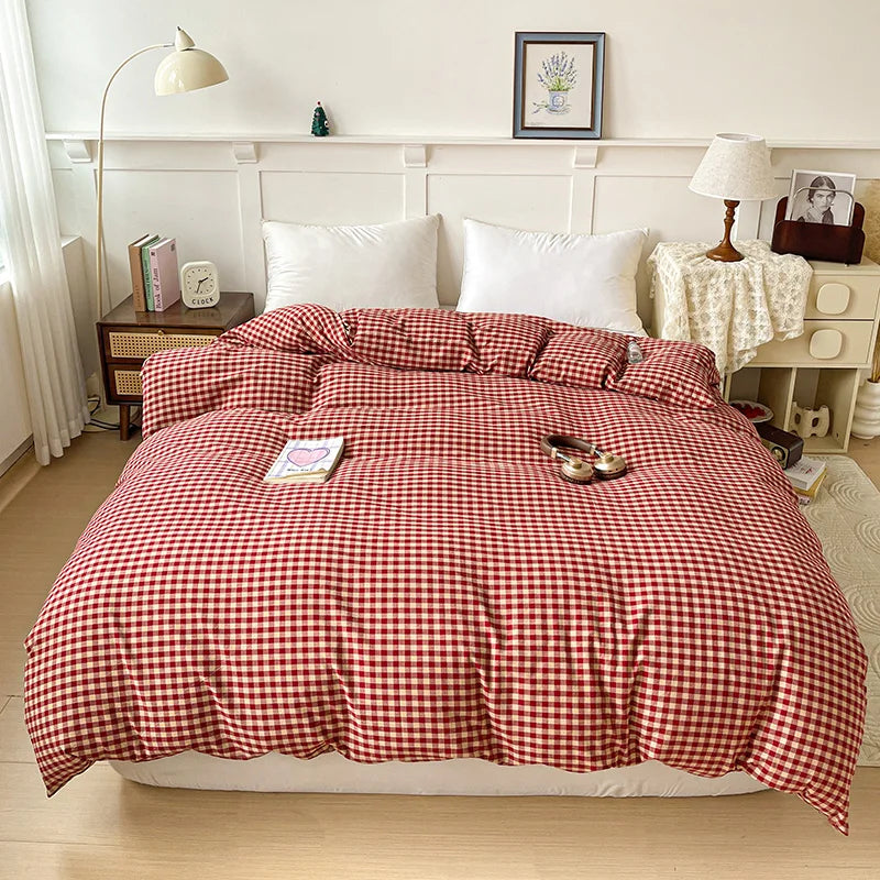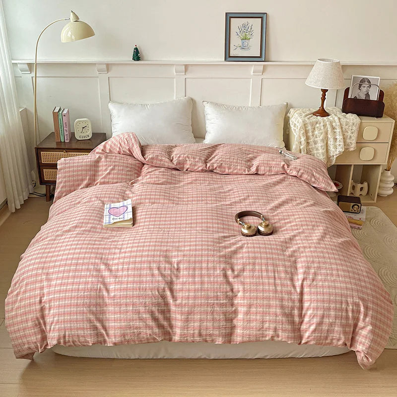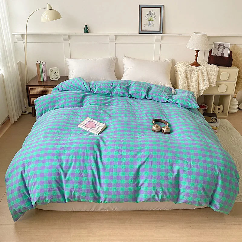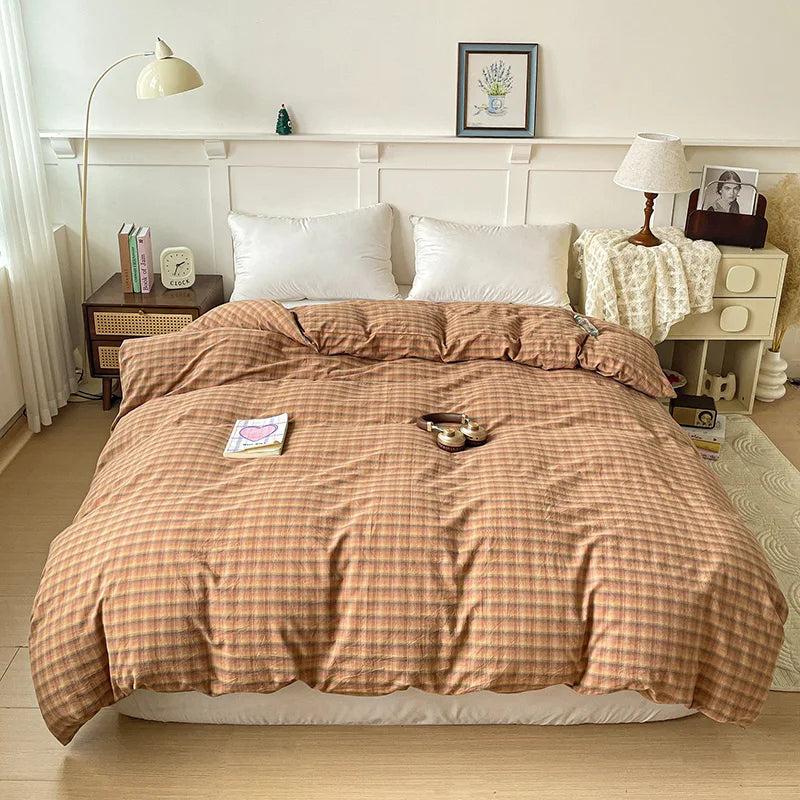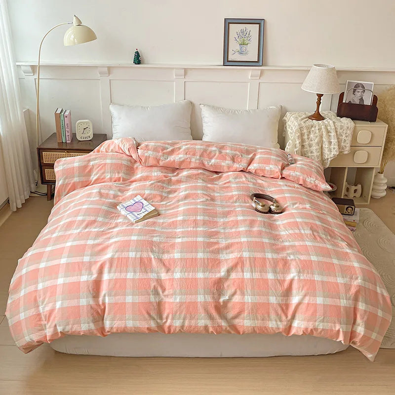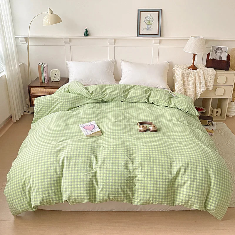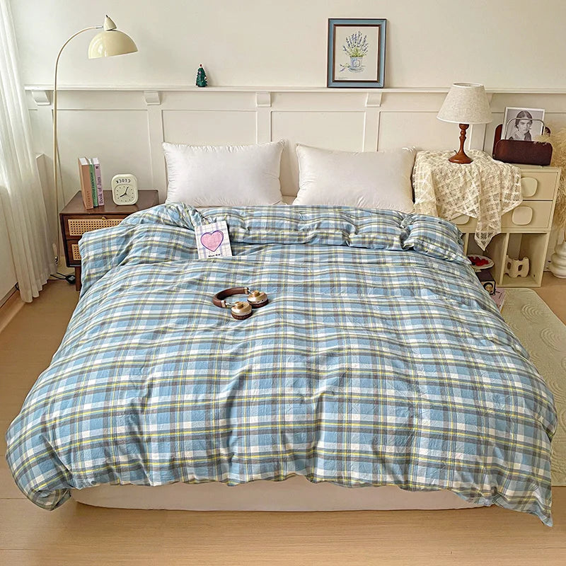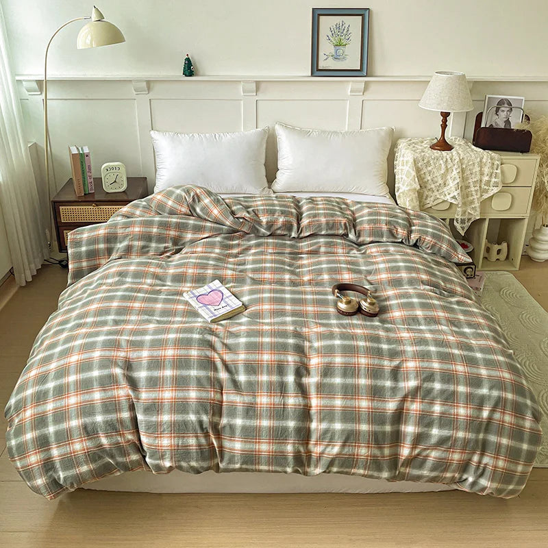 2025 New All-cotton Washed Cotton Single Quilt Set Printed Plaid Duvet Cover 150x200 220x240 Skin Friendly Bedding