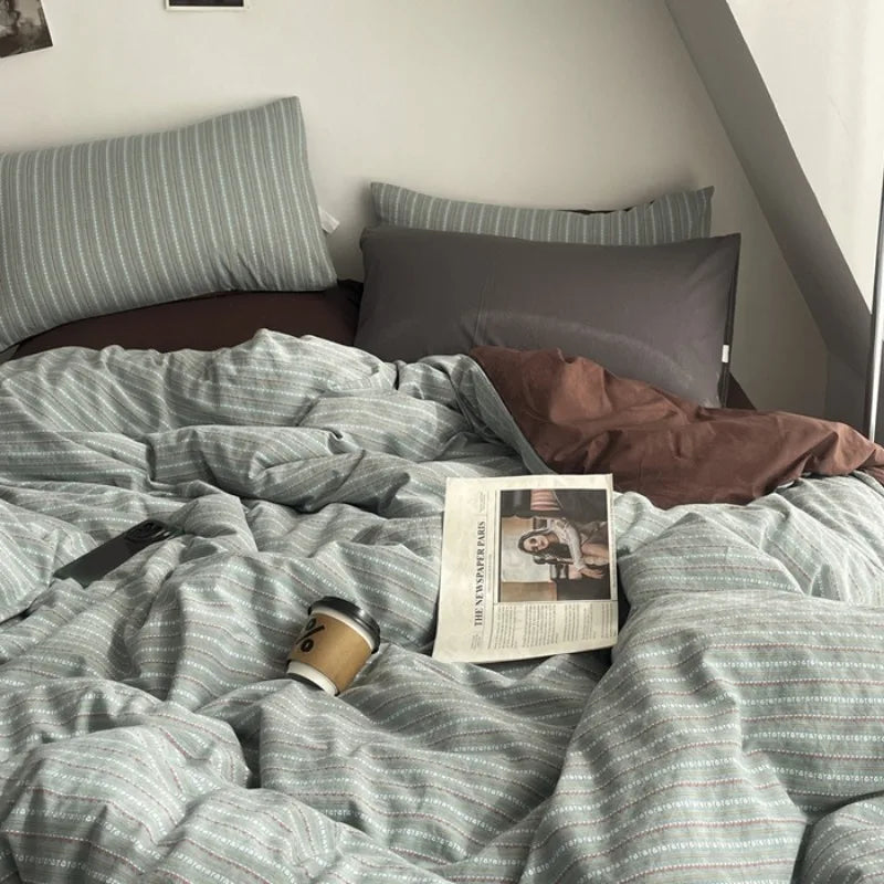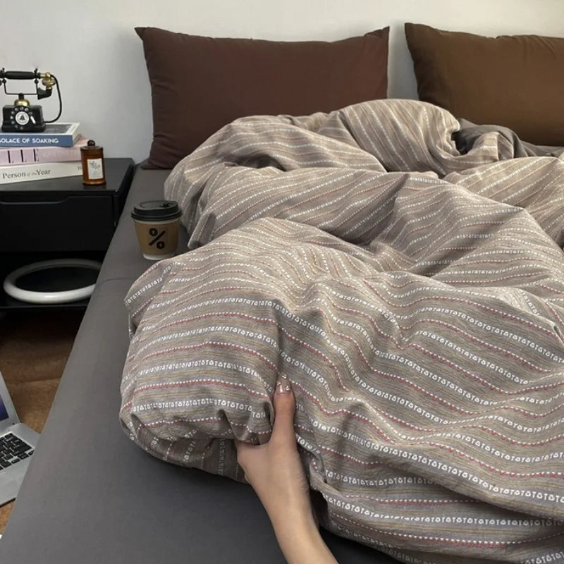 2025 new cotton-colored woven jacquard herringbone slanted bed sheet four-piece set - Maillard series washable fabric