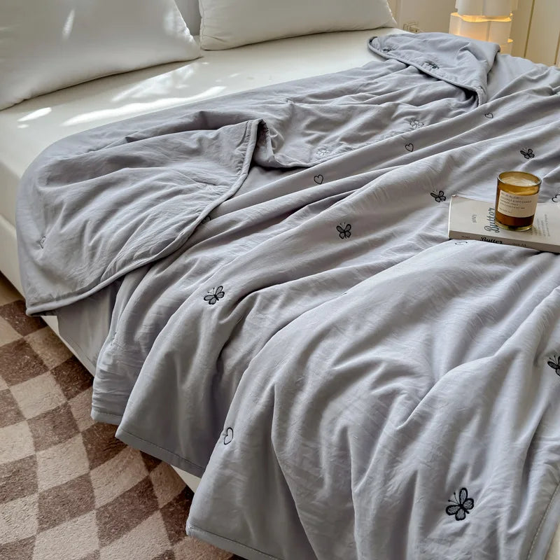 2025 new embroidered washed cotton summer quilt machine washable light dormitory single double summer air conditioner quilt