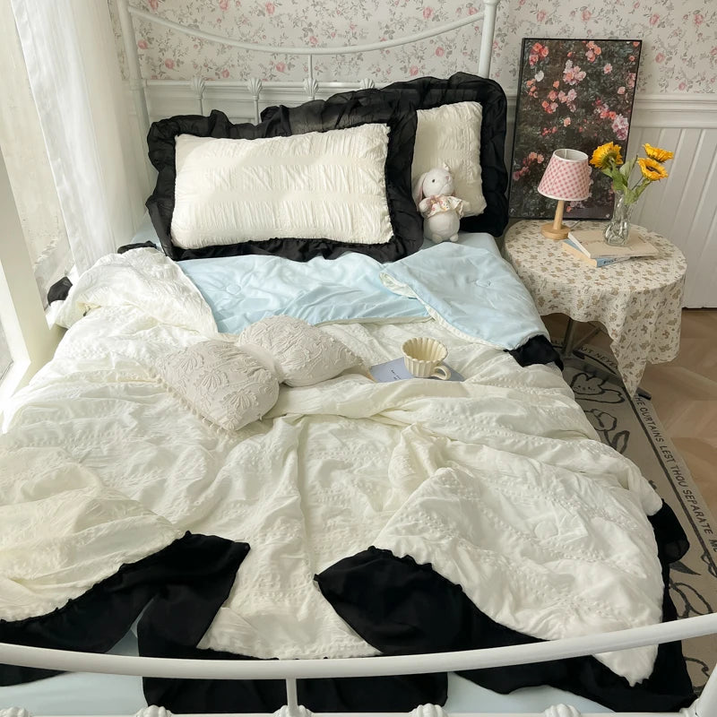 2025 new seersucker chiffon lace washed cotton summer cool quilt four-piece air conditioner quilt three-piece summer quilt set