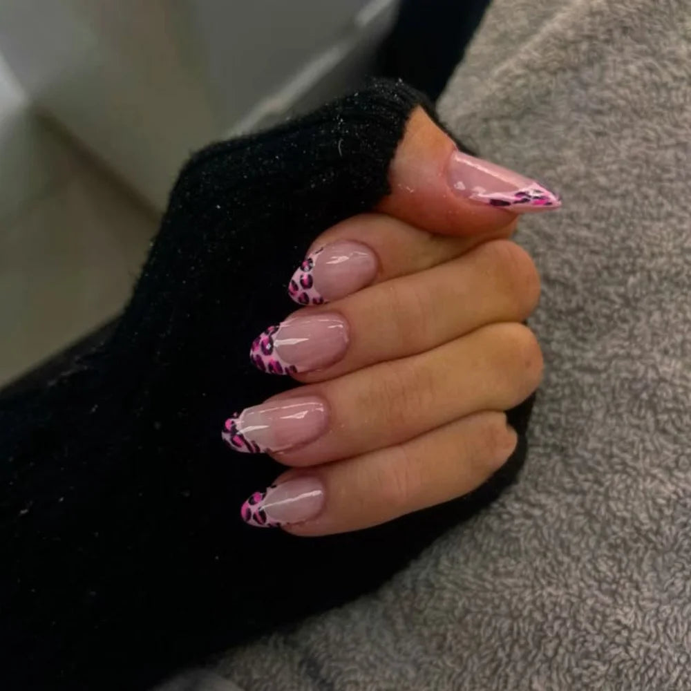 24pcs Brown Smudge Fake Nails Sets Fashion Short Almond Press on Nails Simple Leopard Print False Nail Reusable Manicure Tips