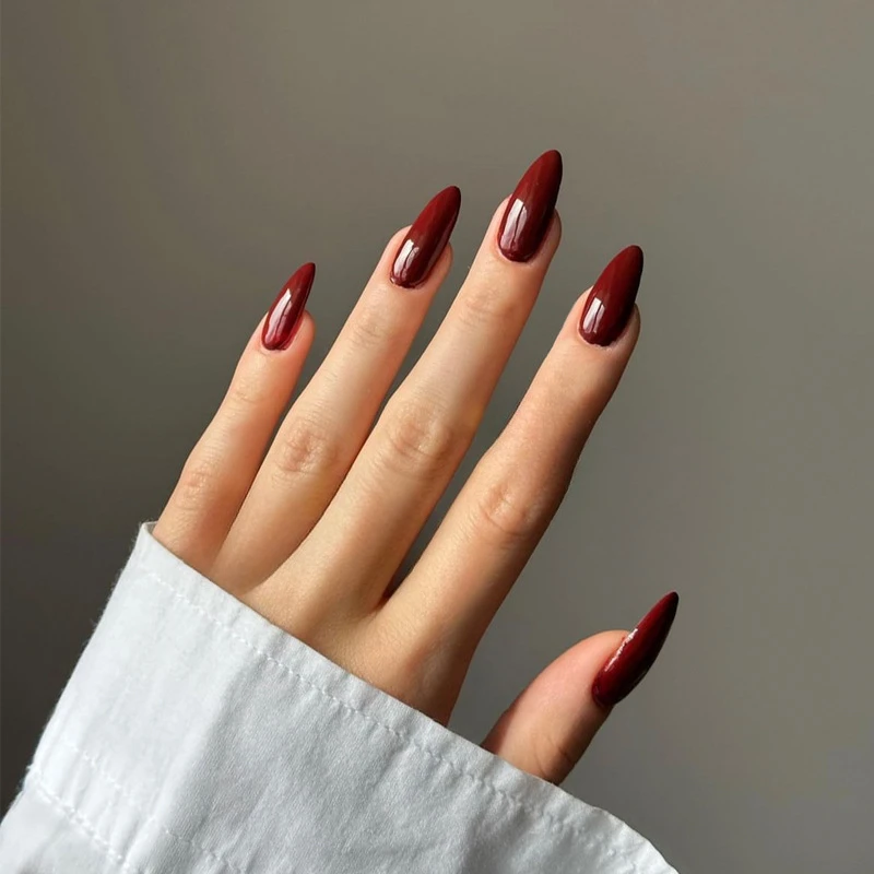 24Pcs False Nails Press on Nail Solid Color Bright Face Spicy Girl Style Almond Acrylic Nails Wearable Cool Simple Red Fake Nail