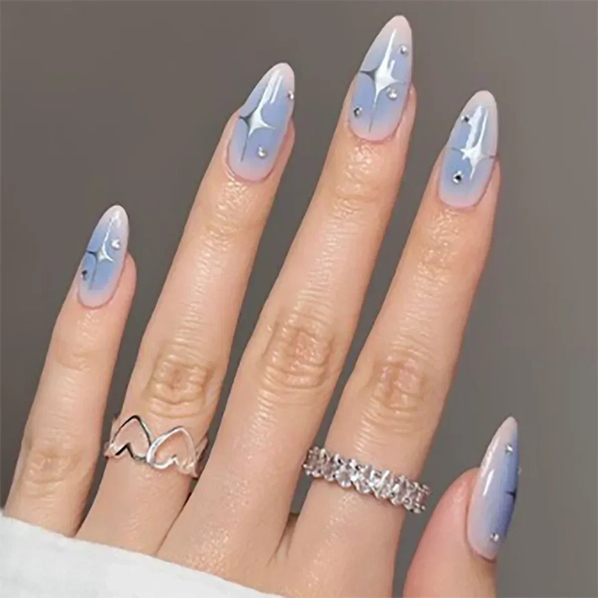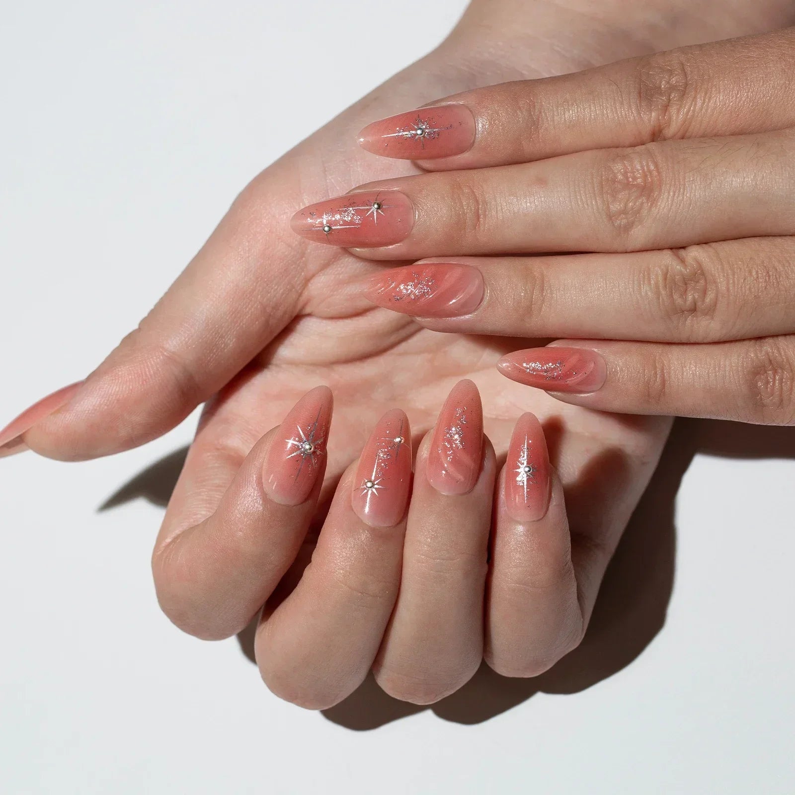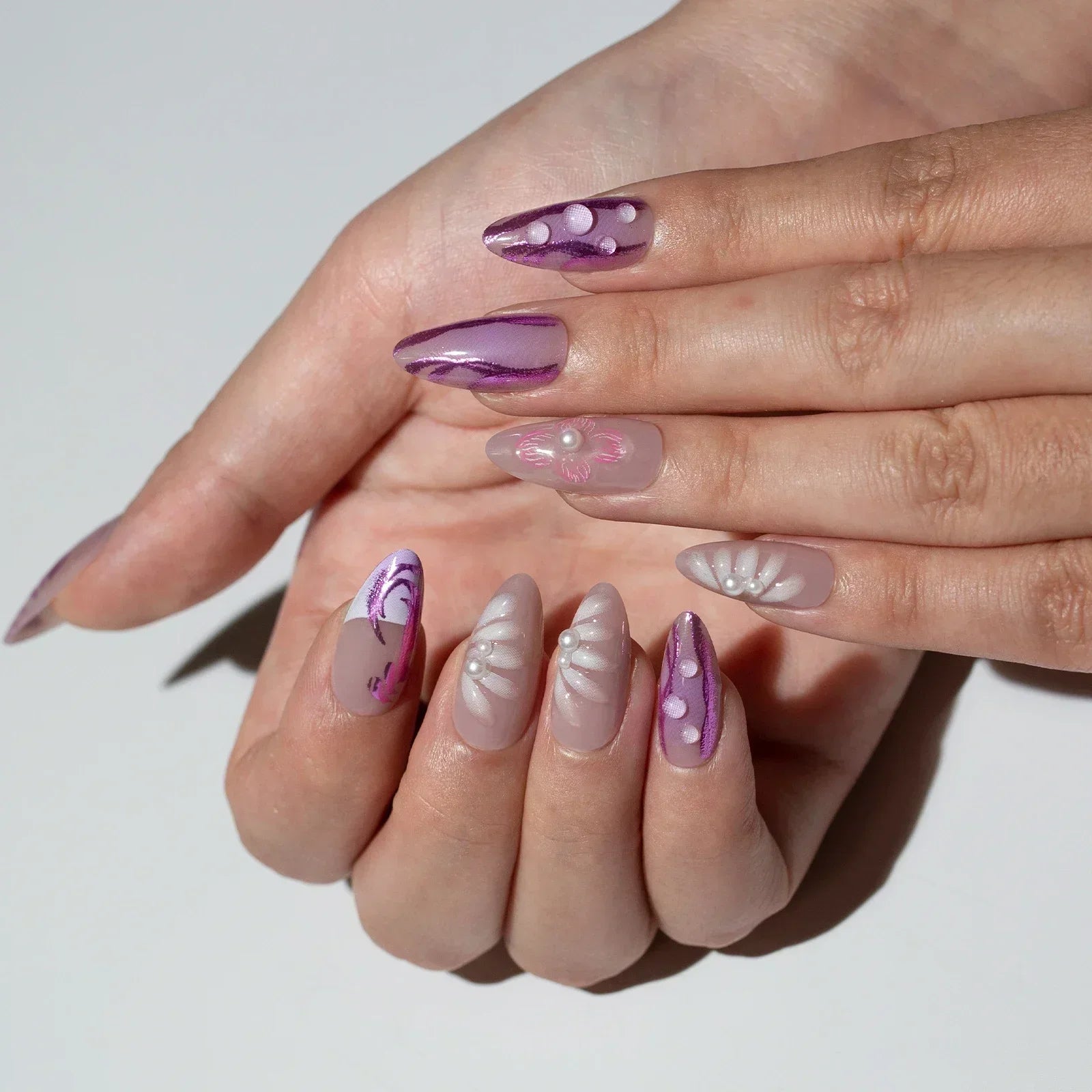 24Pcs Pink Almond French Press on Nails With 3D Bow ripple charms Design Fake Nails Ballerina False Nails Full Cover Nail Tips