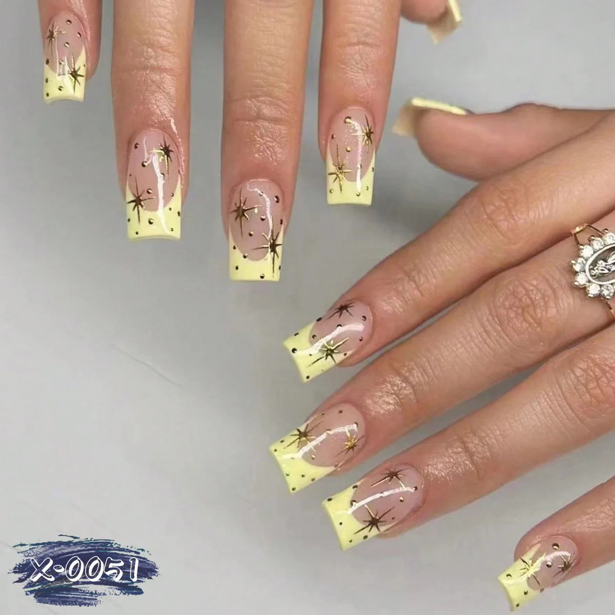 24pcs Silver French False Nail Short Square Simple Stars Glitter Powder Press on Nails Wearable Full Cover Acrylic Fake Nail Tip