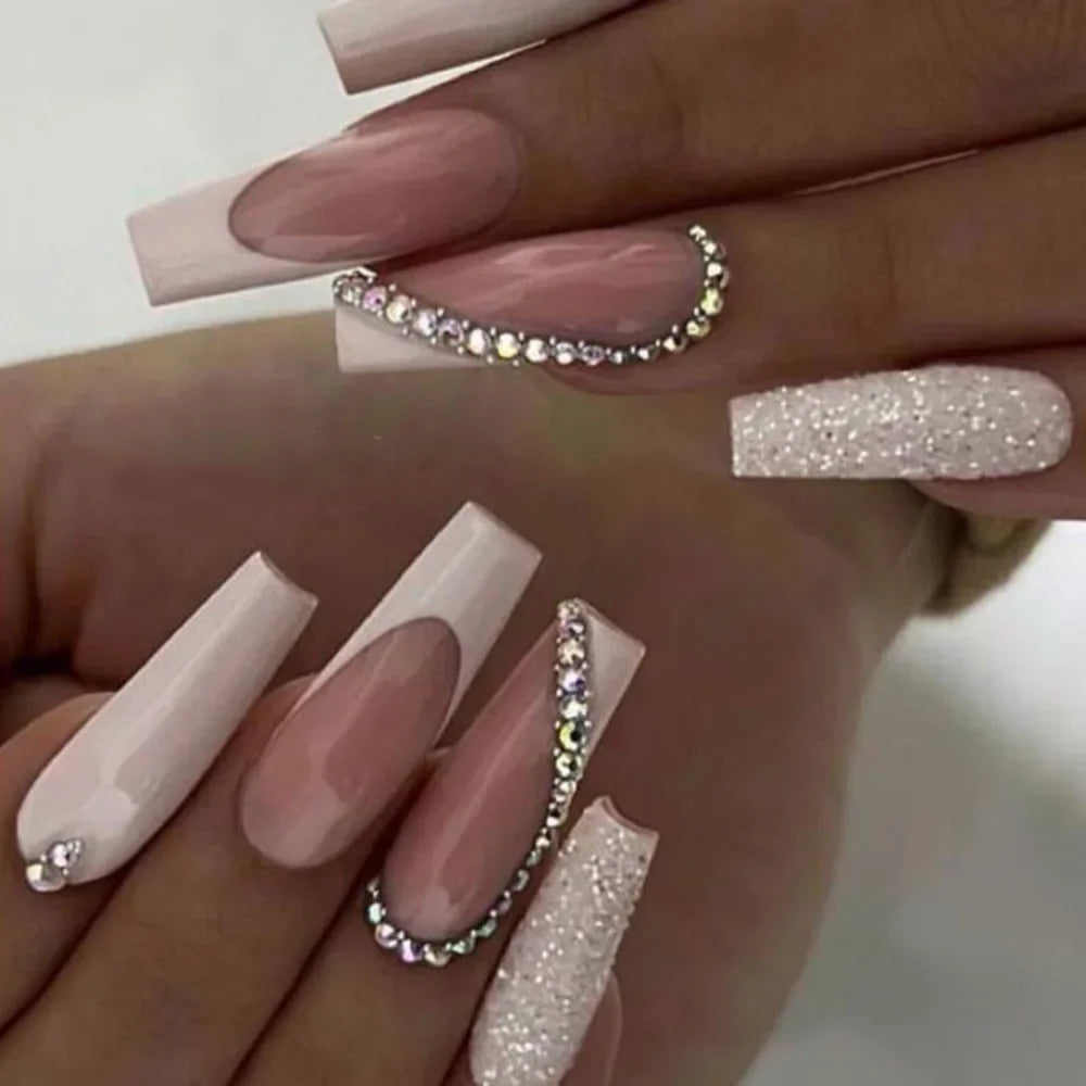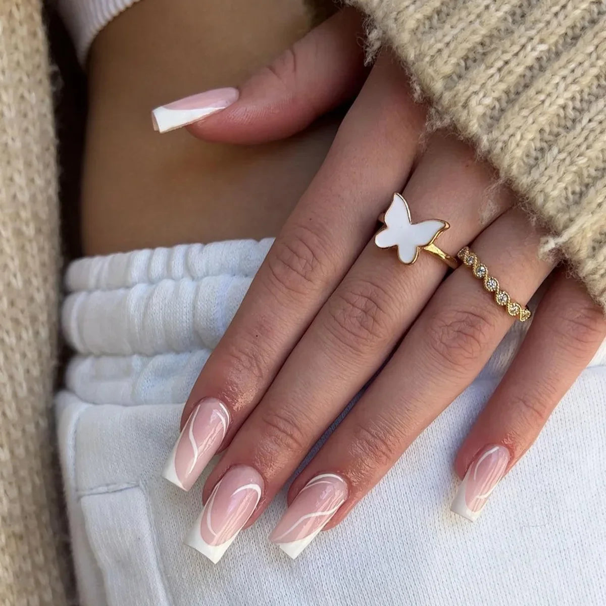24Pcs Simple White French Press on Nails with Glue Long Ballet False Nails Wearable Coffin Fake Nails Full Cover Nail Tips