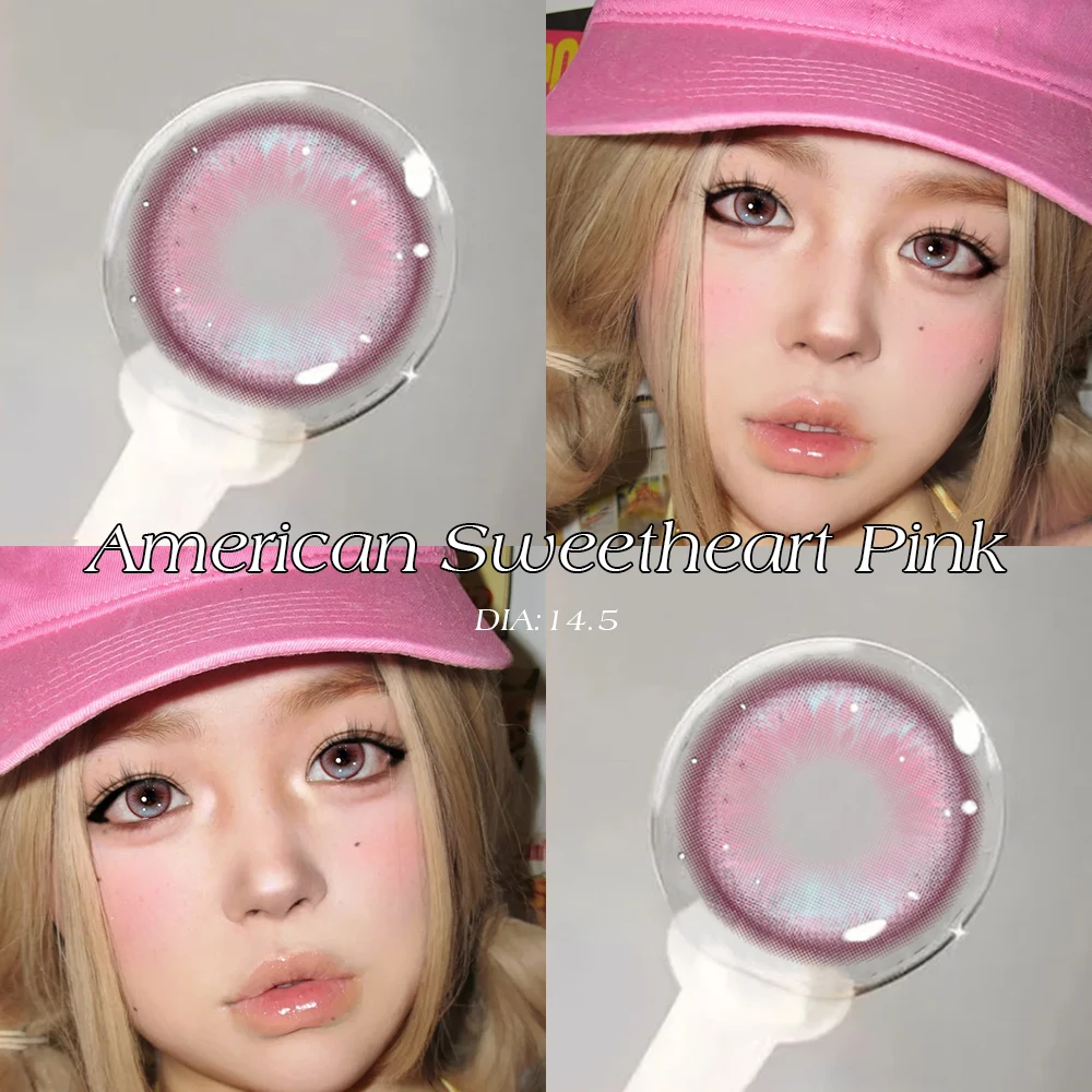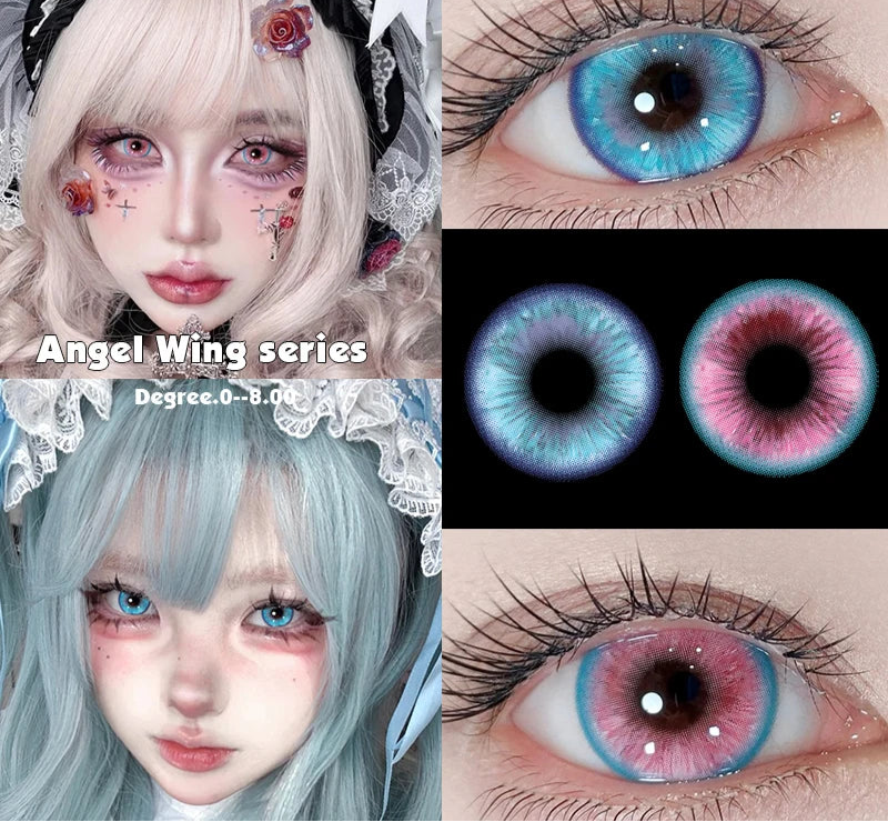 2PCS Fashion Makeup Beauty Colored Contact Lenses for Eyes Degree Myopia Red Eye Soft Anime Cosplay Pink Contact Lens