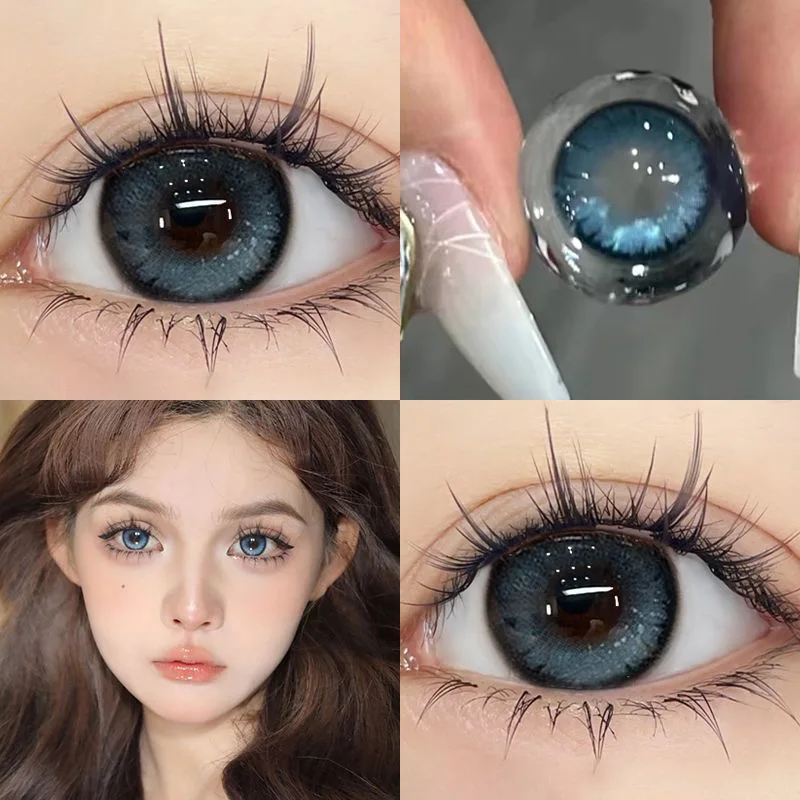 2PCS Hot Sale Color Contact Lenses with Prescription 0~-8.00 Degree Klein Butterfly Lenses Blue Pupils Beauty Eyes Lens