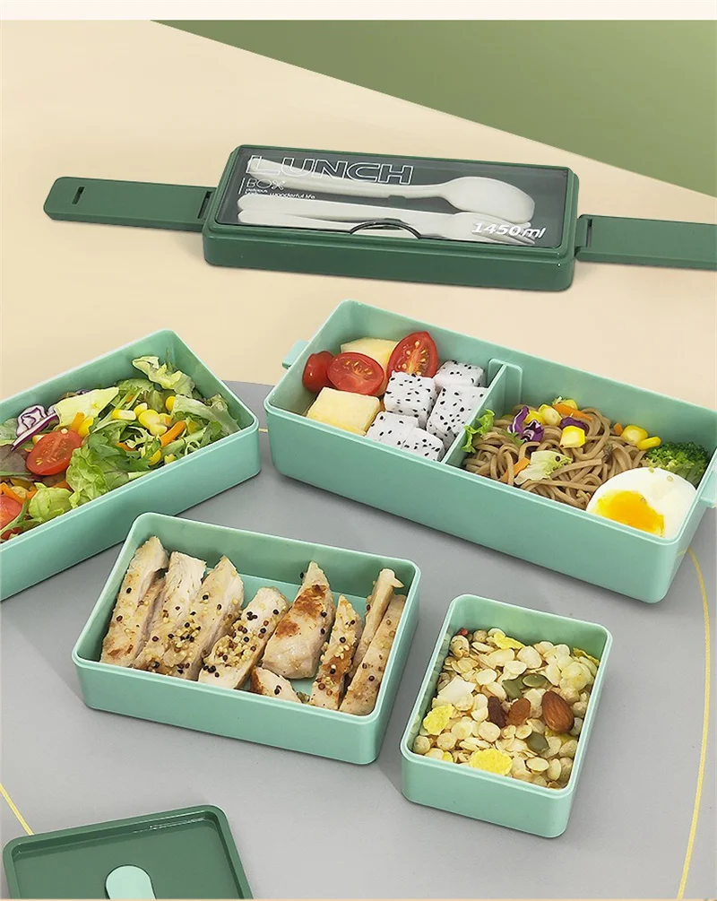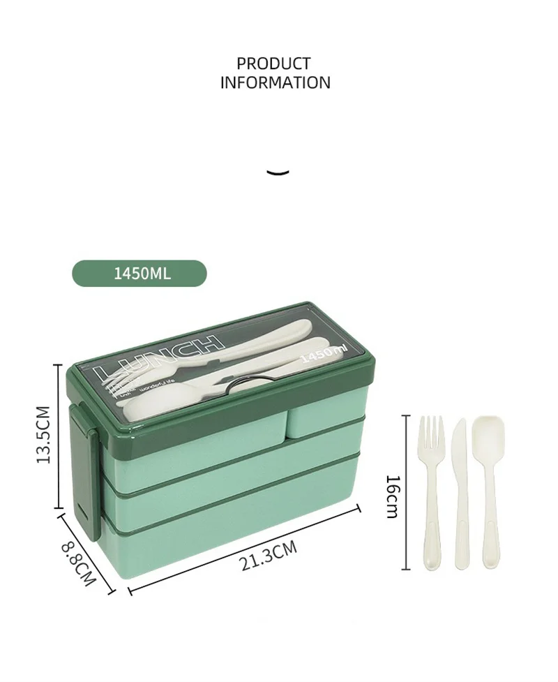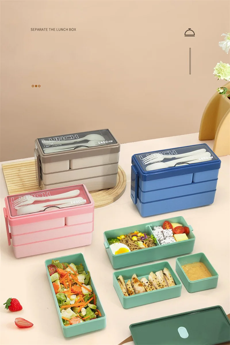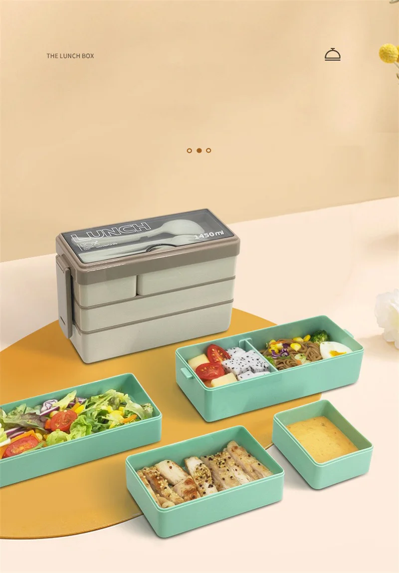 3 Layers Lunch Box Stackable Bento Boxes For Adults Office Students Lunch Box With Fork Spoon Microwave Food Storage Container