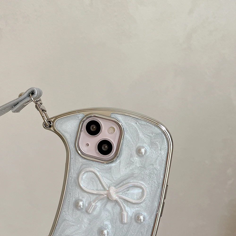3D Bow Pearl Handbag Hand Strap Phone Case For iPhone 16 15 14 13 12 11 Pro X XR XS Max Soft Shockproof Cover