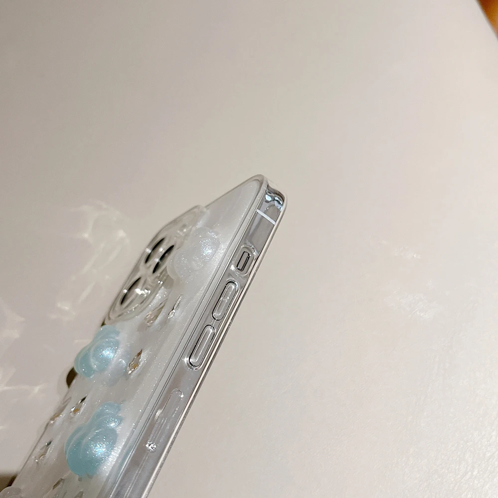 3D Clouds Cream Texture Phone Case For iPhone 16 15 14 13 12 11 Pro X XR XS Max 7 8 plus Cute Rhinestone Shockproof Cover