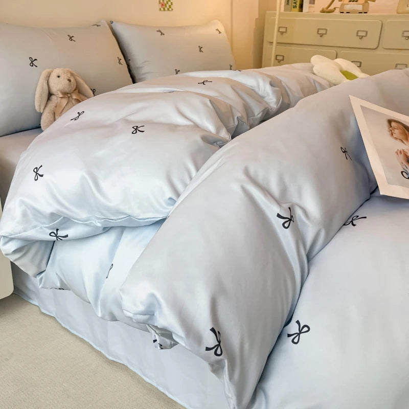 3pcs Blue Duvet cover set (1*Duvet Cover + 2*Pillowcase, Without Core), ow print Bedding Set, Soft Comfortable