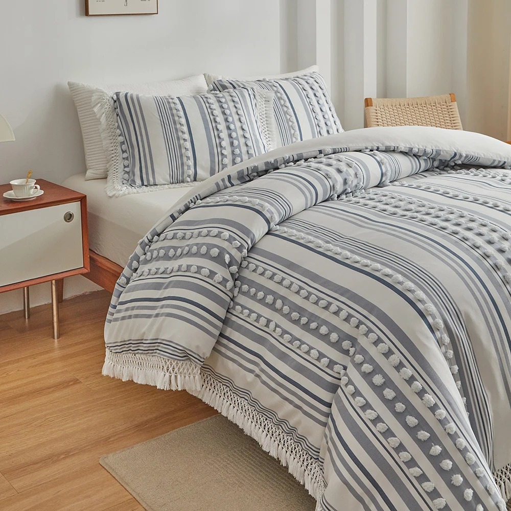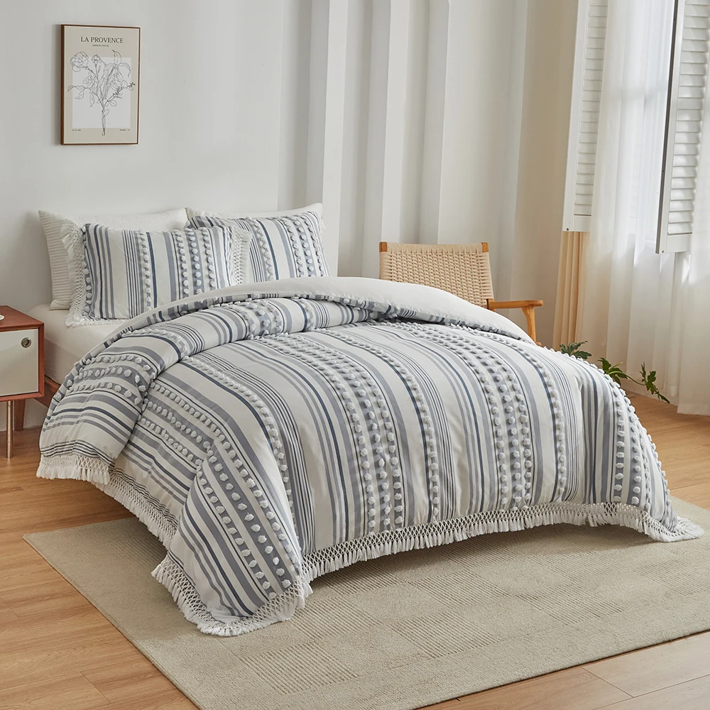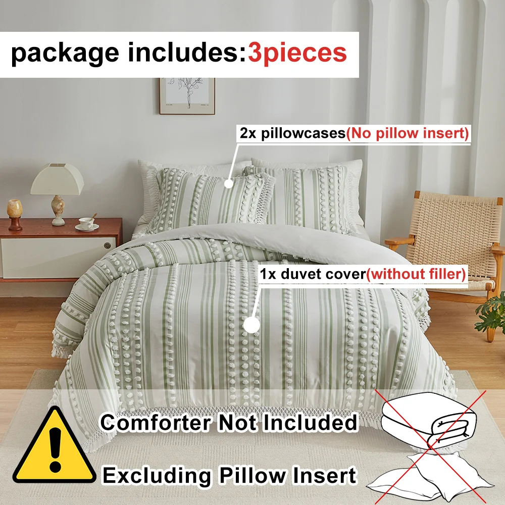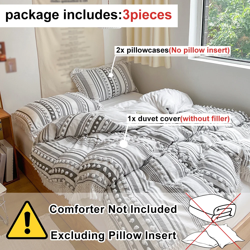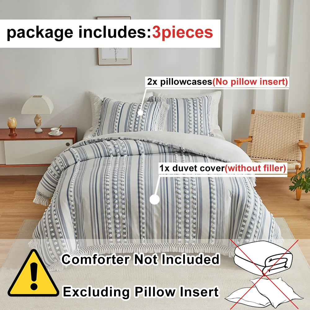 3Pcs Duvet Cover Set, 100% Soft polyester Duvet Cover with Tassel Texture, Tufted Duvet Cover All Seasons
