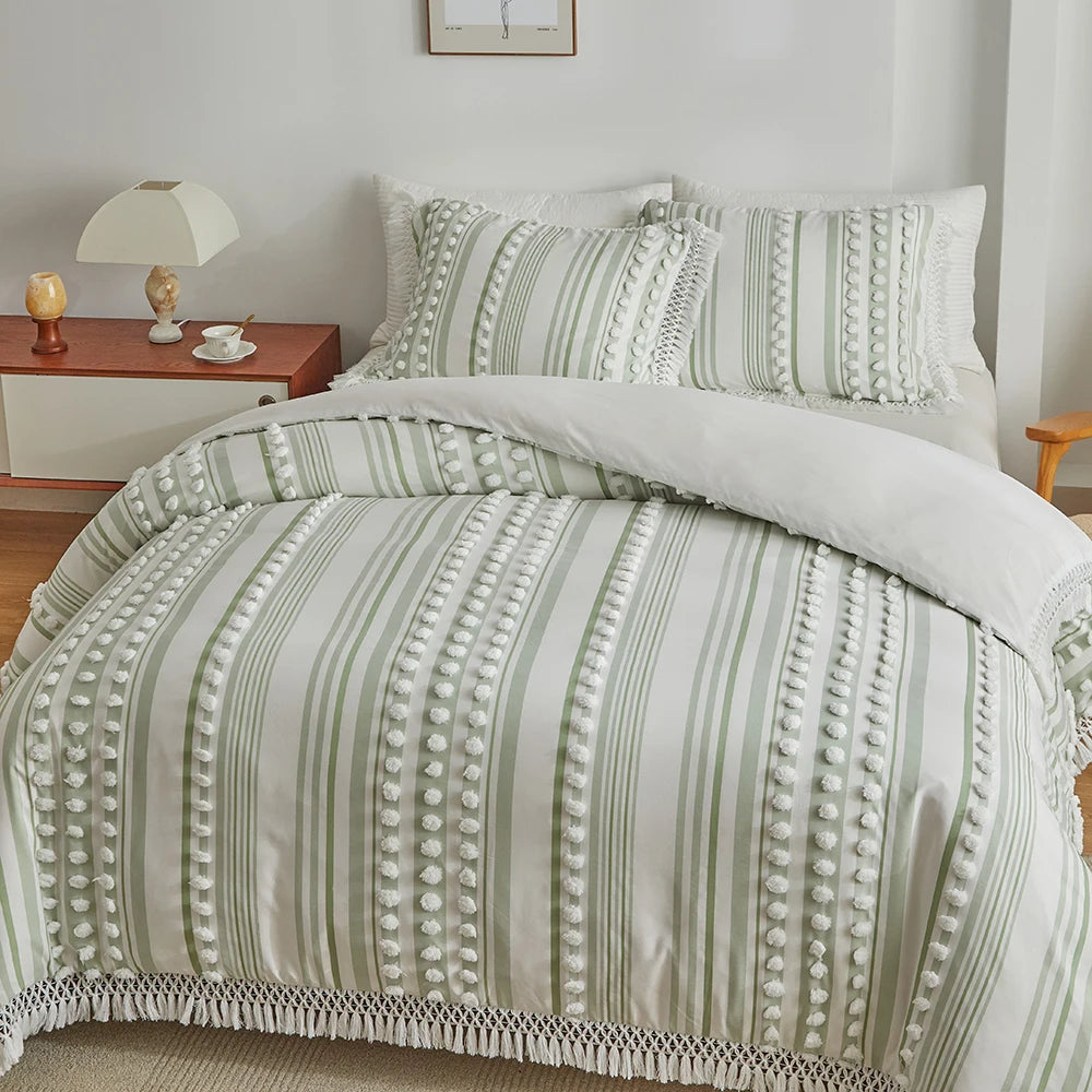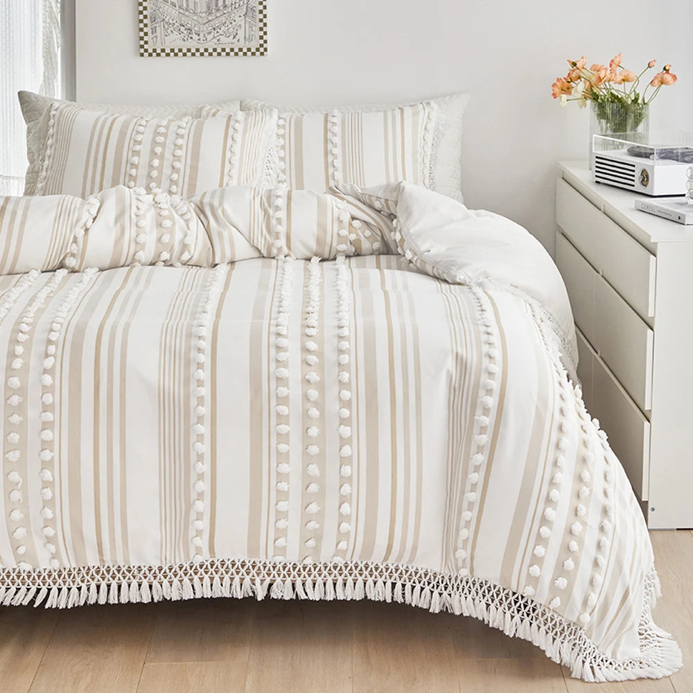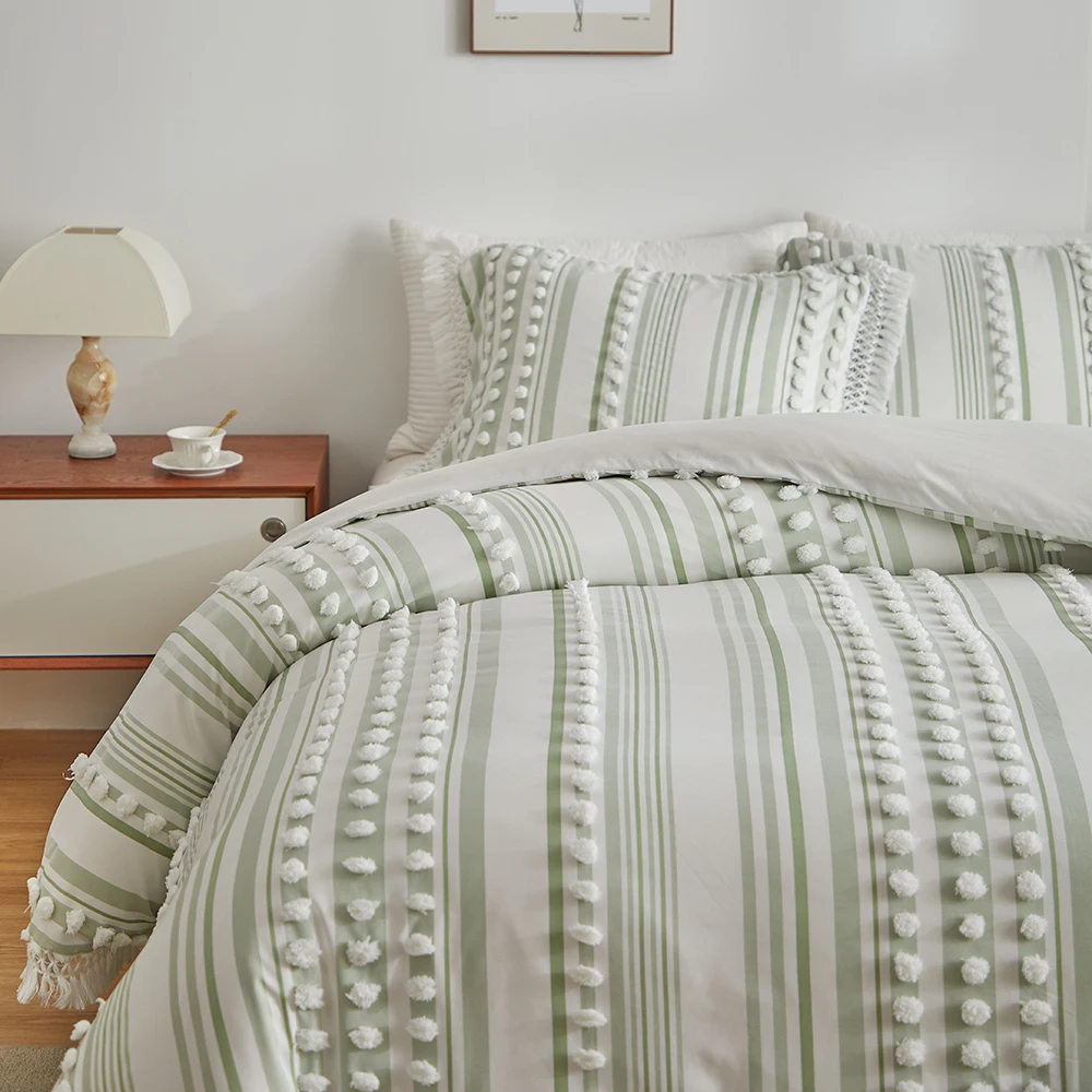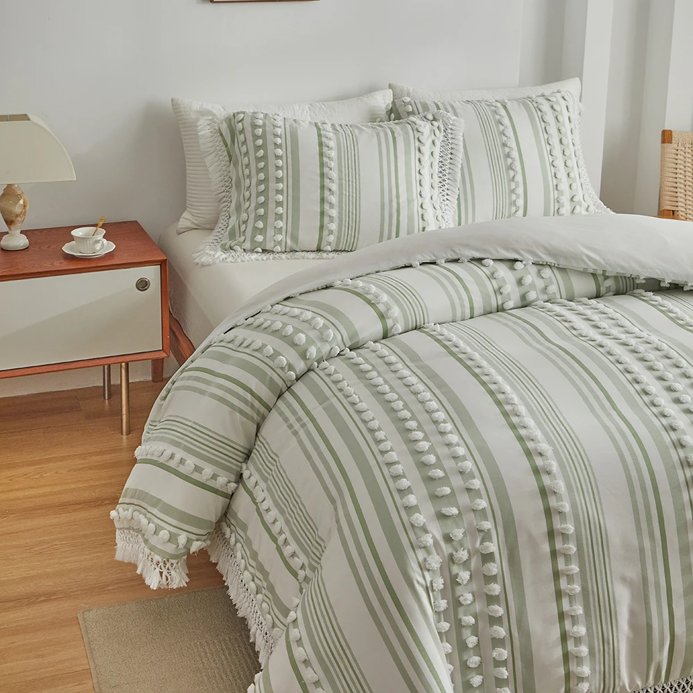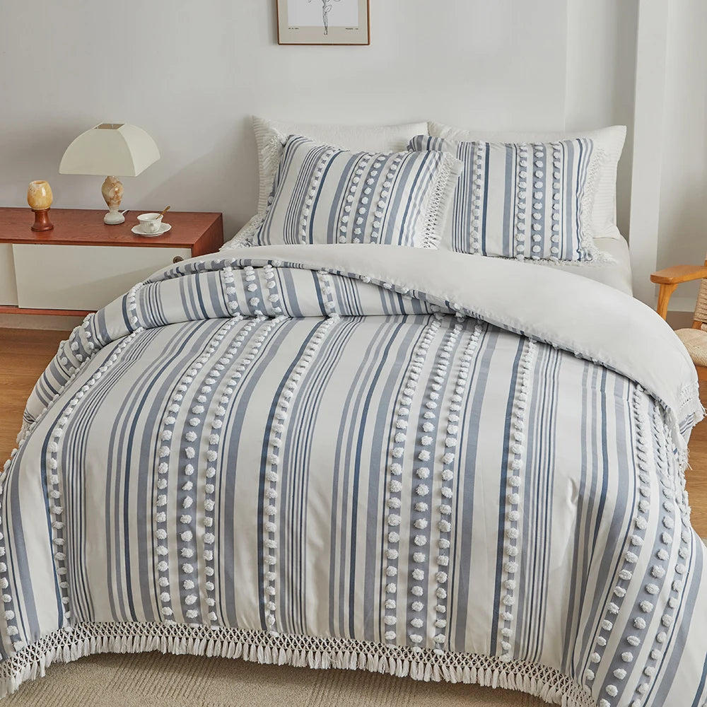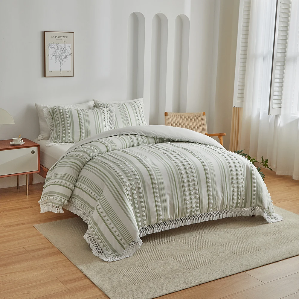 3Pcs Duvet Cover Set, 100% Soft polyester Duvet Cover with Tassel Texture, Tufted Duvet Cover All Seasons