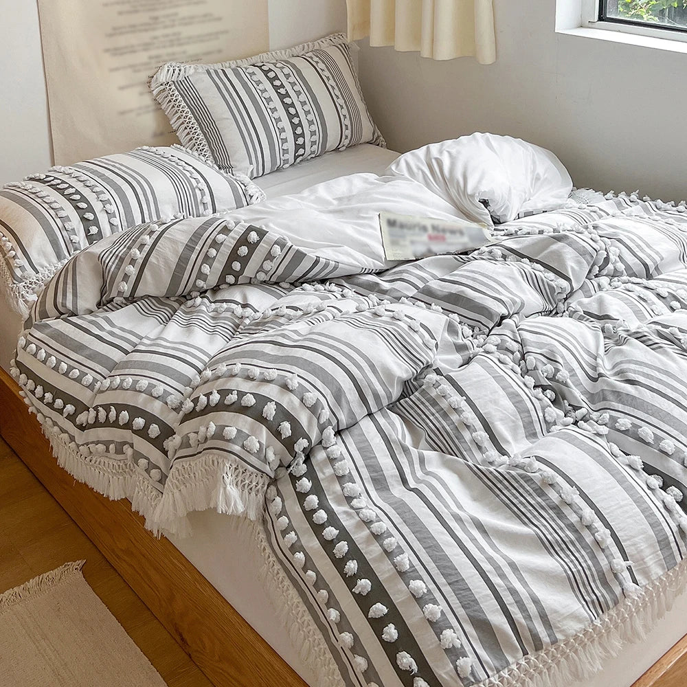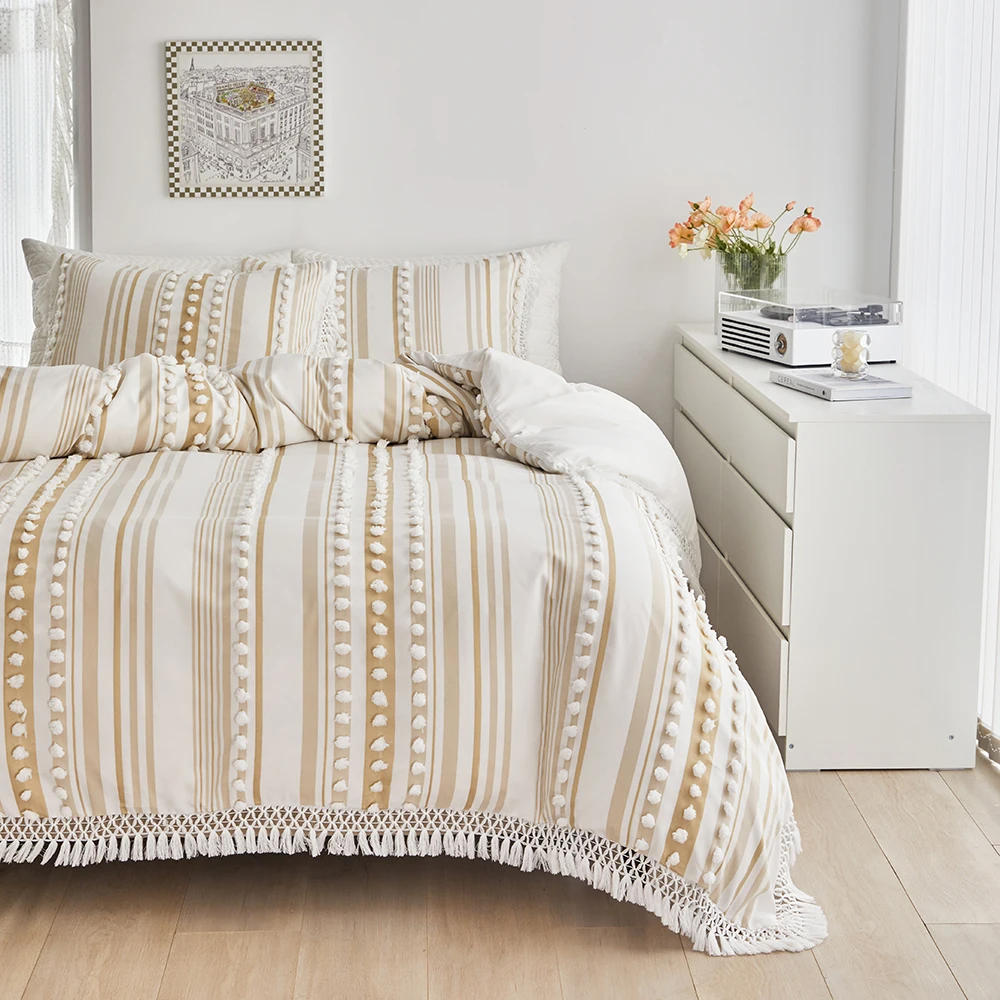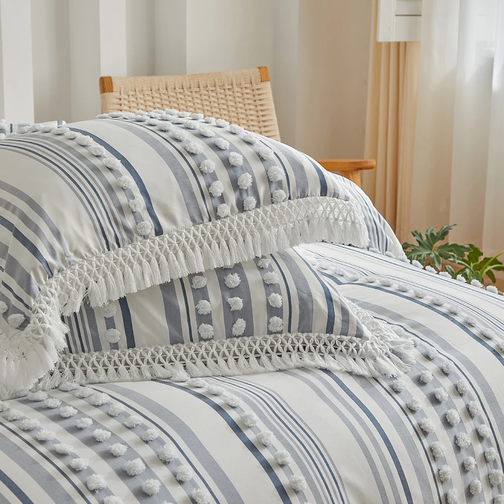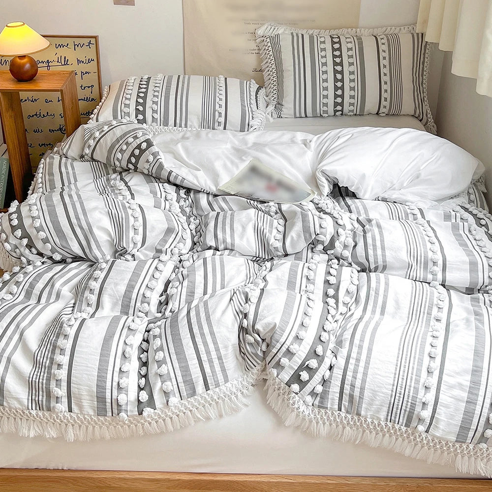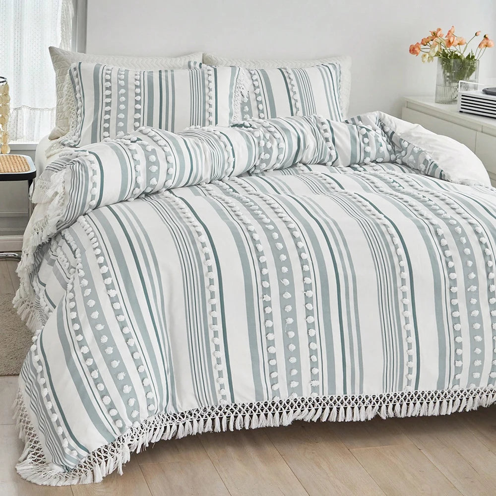3Pcs Duvet Cover Set, 100% Soft polyester Duvet Cover with Tassel Texture, Tufted Duvet Cover All Seasons