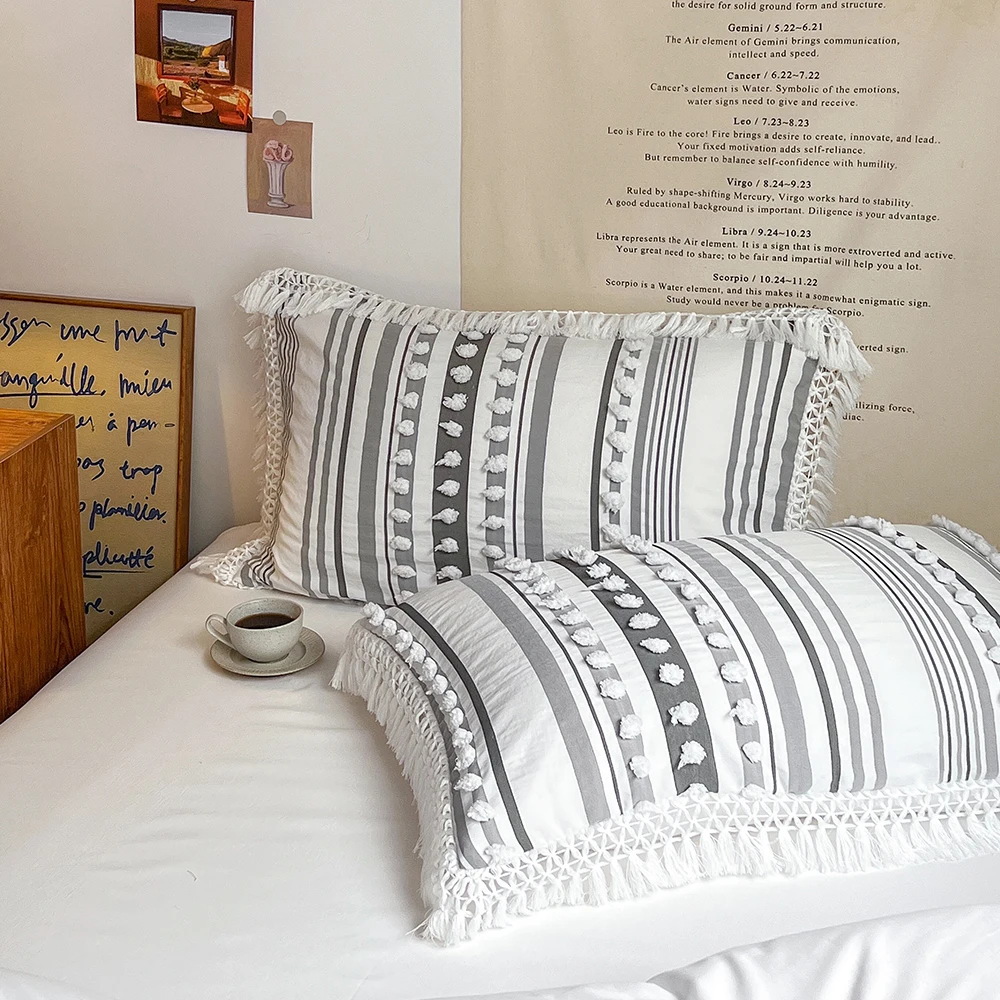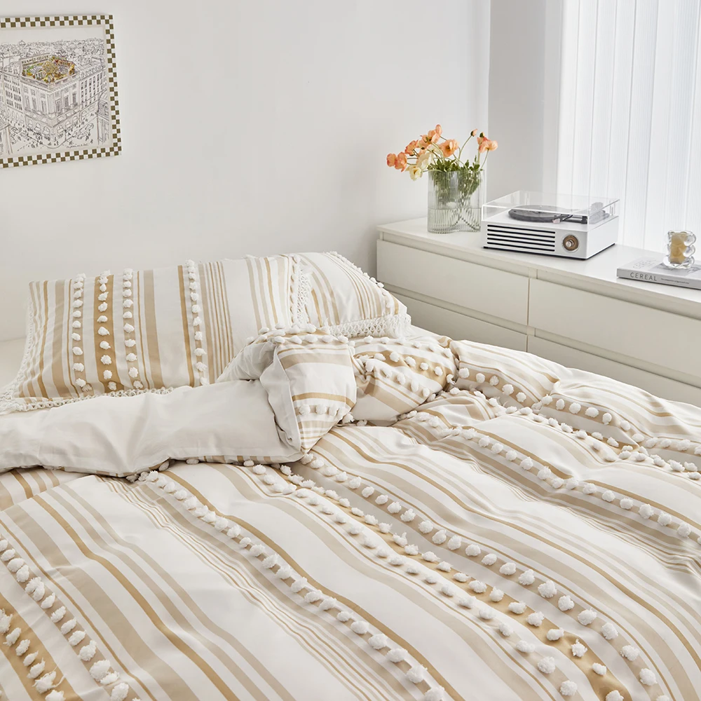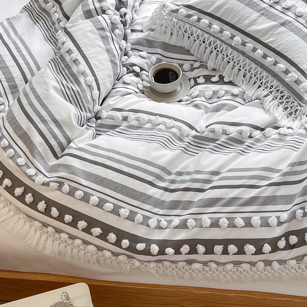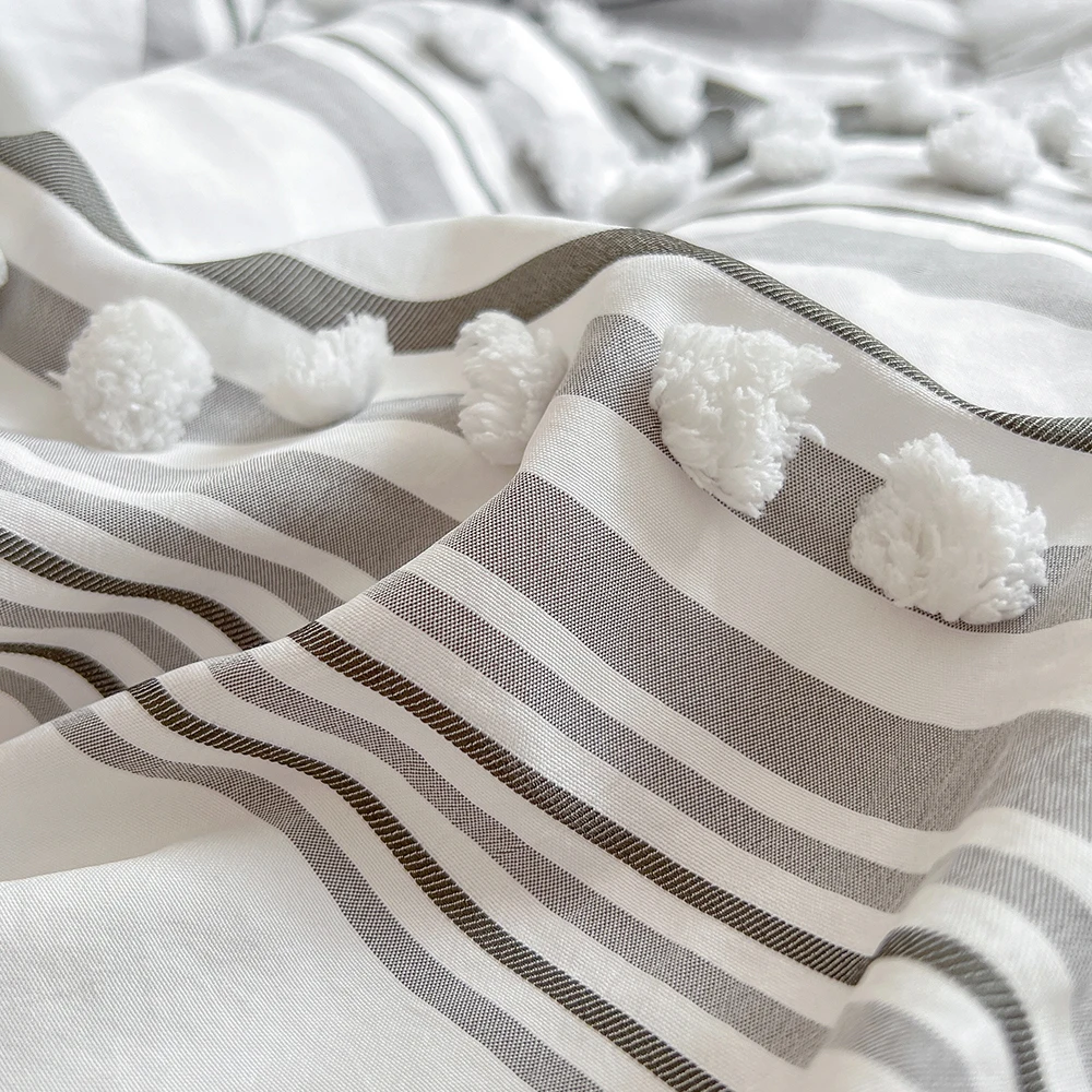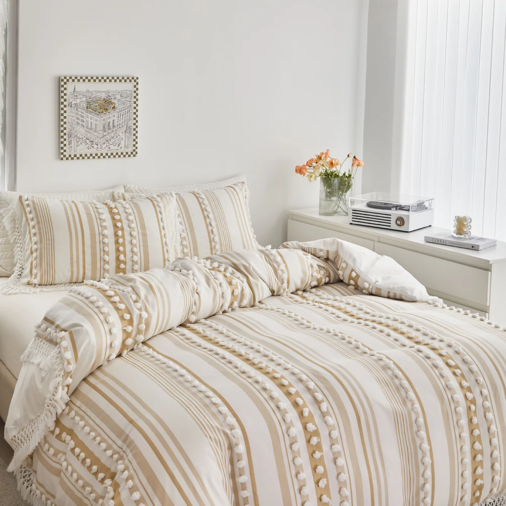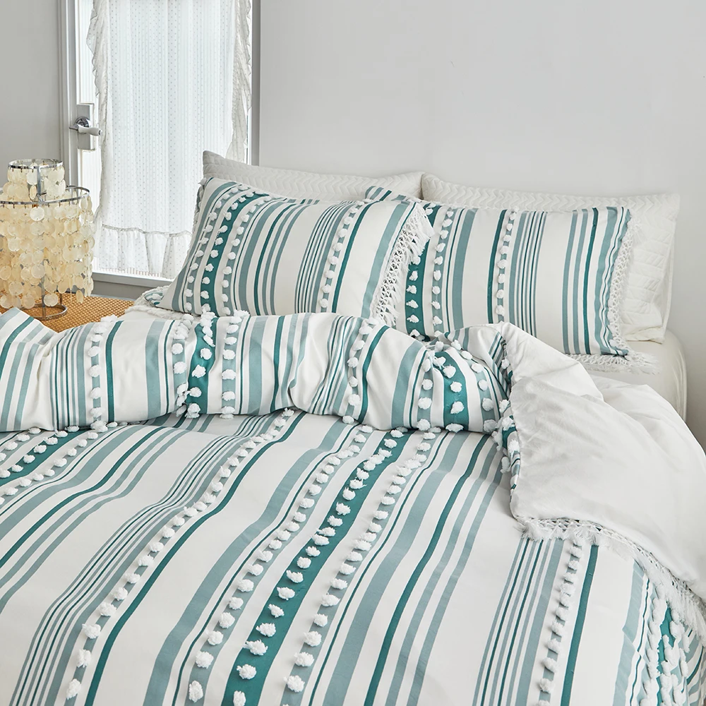 3Pcs Duvet Cover Set, 100% Soft polyester Duvet Cover with Tassel Texture, Tufted Duvet Cover All Seasons