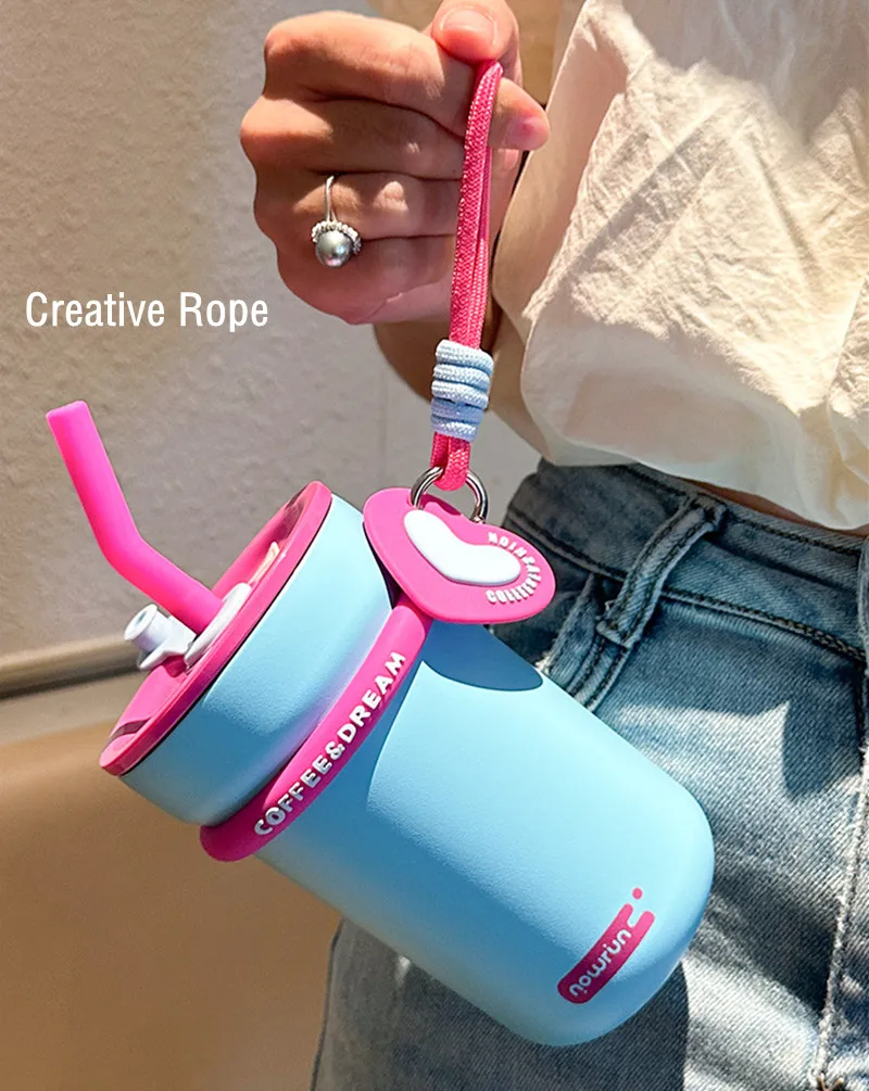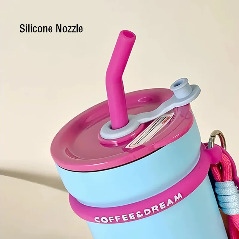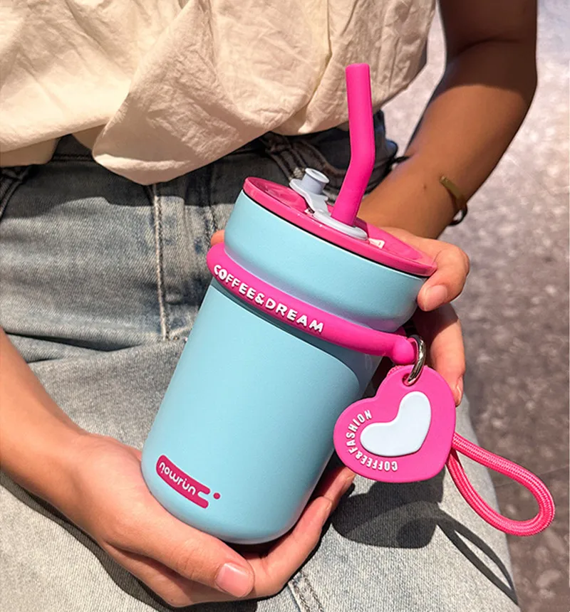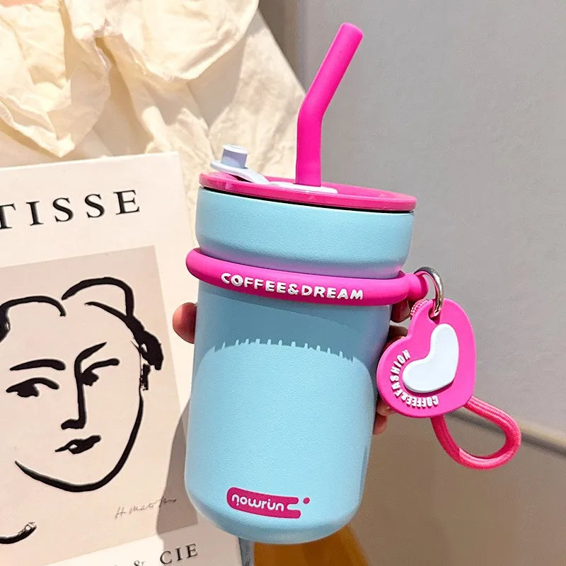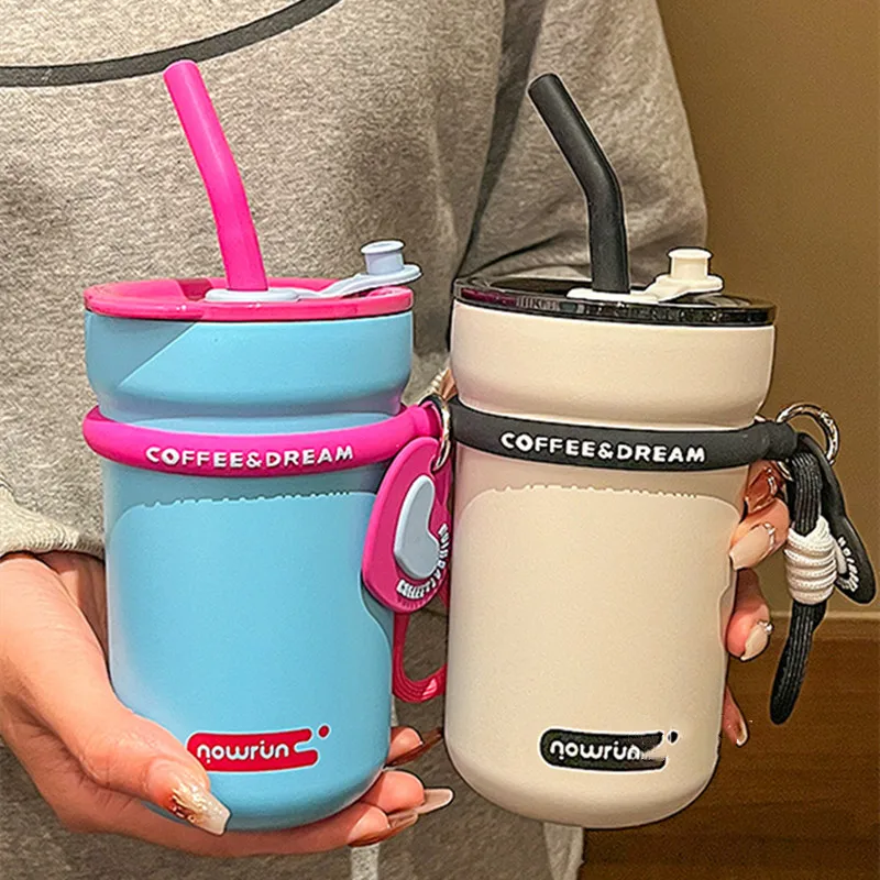 580ml Fashion Stainless Steel 316 Coffee Mug With Straw Large Capacity Leak-Proof Vacuum Flask Cold Drink Bottle Travel Tumbler