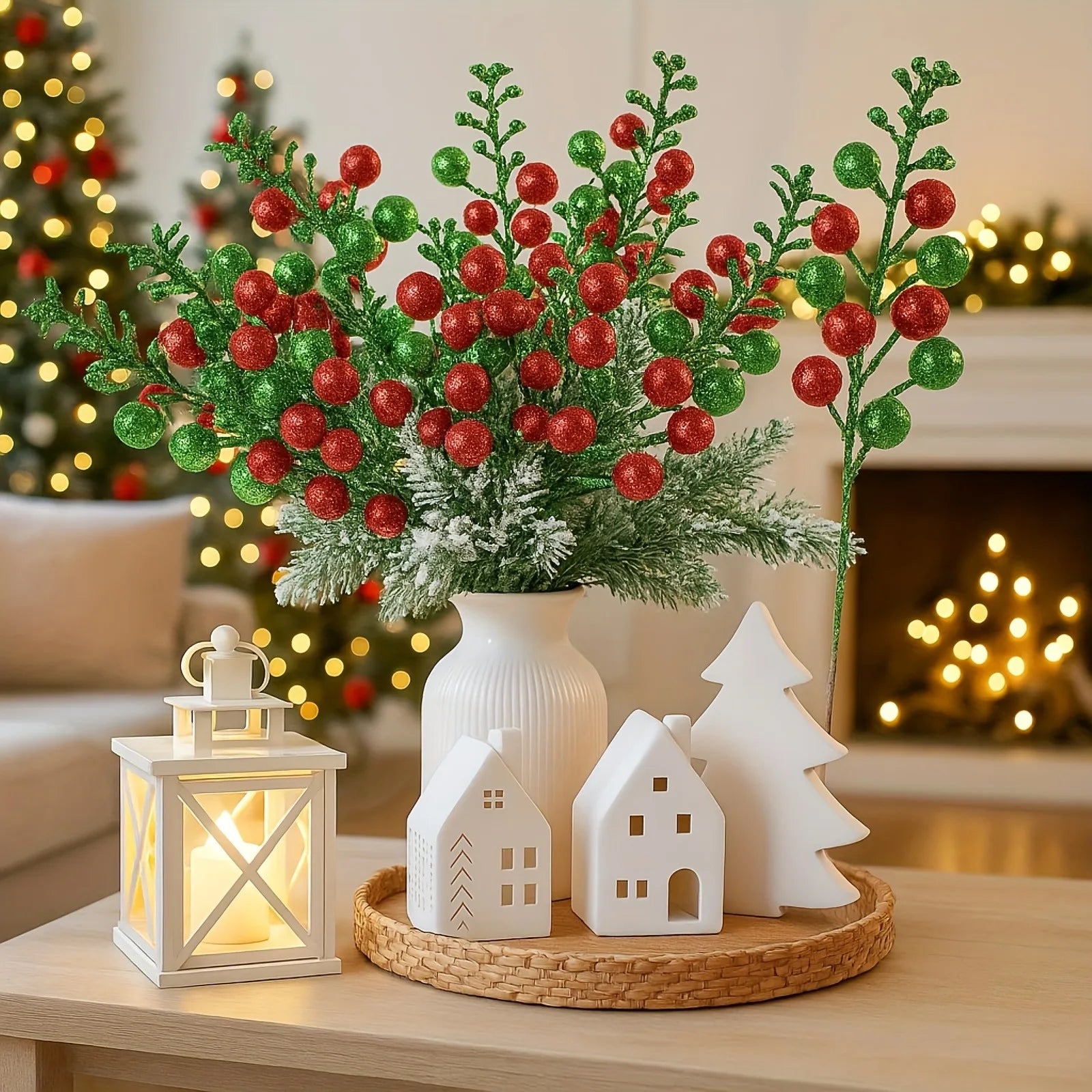 6/12Pcs Christmas Decoration 22CM Artificial Pine Branches for Home Decor Christmas Tree Pendant Ornament Party Gifts Supplies