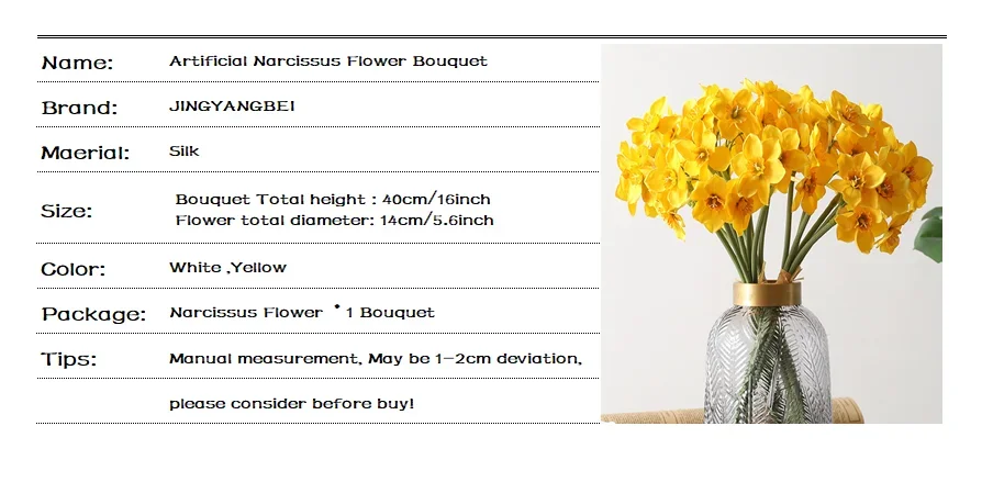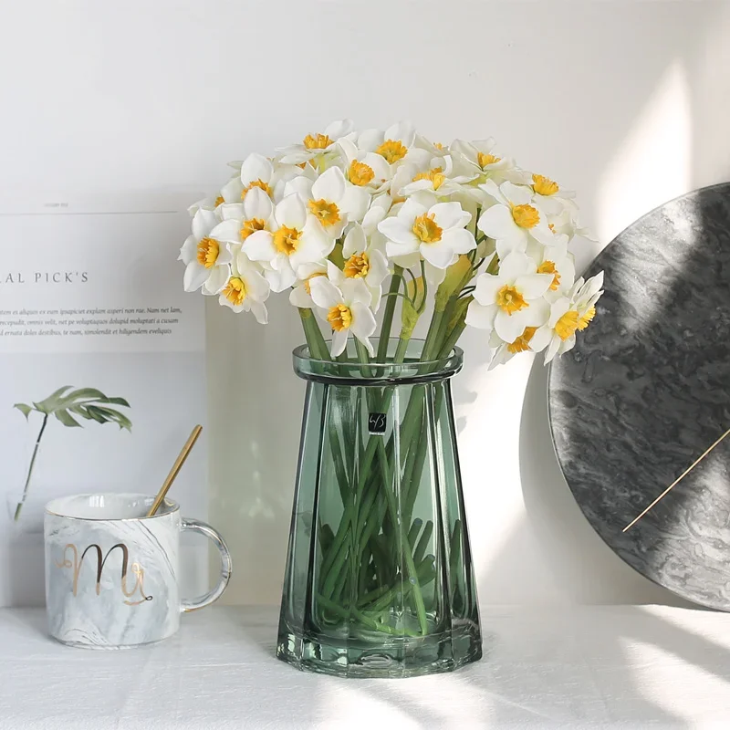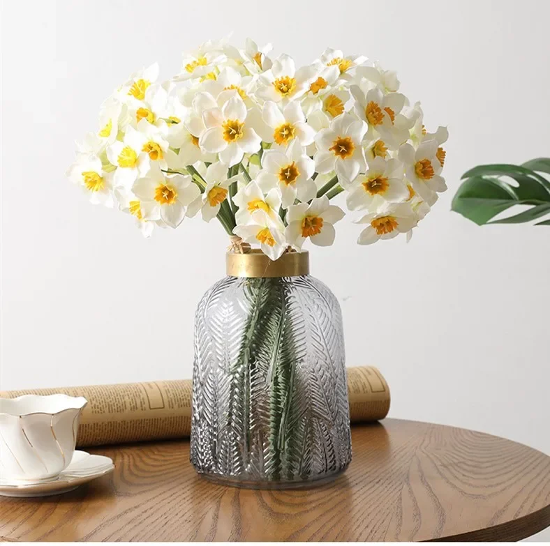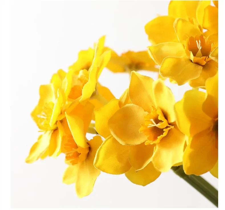 6Pcs/bunch White Artificial Narcissus Flower Bouquet Home Garden Desktop Decoration Floral Party Wedding Bridal Fake Flowers