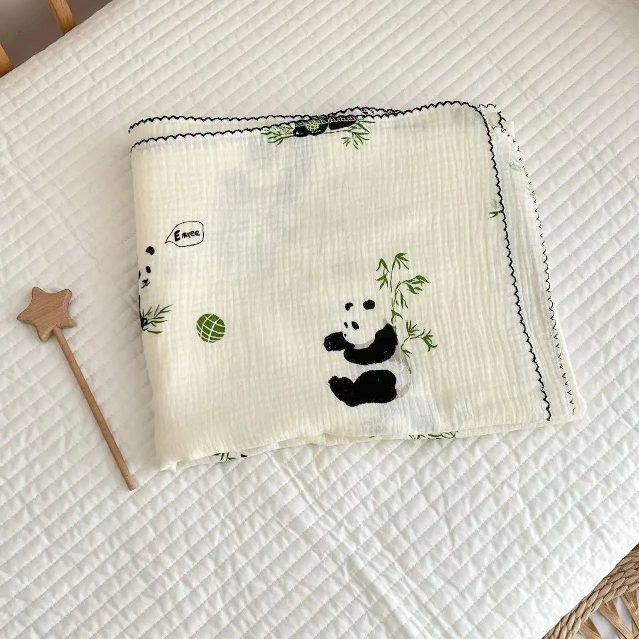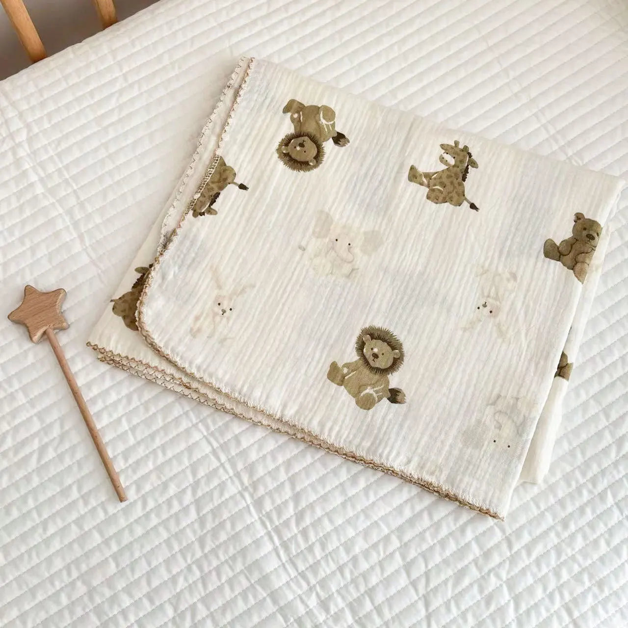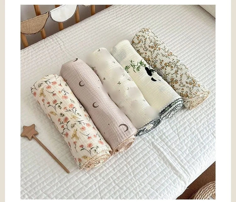 Baby Muslin Blanket 110X130cm Swaddle Blanket Gauze Thin Quilt Floral Print Double Layer Cotton Stroller Cover Kids Bedding