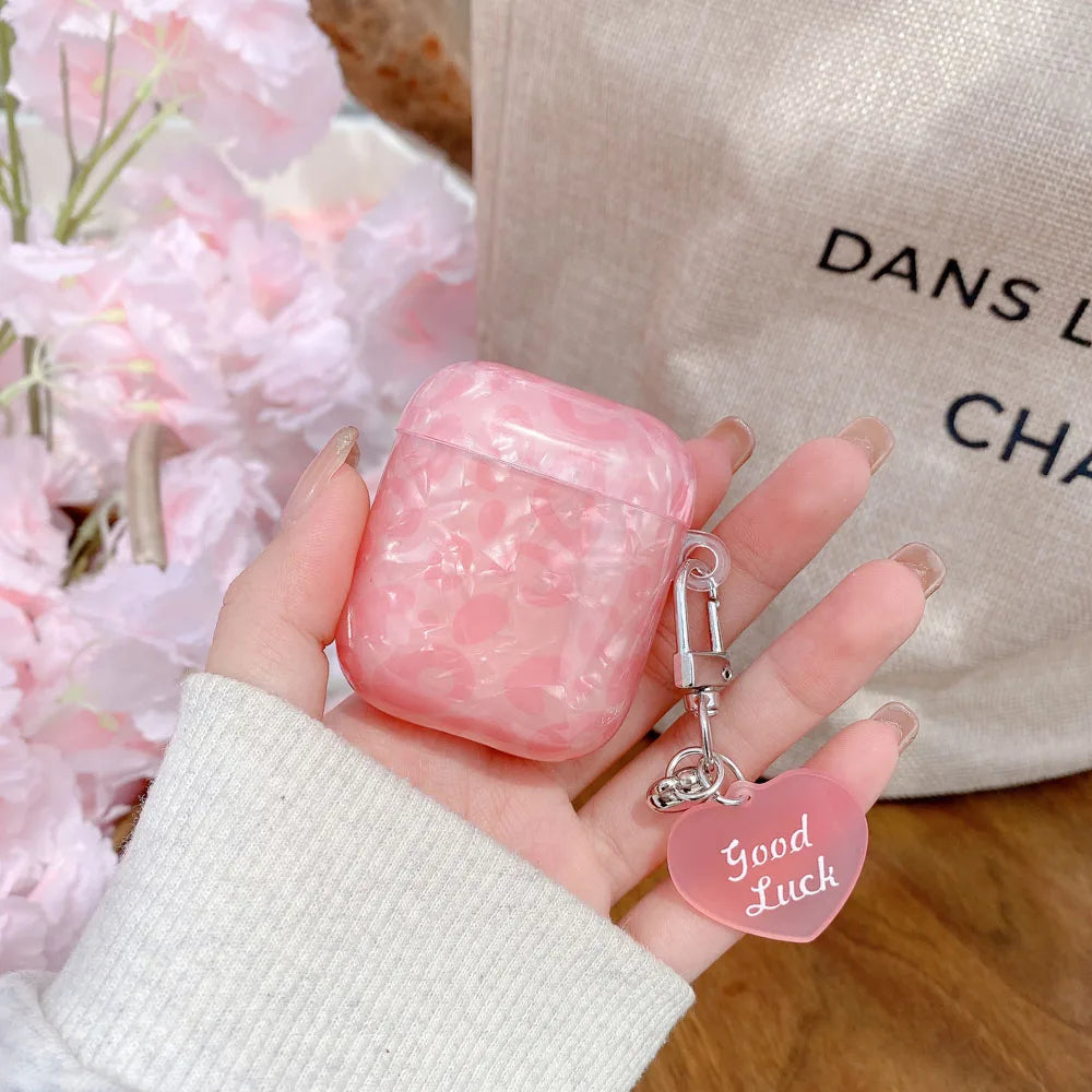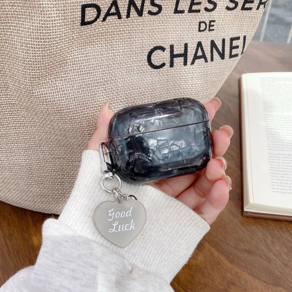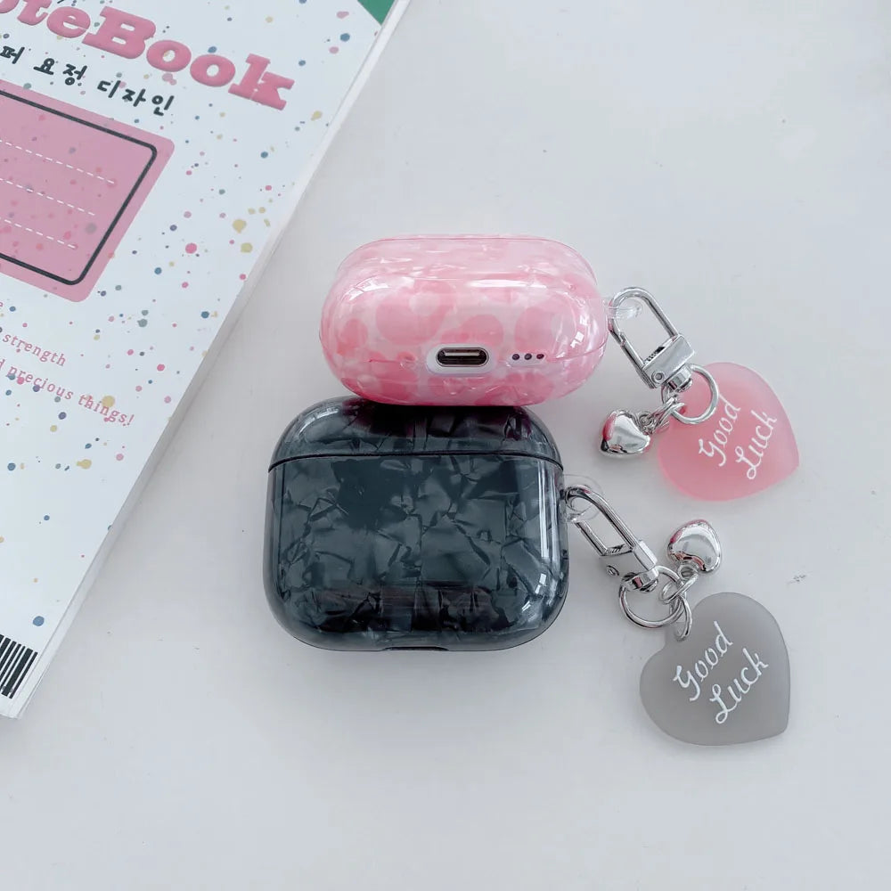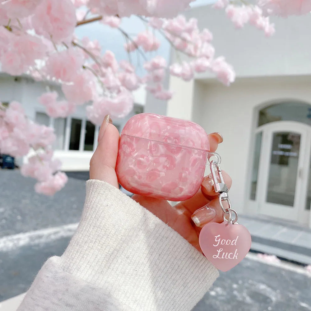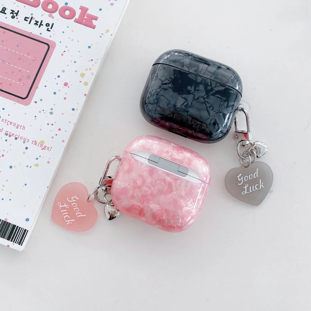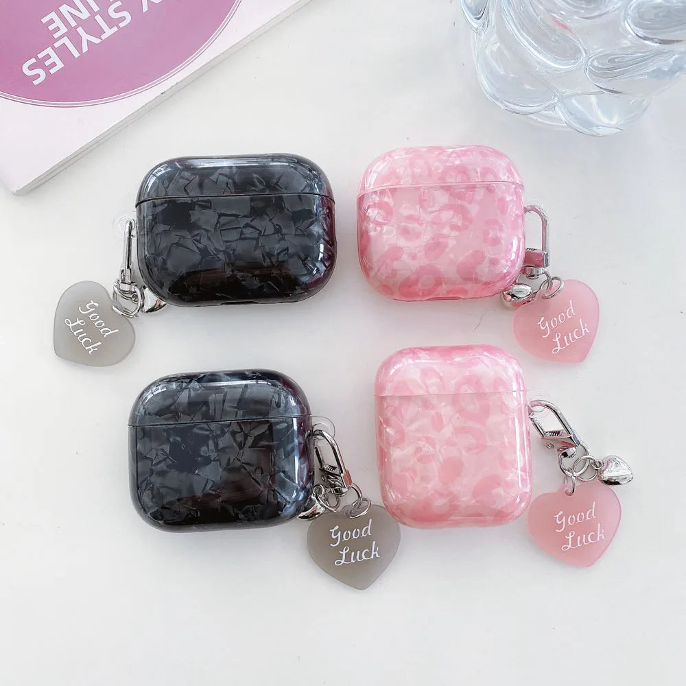 Black Pearl Shell Pink Leopard Print TPU Case Love Heart Pendant Protection Cover for Apple AirPods Pro 2 3 4 Silicone Cases