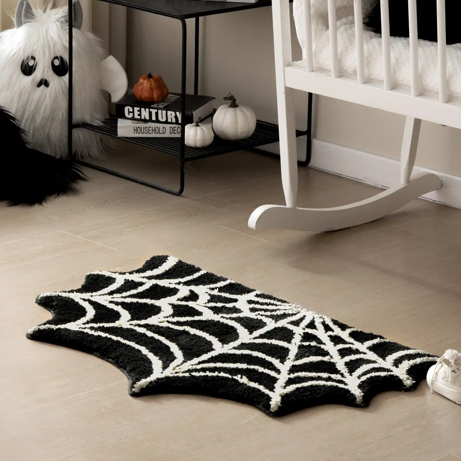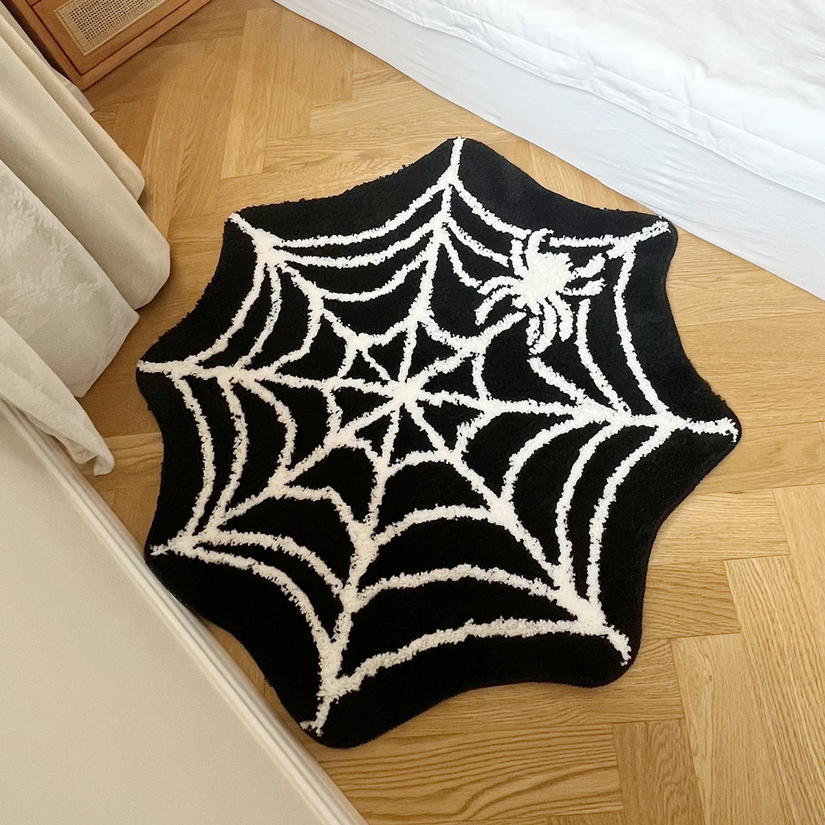 Black Spider Web Halloween Tufting Rug Funny Bathroom Decor Spooky Gothic Bath Mat Non-Slip Tufted Mat for Front Door Living