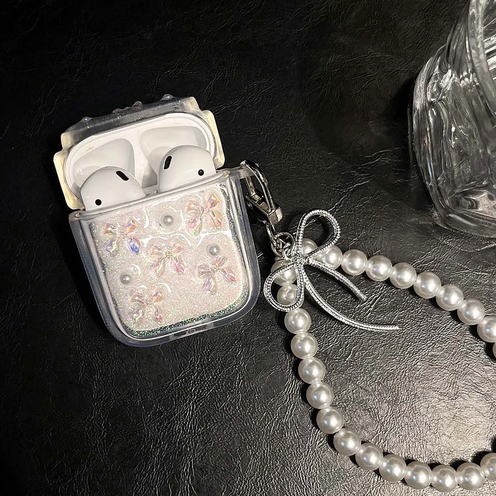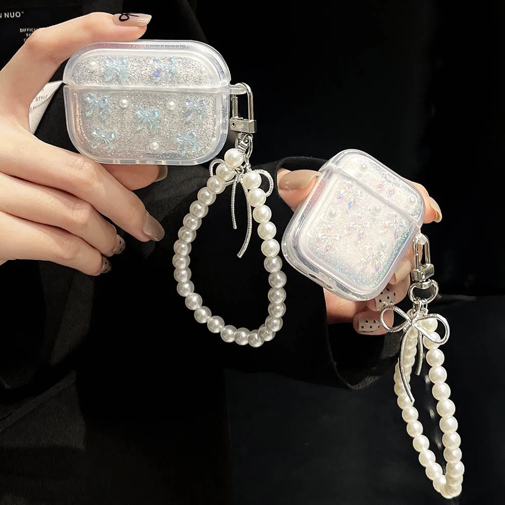 Bling Glitter Bow Pearl Sparkling Decorate Earphone Case For Airpods Pro 2 Earphone Cover For Air Pods 3 2 1 Headset Soft Box