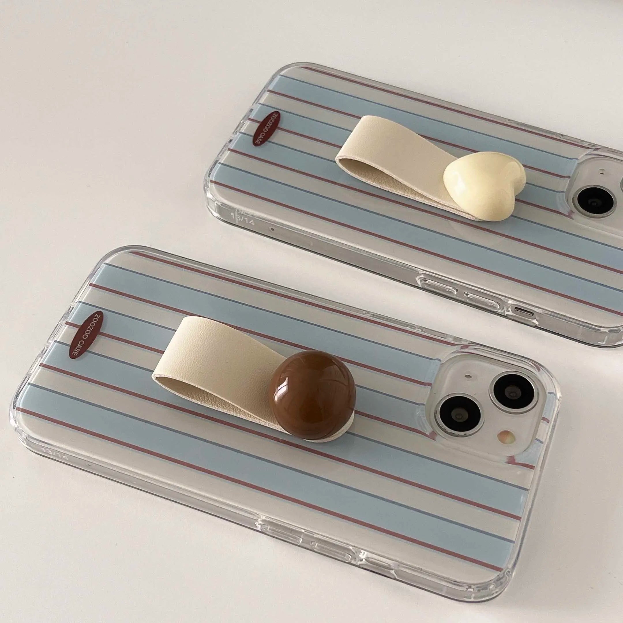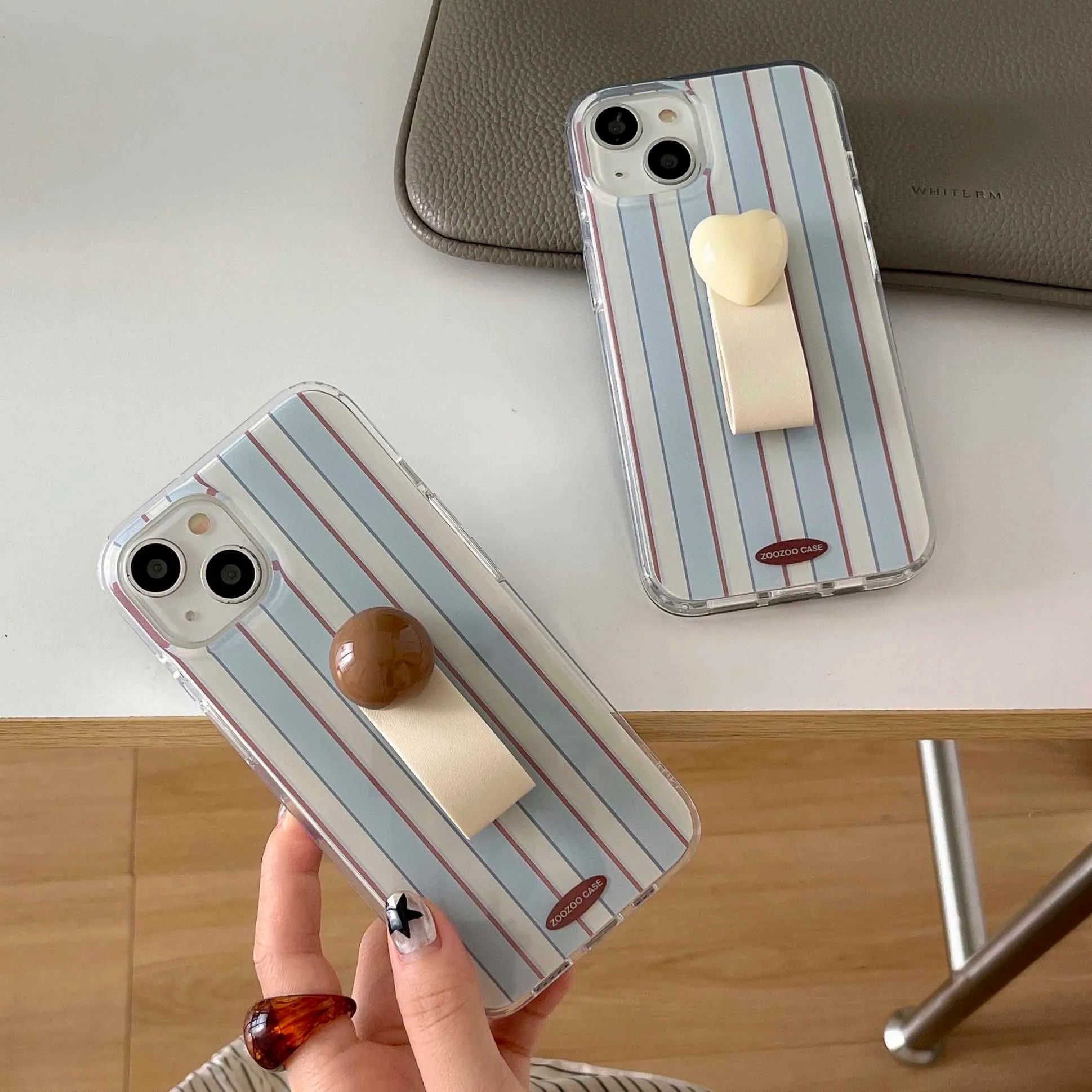 Blue stripes summer ins phone case for iphone 15 12promax 14pro 15pro 13pro 12 pro max 13 3d love heart ball ring cover fundas