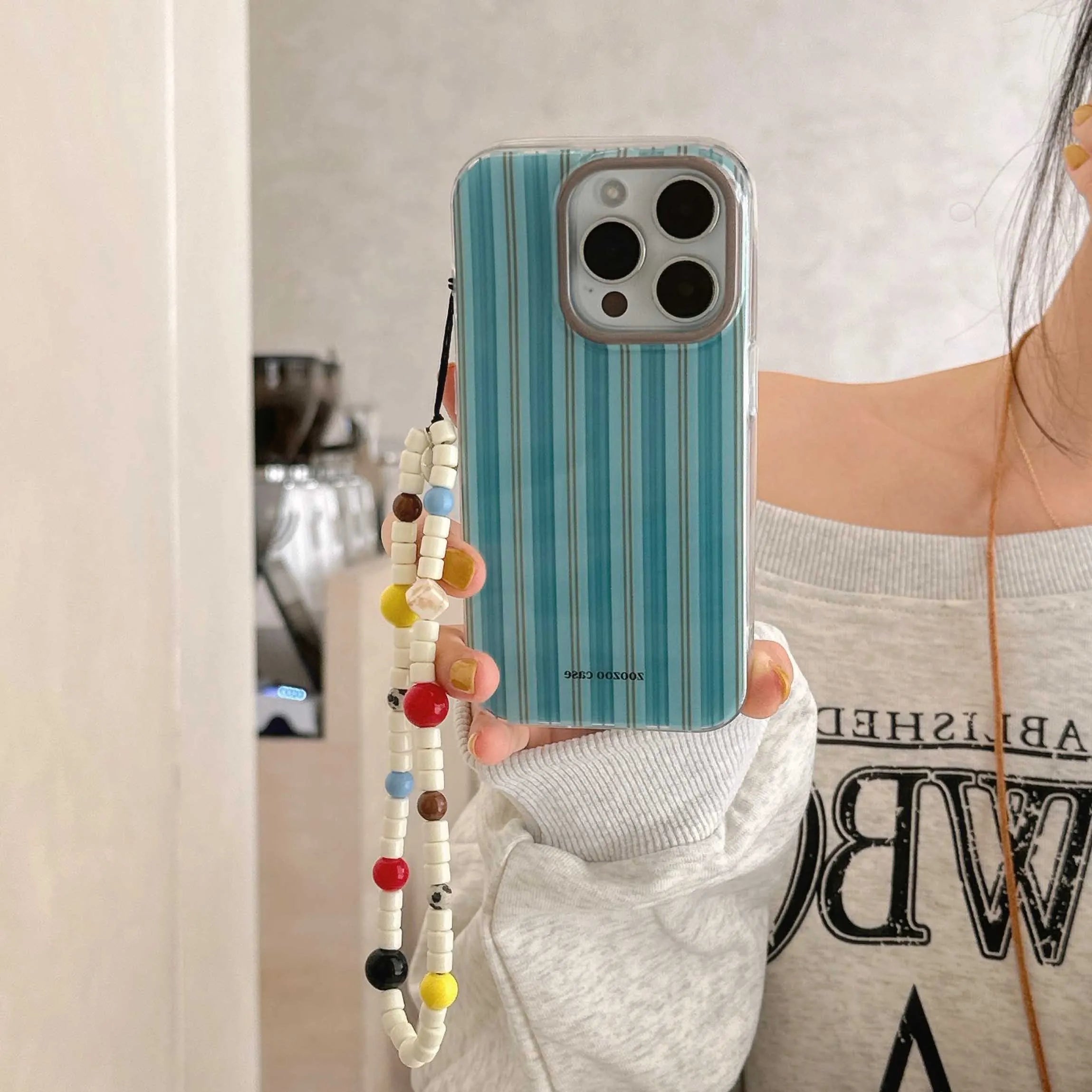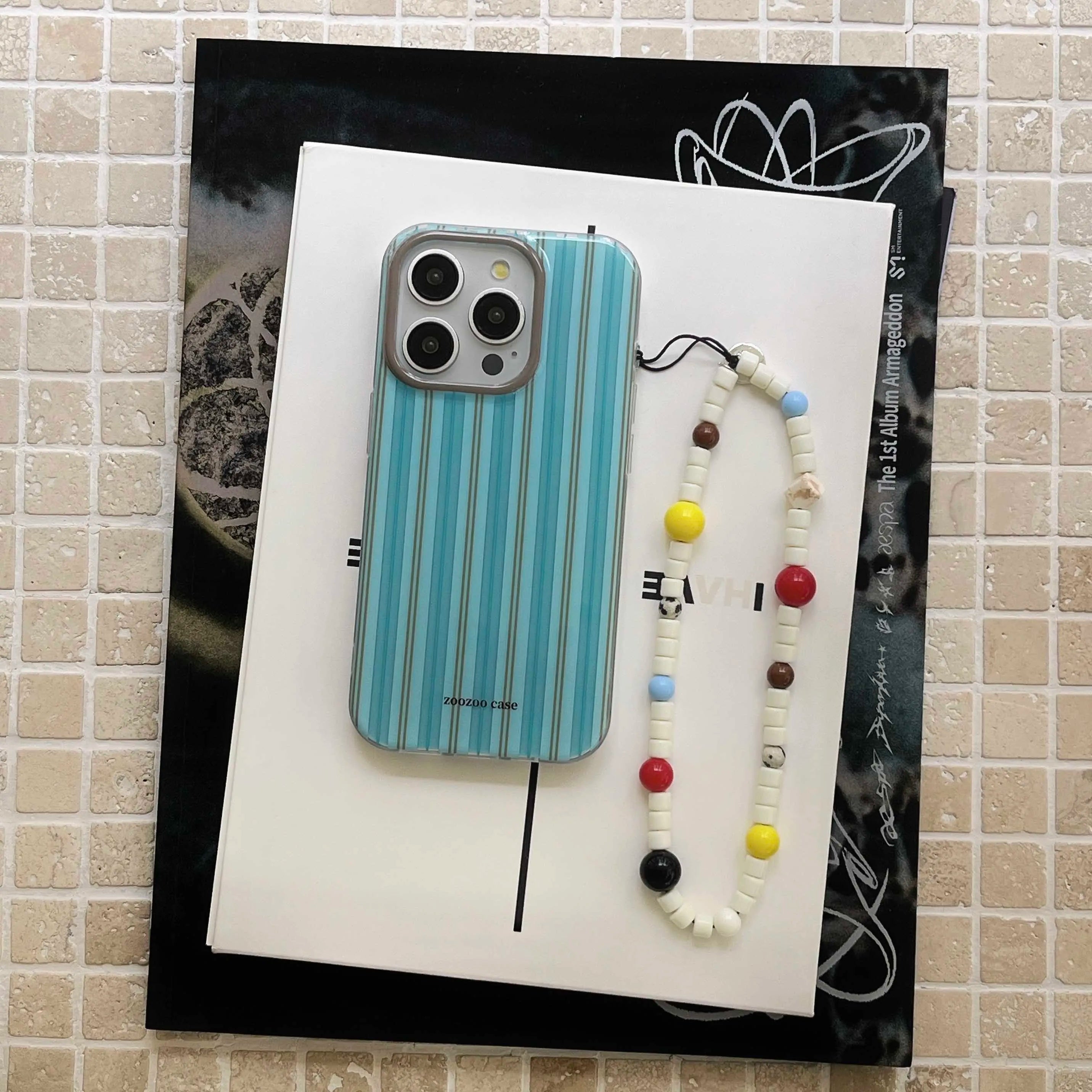 Blue stripes summer phone case for iphone 14pro 15pro 12 14 13 15 pro max 15promax 13pro shell colorful chain ins funda cover