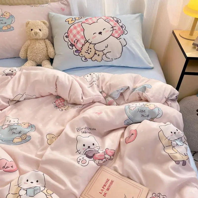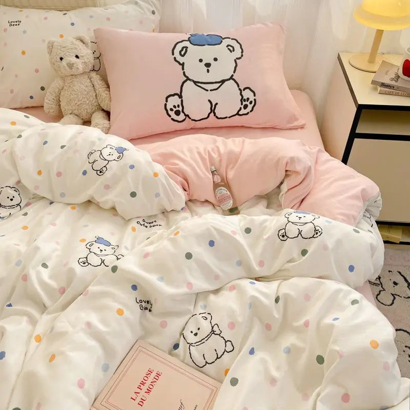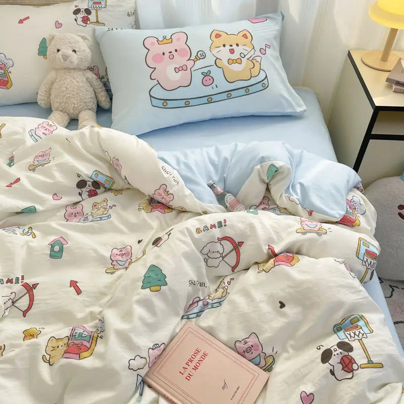 Bowknot Bedding Set Ins Girl Plaid Washed Dormitory Bed Sheet Quilt Cover Student Dormitory Three-piece Set