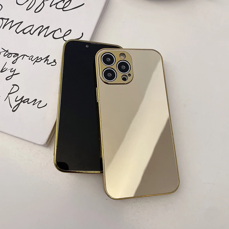 Brief Silver Golden Mirror Shockproof Case for iPhone 16 15 14 13 12 11 Pro Max X XR XS Electroplated Hard Back Cover