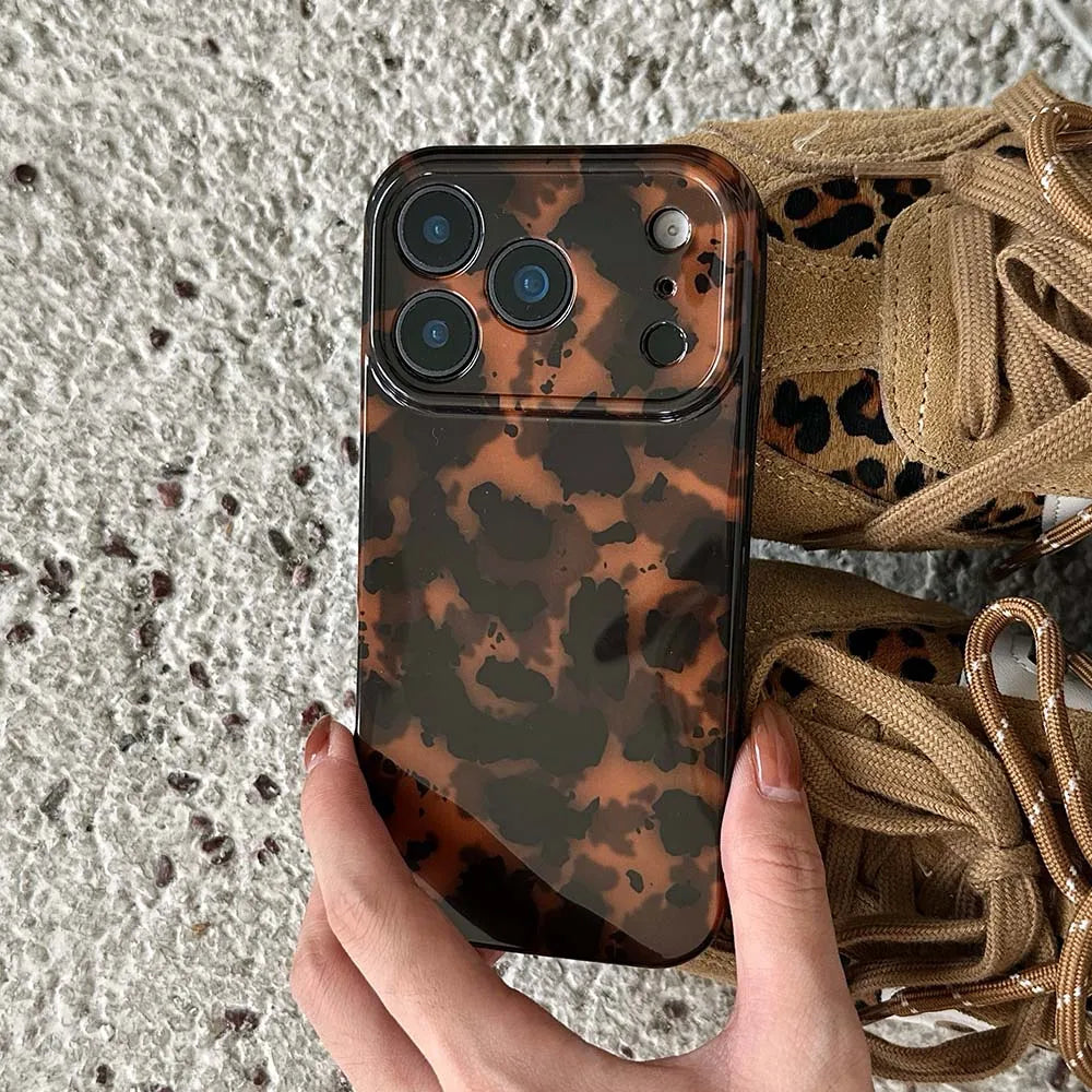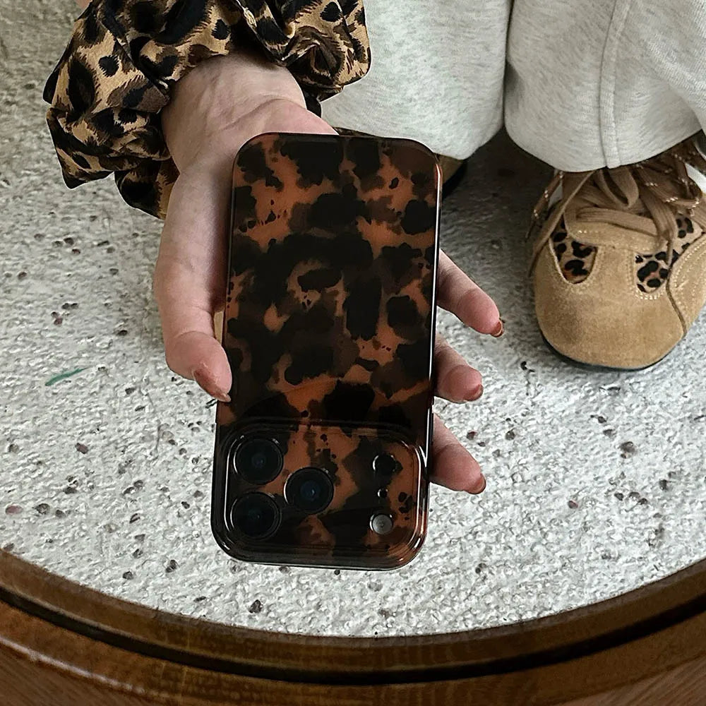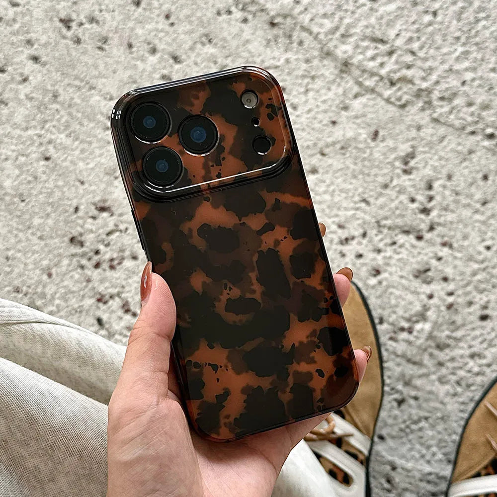 Brown Amber Retro Leopard Print Tpu Gloss Phone Case For iPhone 17 16 15 14 13 12 11 Pro Max 14/15 Plus 17 Air Soft Back Cover